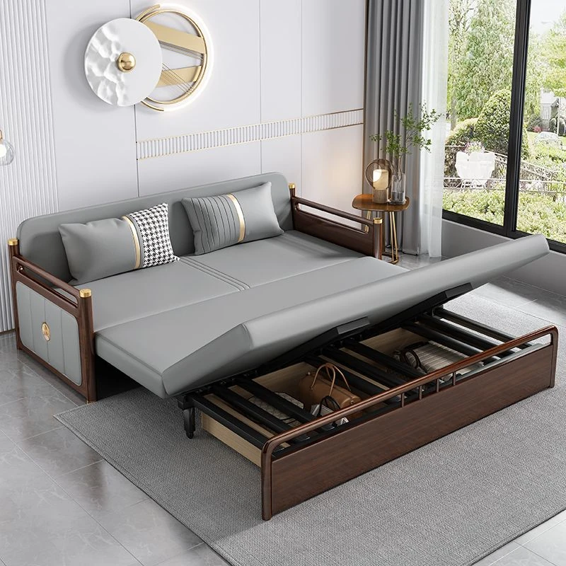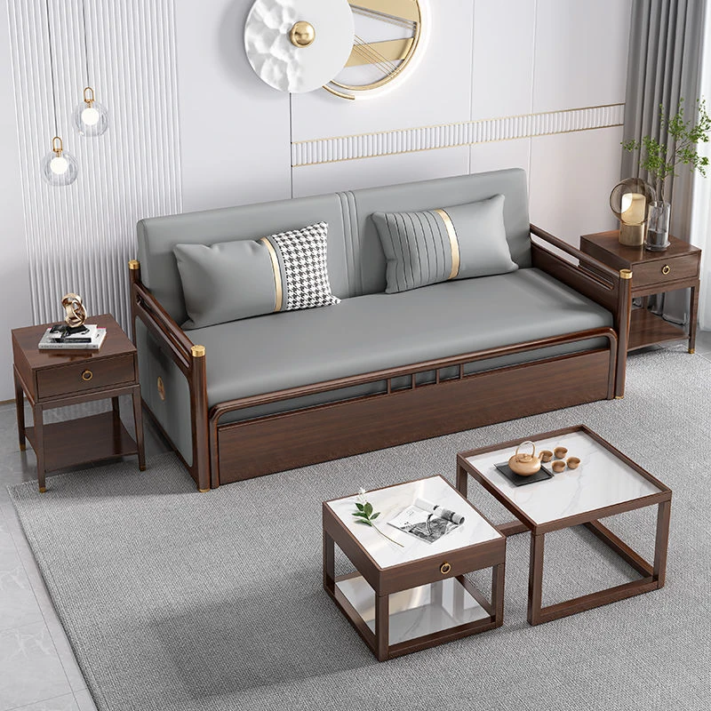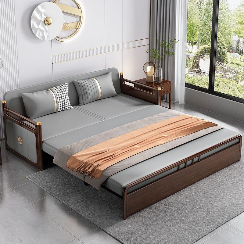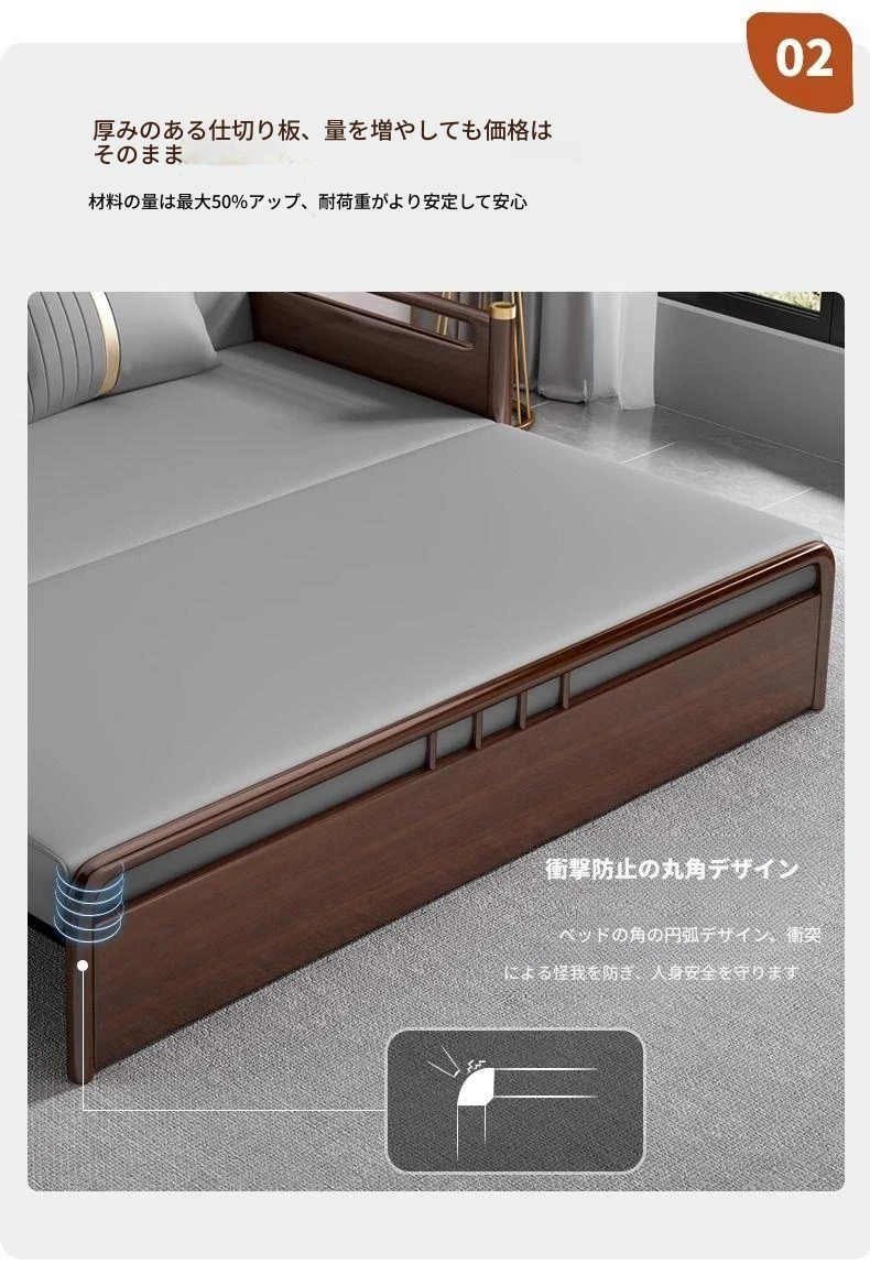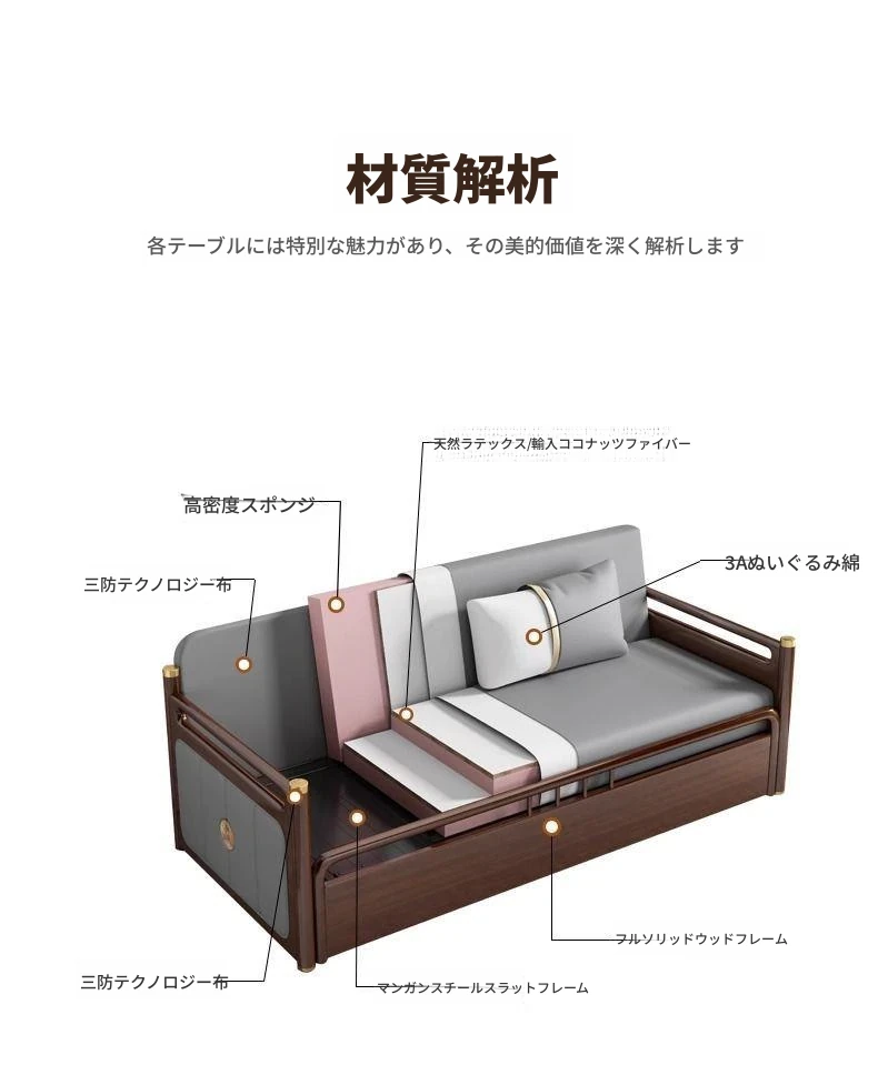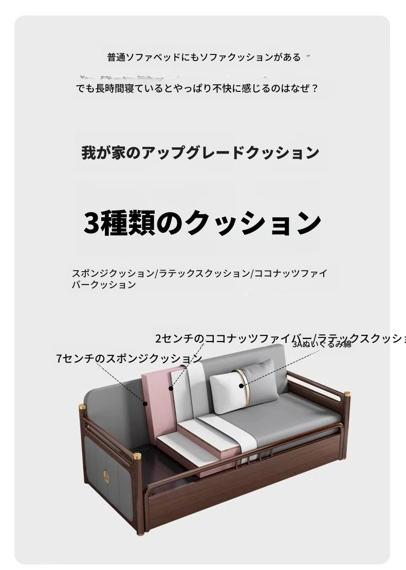 大人気!折りたたみ式実木ソファベッド 二人用 多機能新中式ロハンベッド 小型リビングに最適 2025年モデル