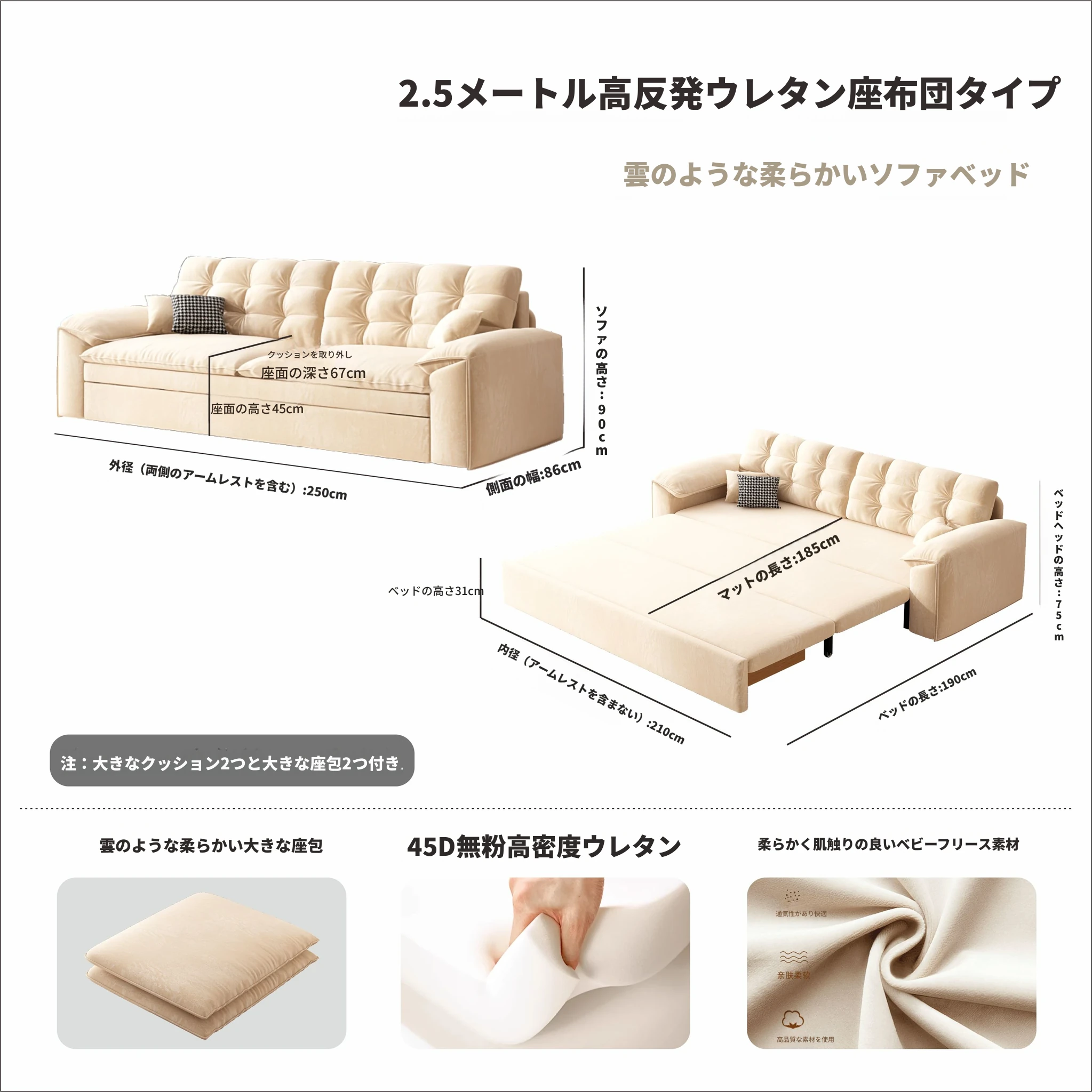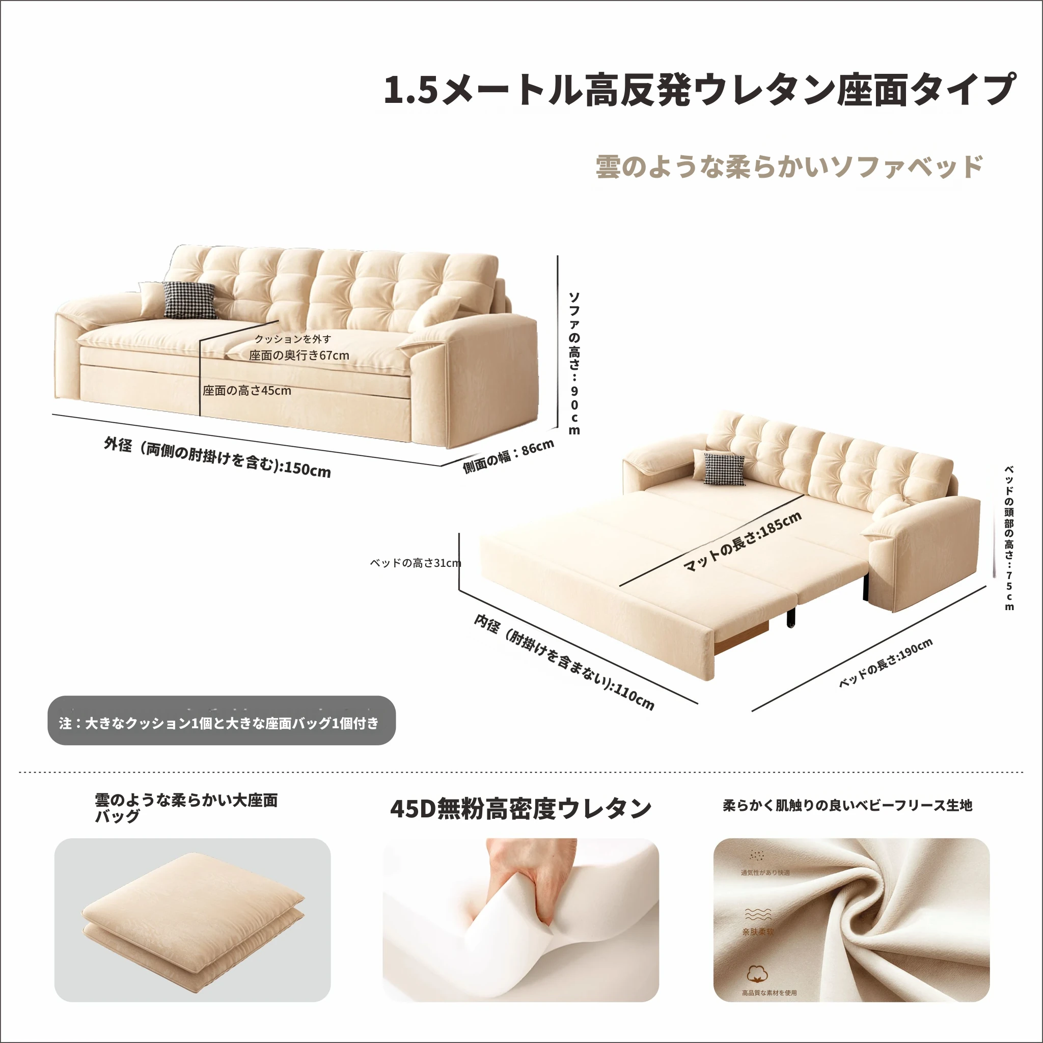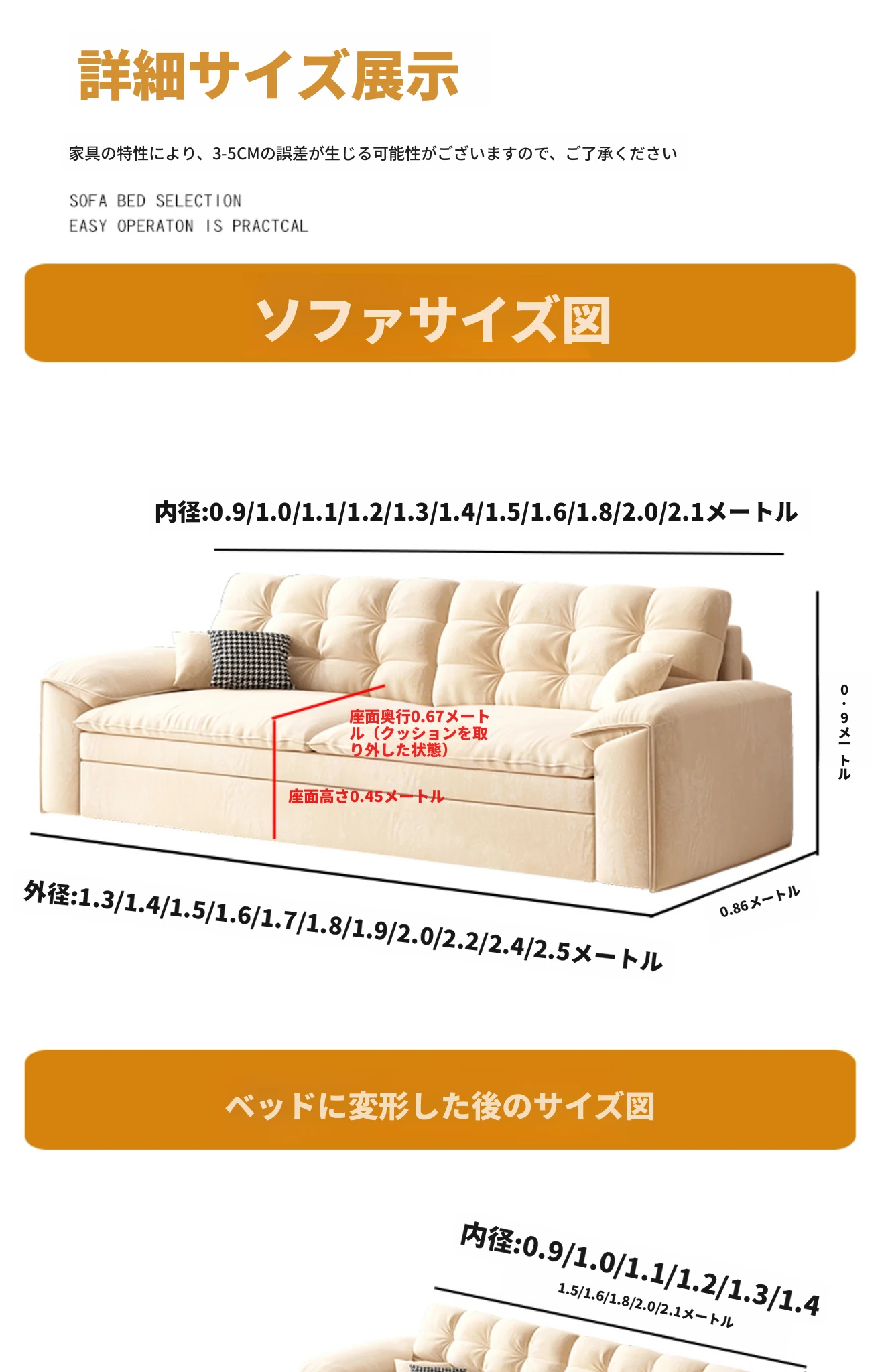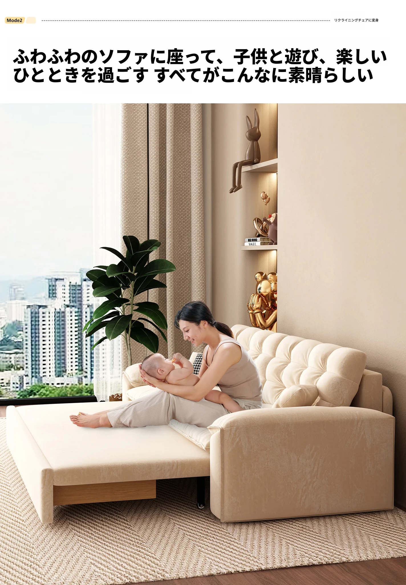 2025年新款!多機能ソファベッド、折りたたみ式でスペースを有効活用!小型リビングに最適なシングル&ダブル兼用、快適なくつろぎ空間を実現。