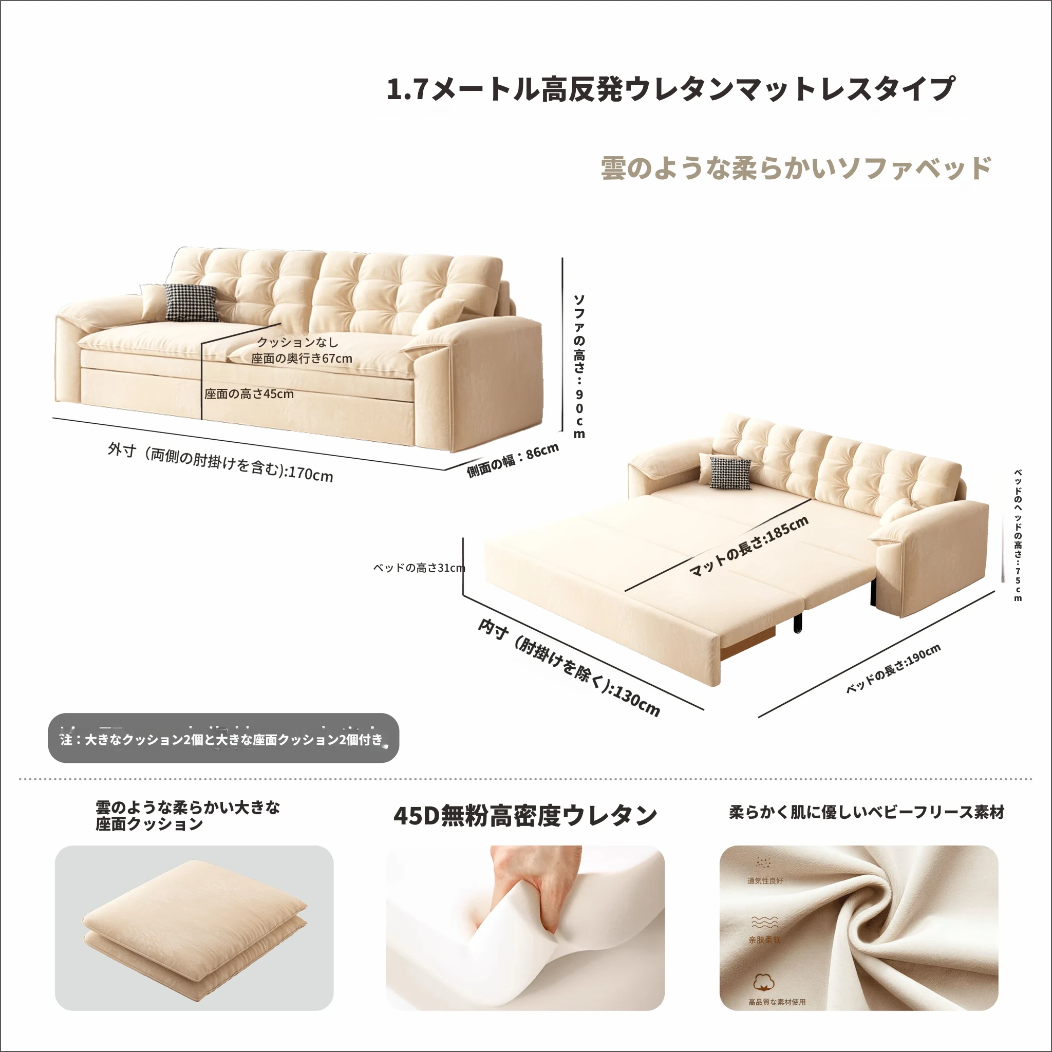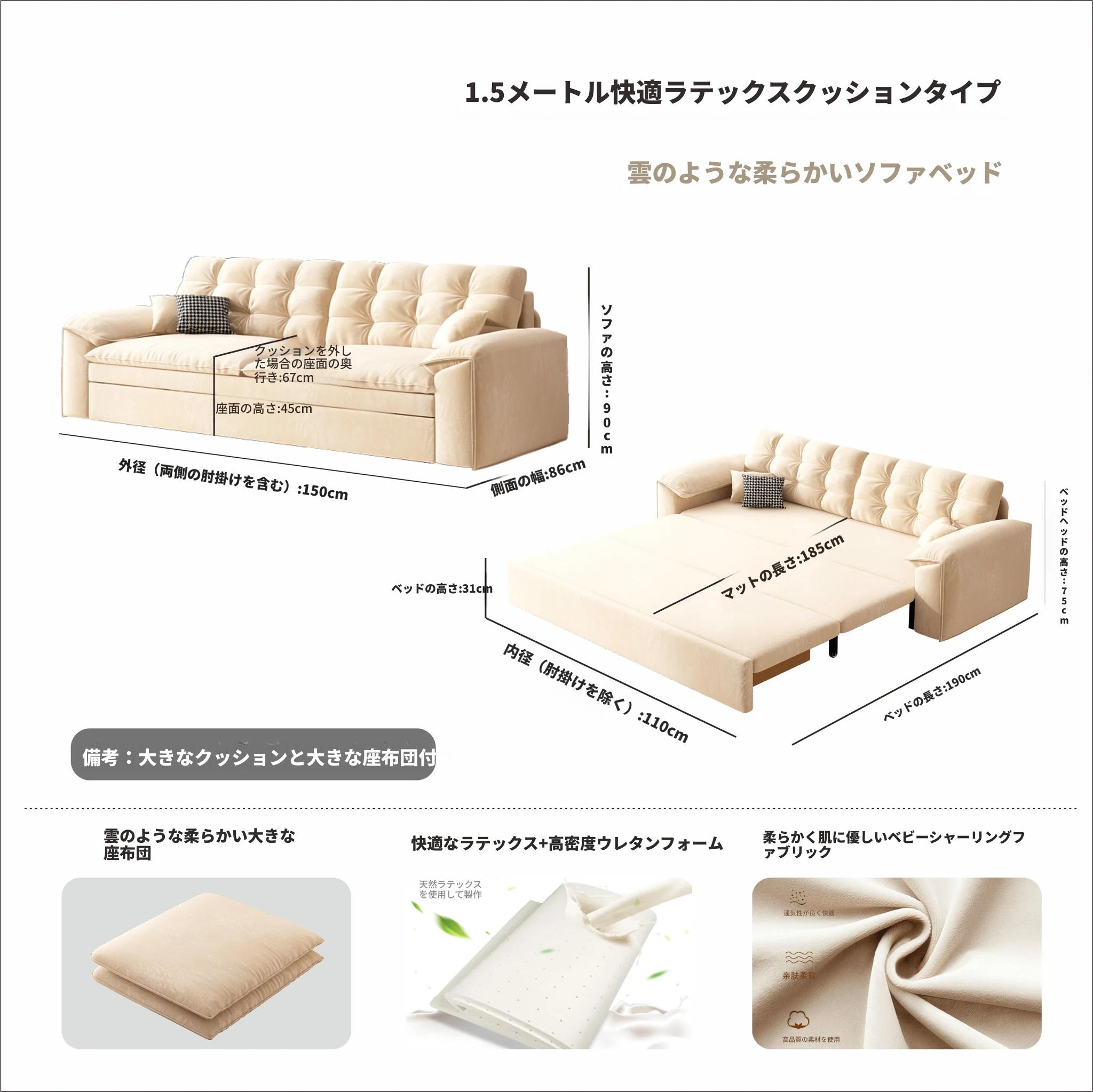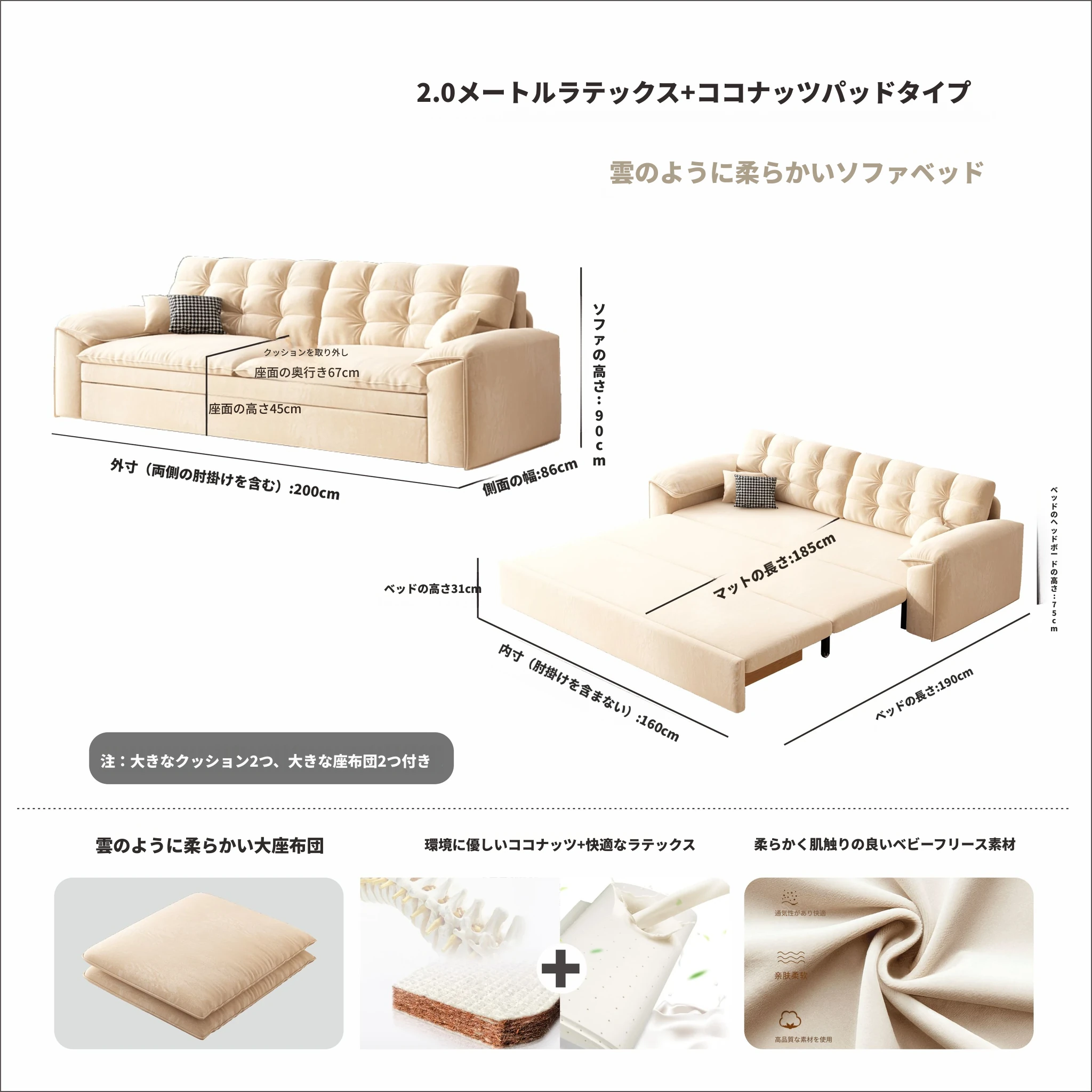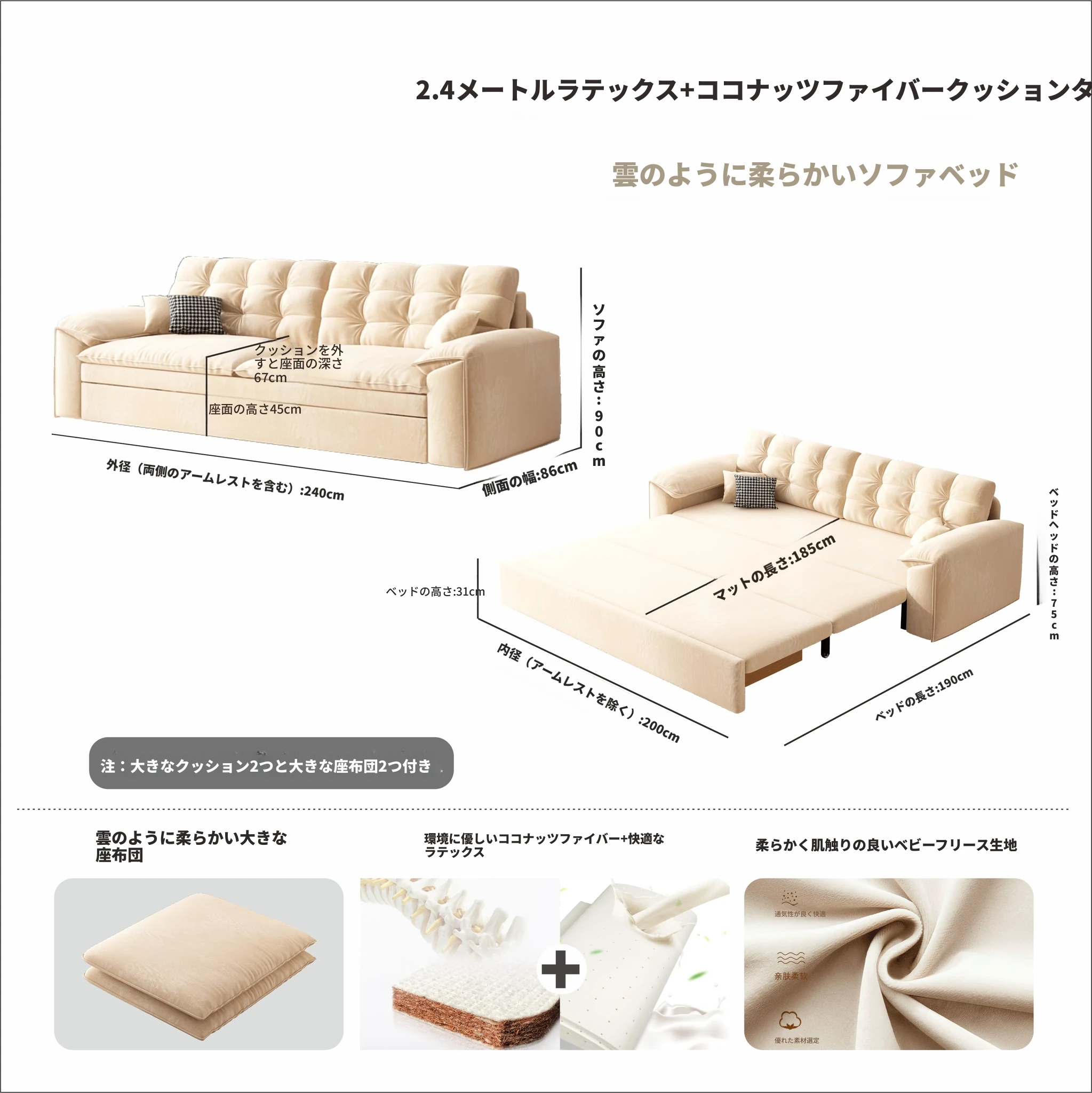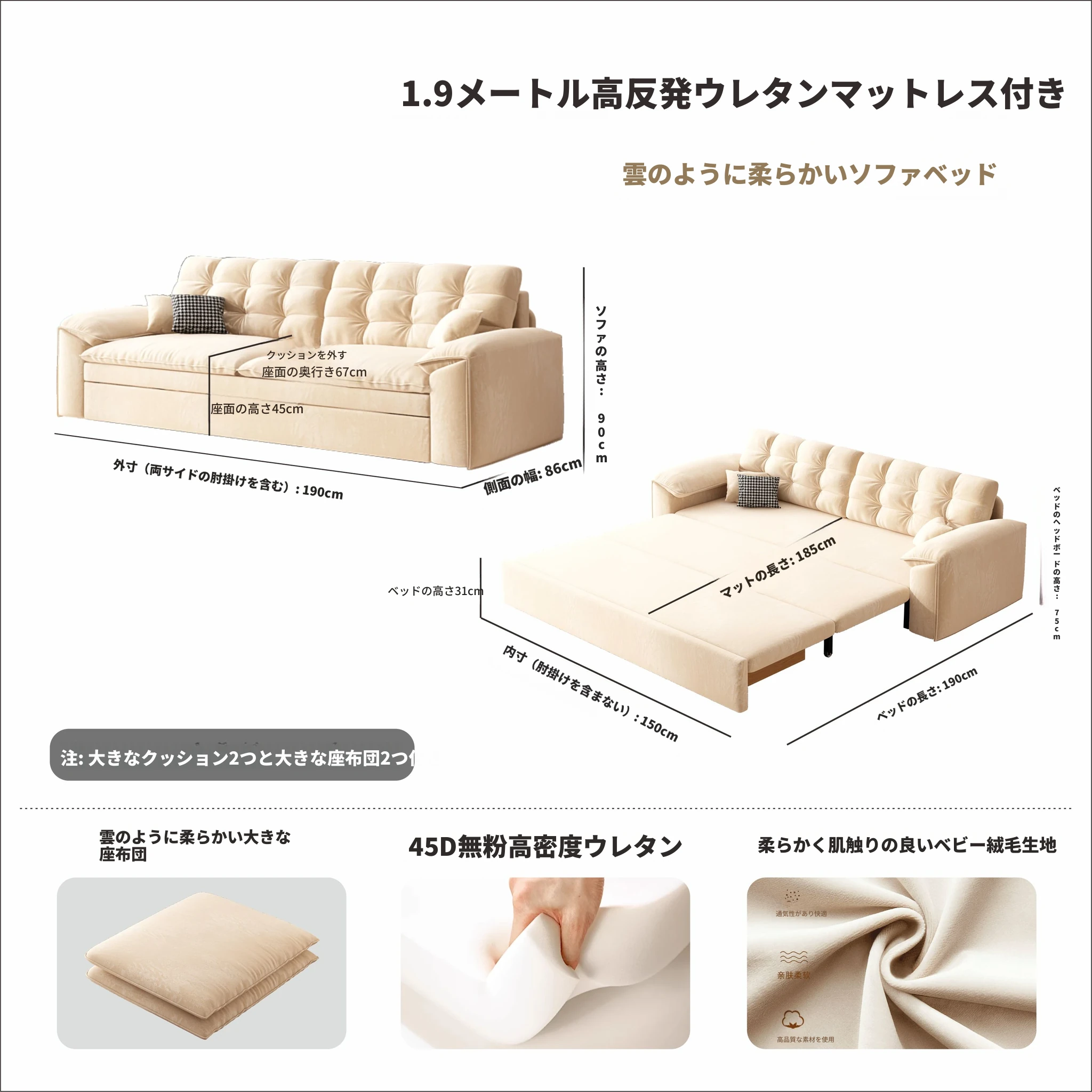 2025年新款!多機能ソファベッド、折りたたみ式でスペースを有効活用!小型リビングに最適なシングル&ダブル兼用、快適なくつろぎ空間を実現。