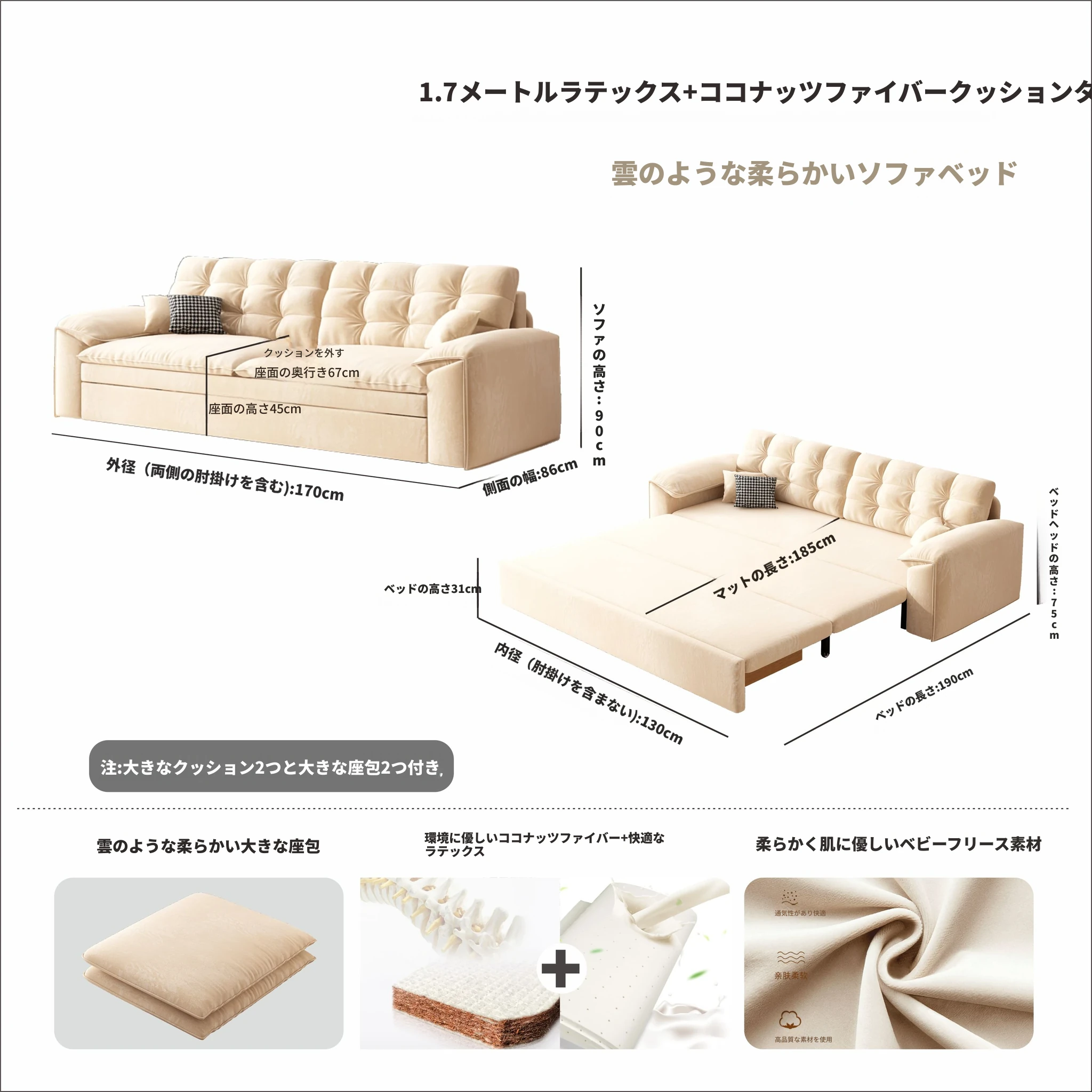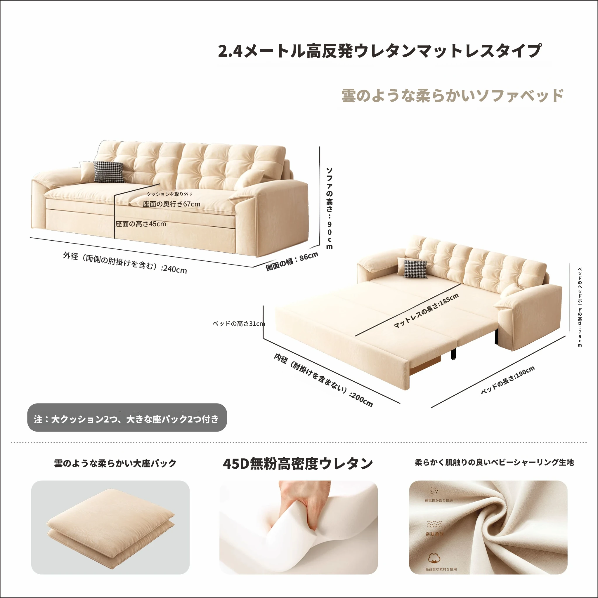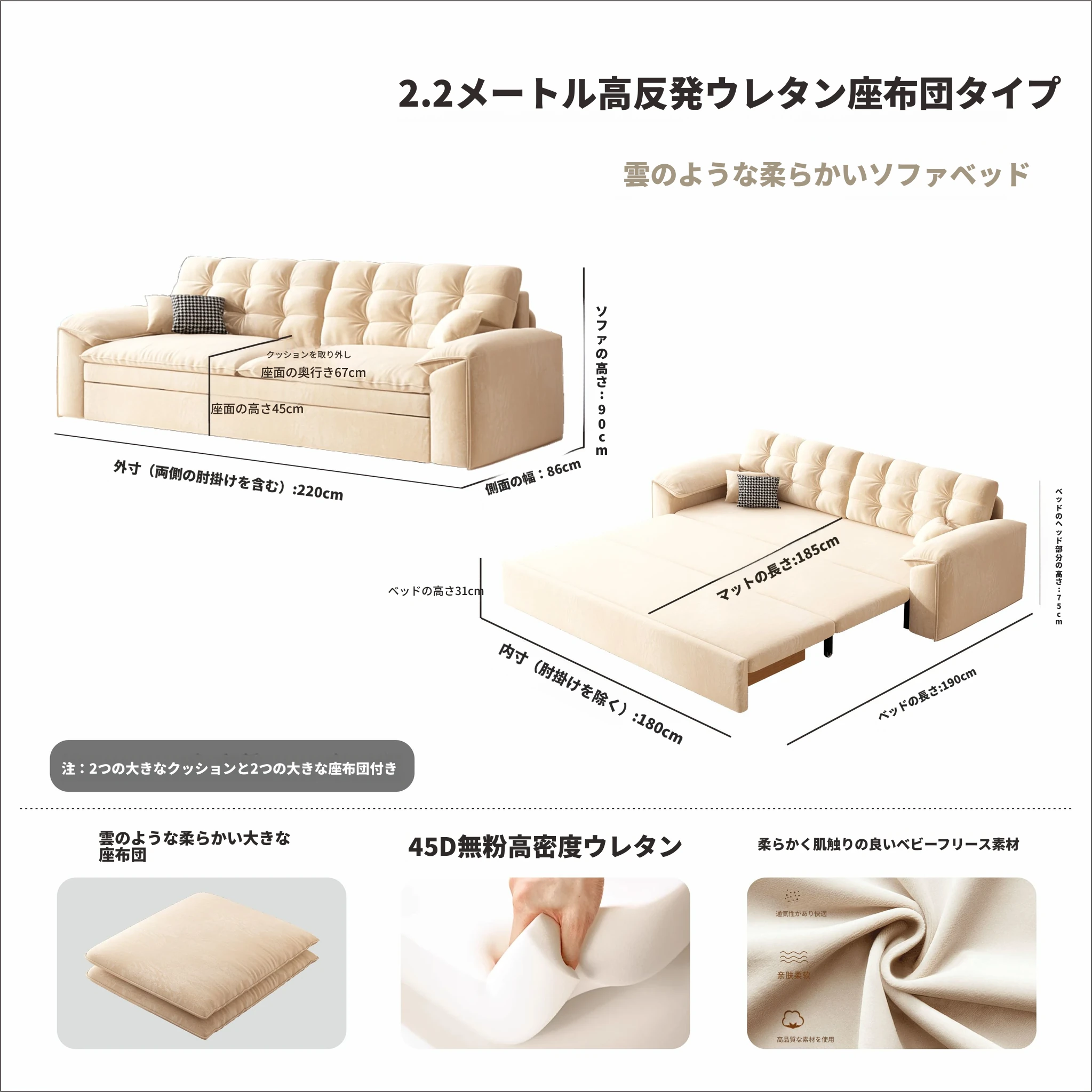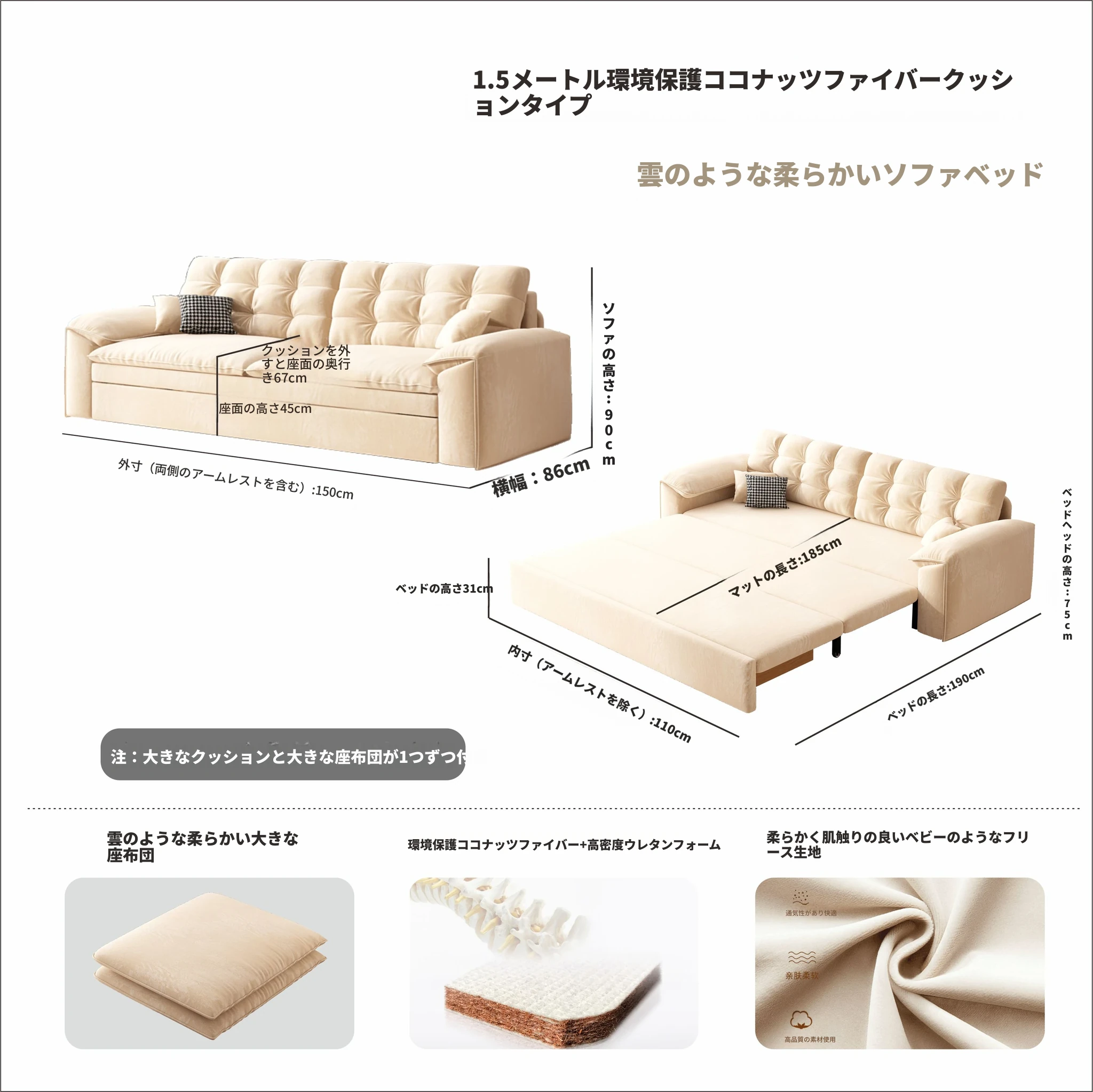 2025年新款!多機能ソファベッド、折りたたみ式でスペースを有効活用!小型リビングに最適なシングル&ダブル兼用、快適なくつろぎ空間を実現。