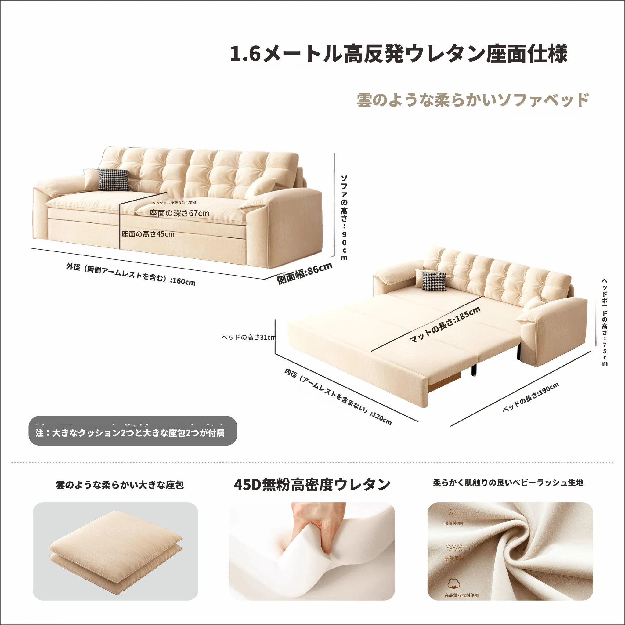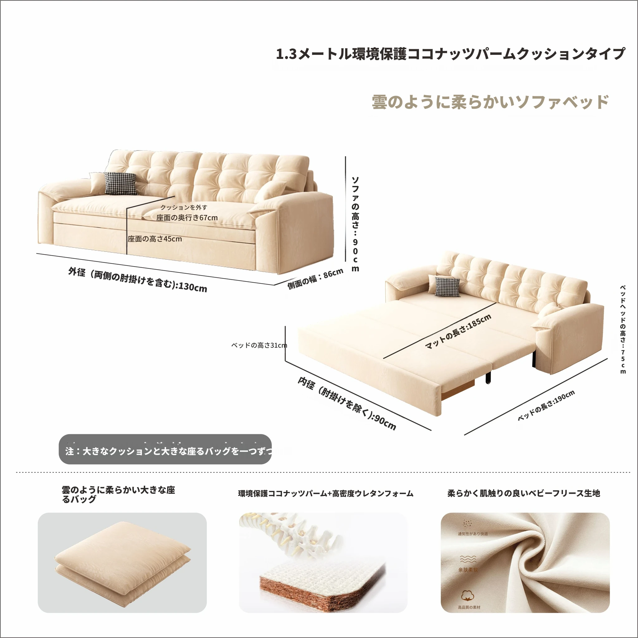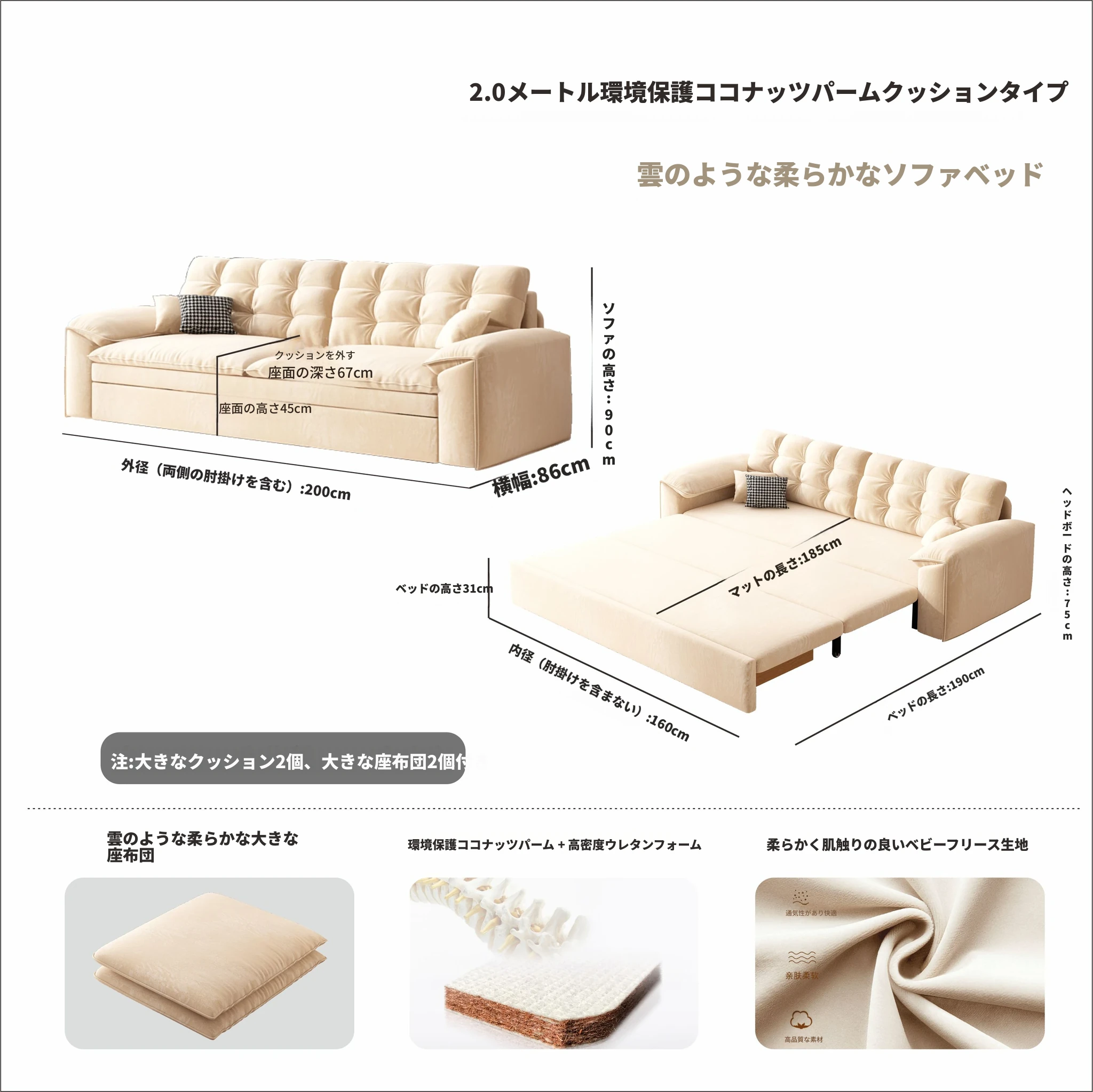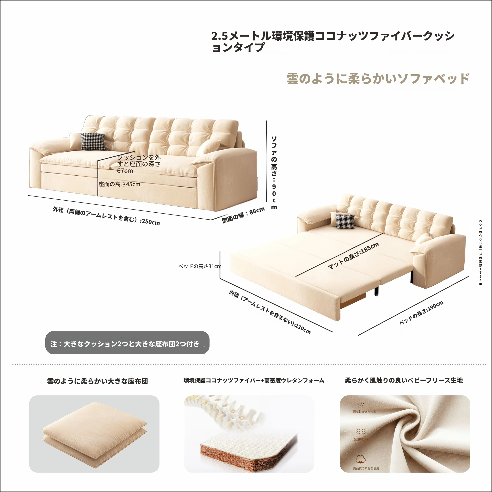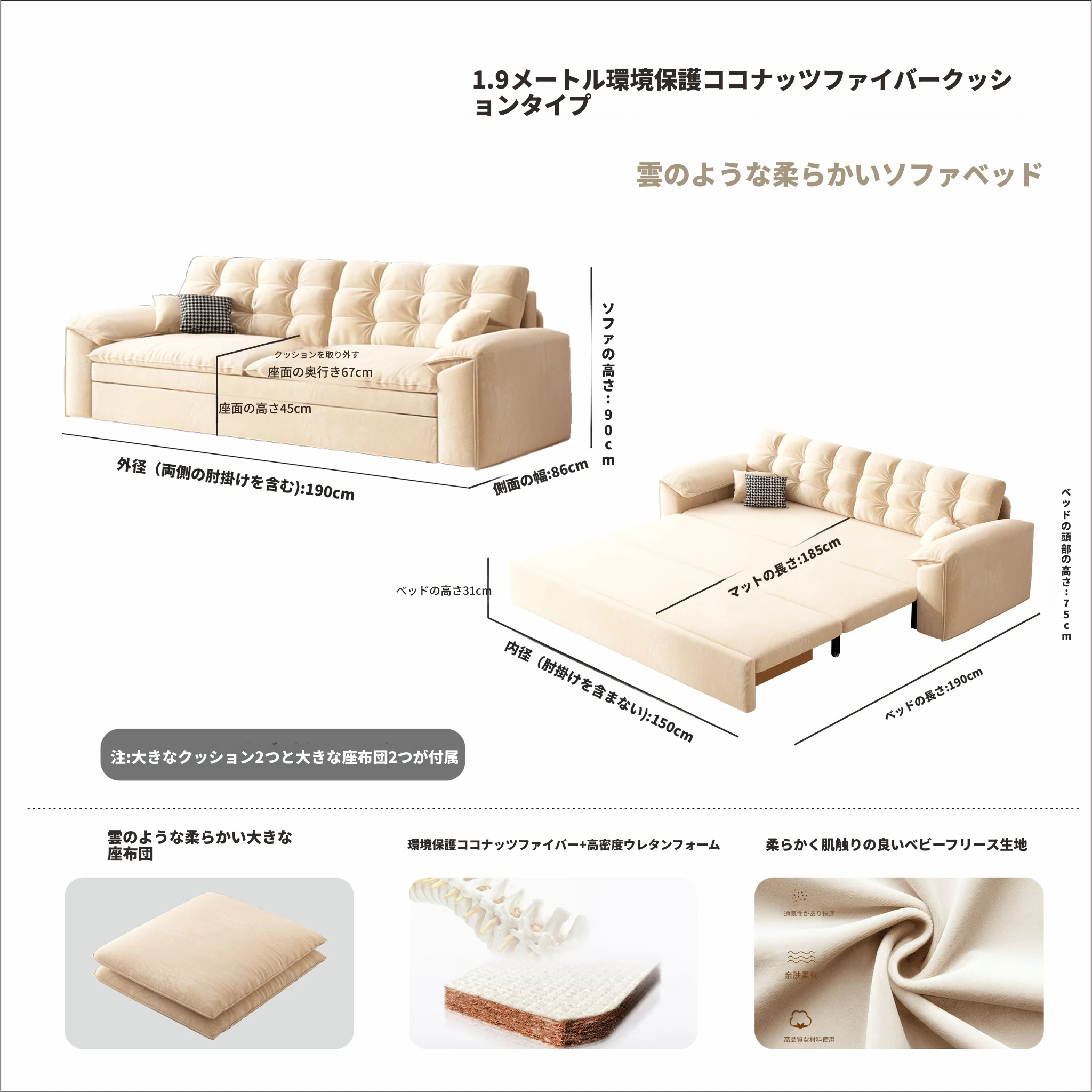 2025年新款!多機能ソファベッド、折りたたみ式でスペースを有効活用!小型リビングに最適なシングル&ダブル兼用、快適なくつろぎ空間を実現。