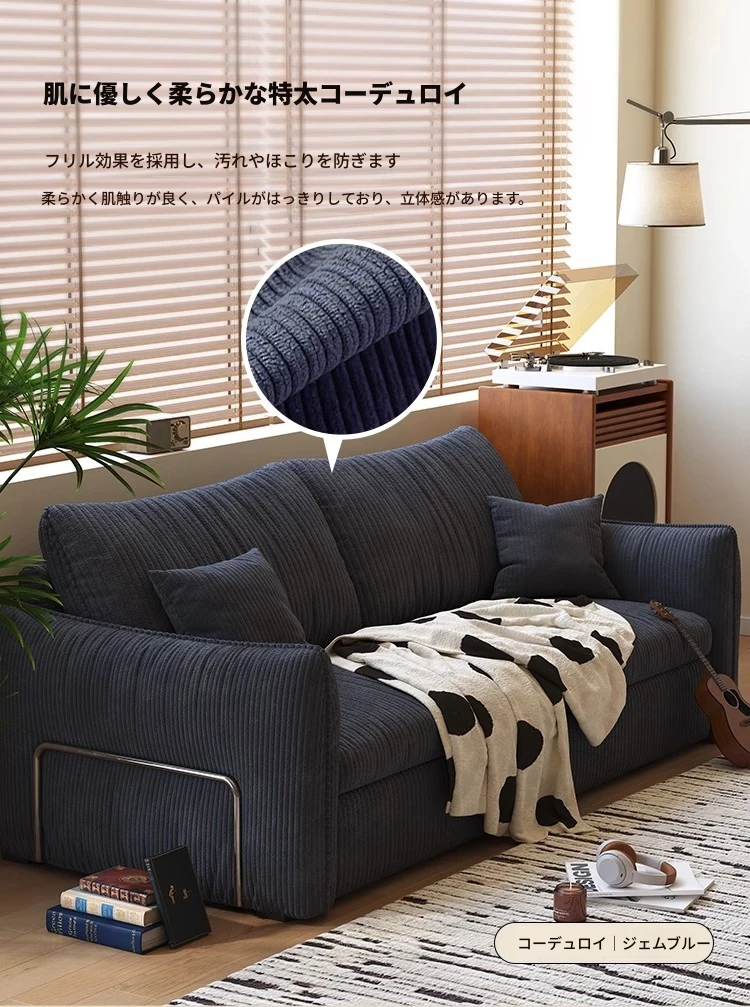 2025年新作!おしゃれなコーデュロイソファベッド - 小型住宅に最適なモダンデザイン!多機能で伸縮自在、折りたたみ式の一体型ソファで、リビングをスタイリッシュに演出します。快適な睡眠空間を手に入れましょう!