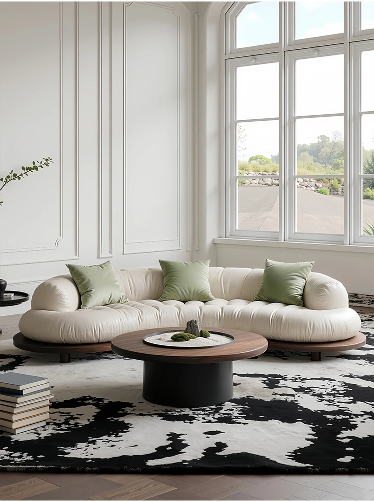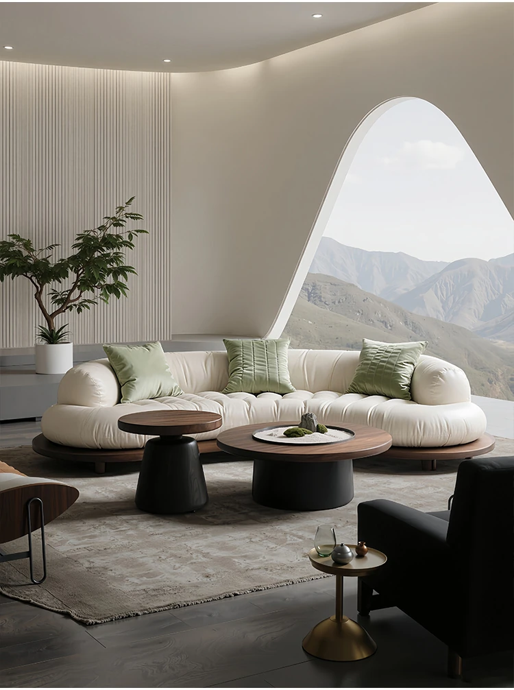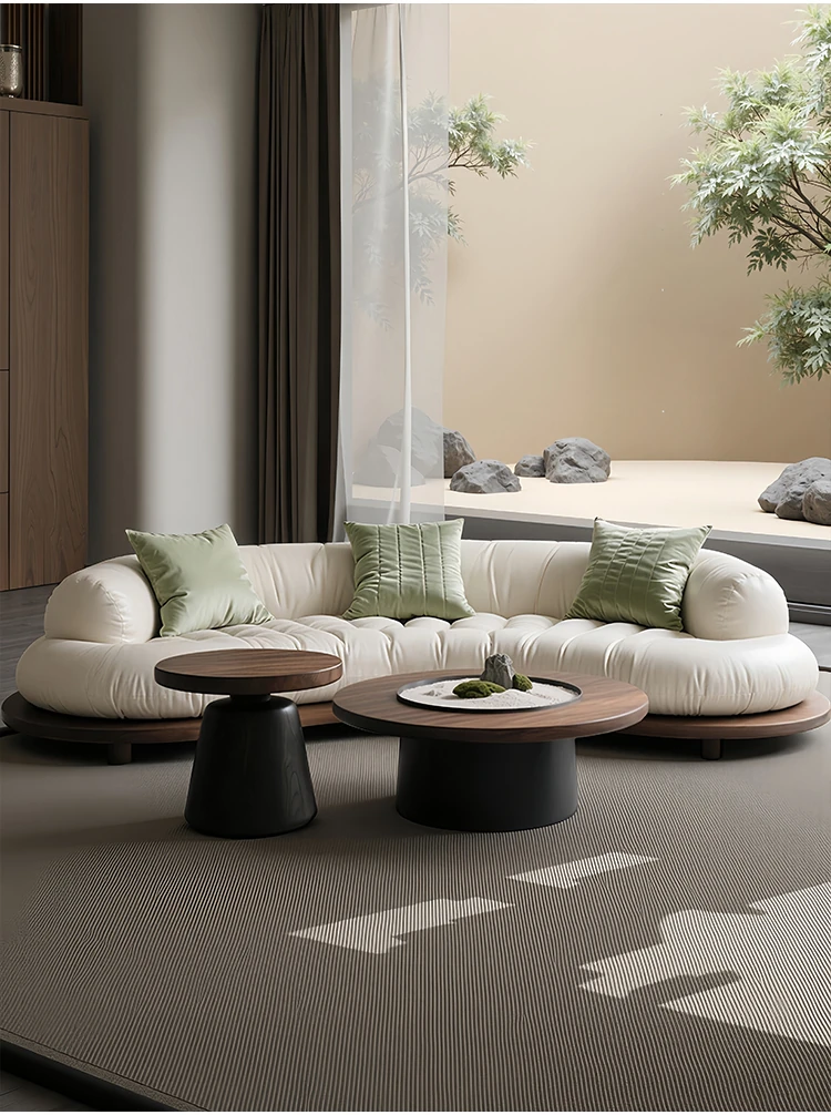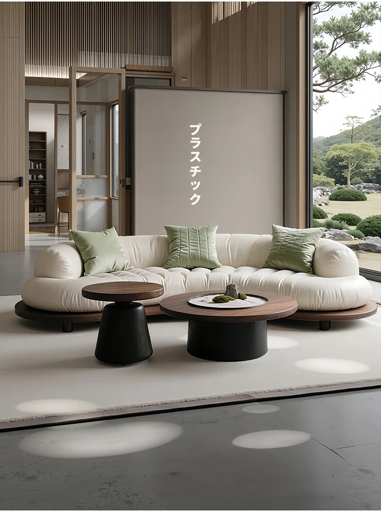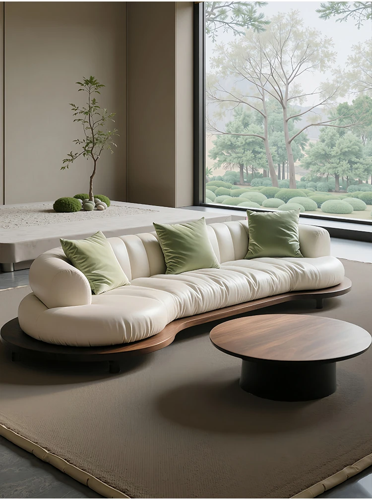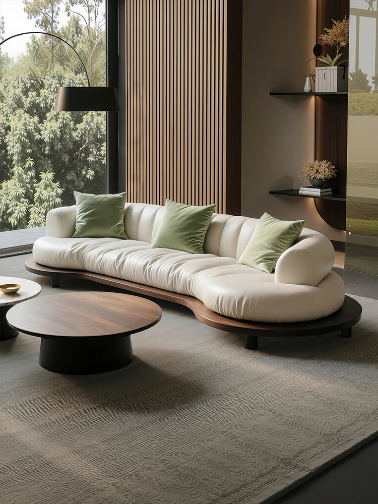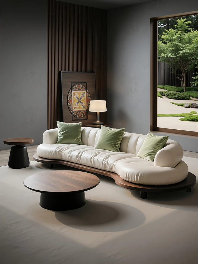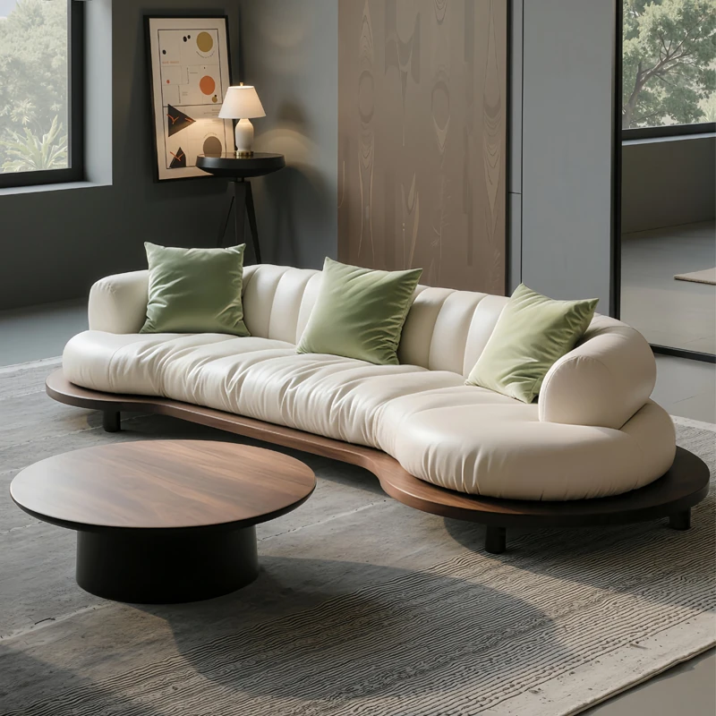 2025年新作!曲線デザインの天然木ソファ - 高級感あふれるウォールナット材使用、創造的なリビング空間を演出する宋氏美学の逸品。あなたの家に優雅さとスタイルをプラス!