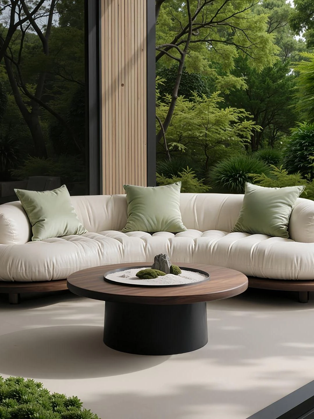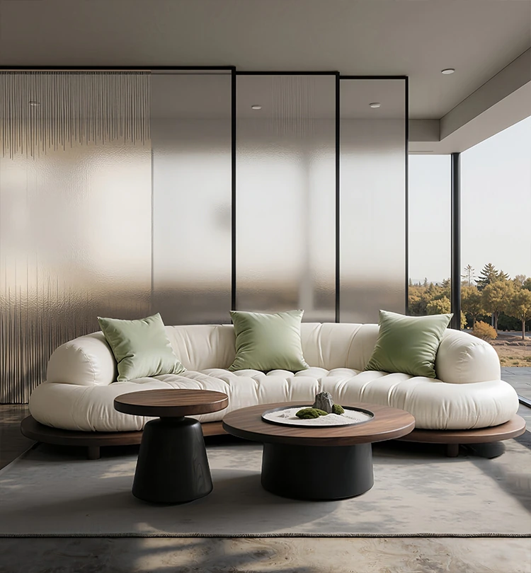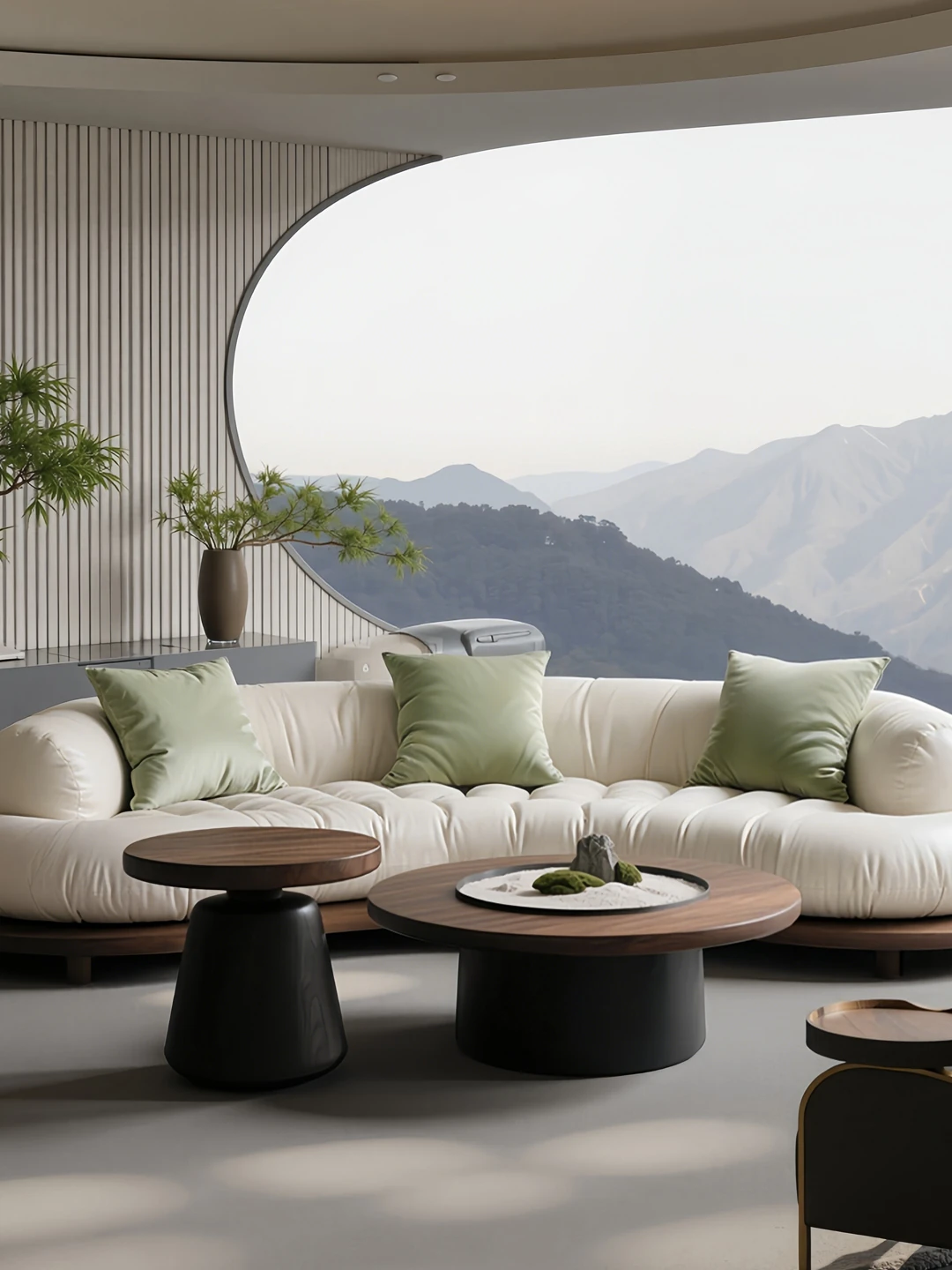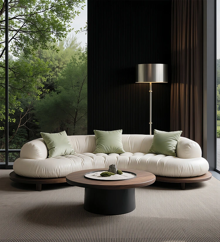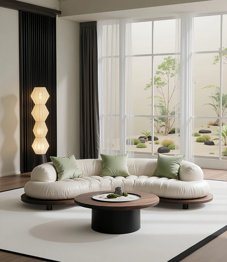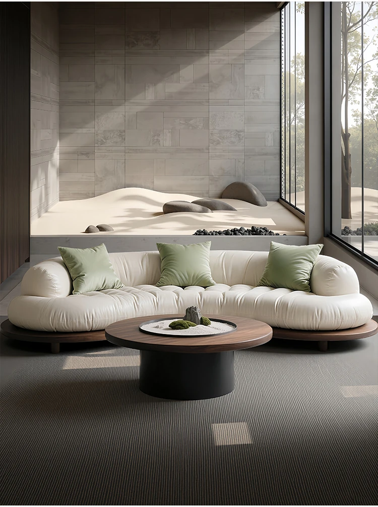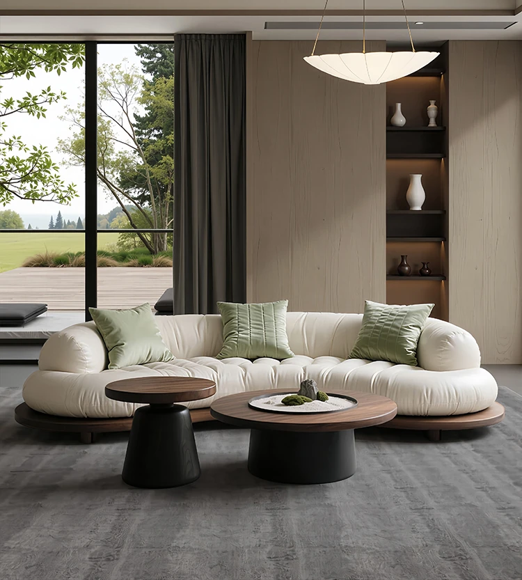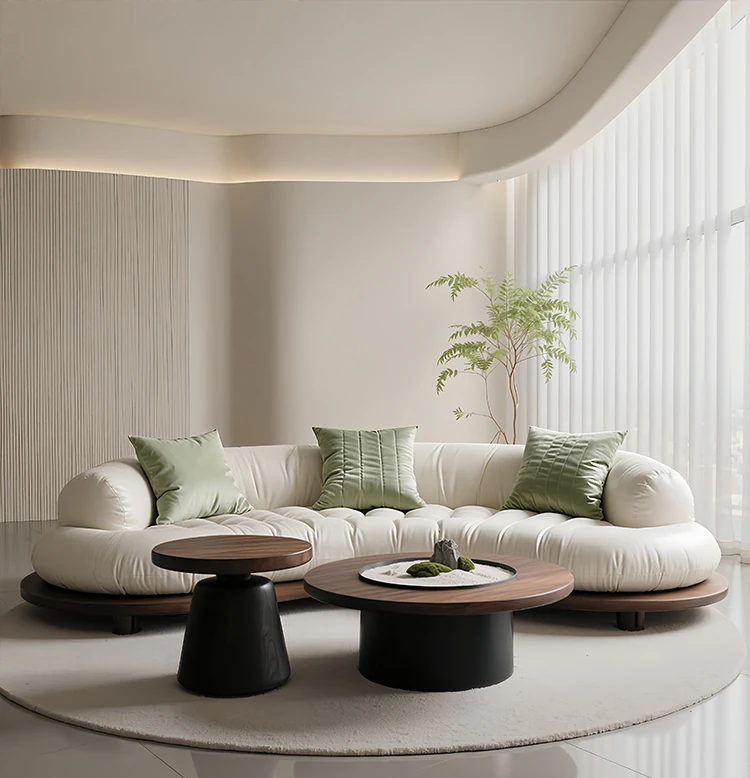 2025年新作!曲線デザインの天然木ソファ - 高級感あふれるウォールナット材使用、創造的なリビング空間を演出する宋氏美学の逸品。あなたの家に優雅さとスタイルをプラス!