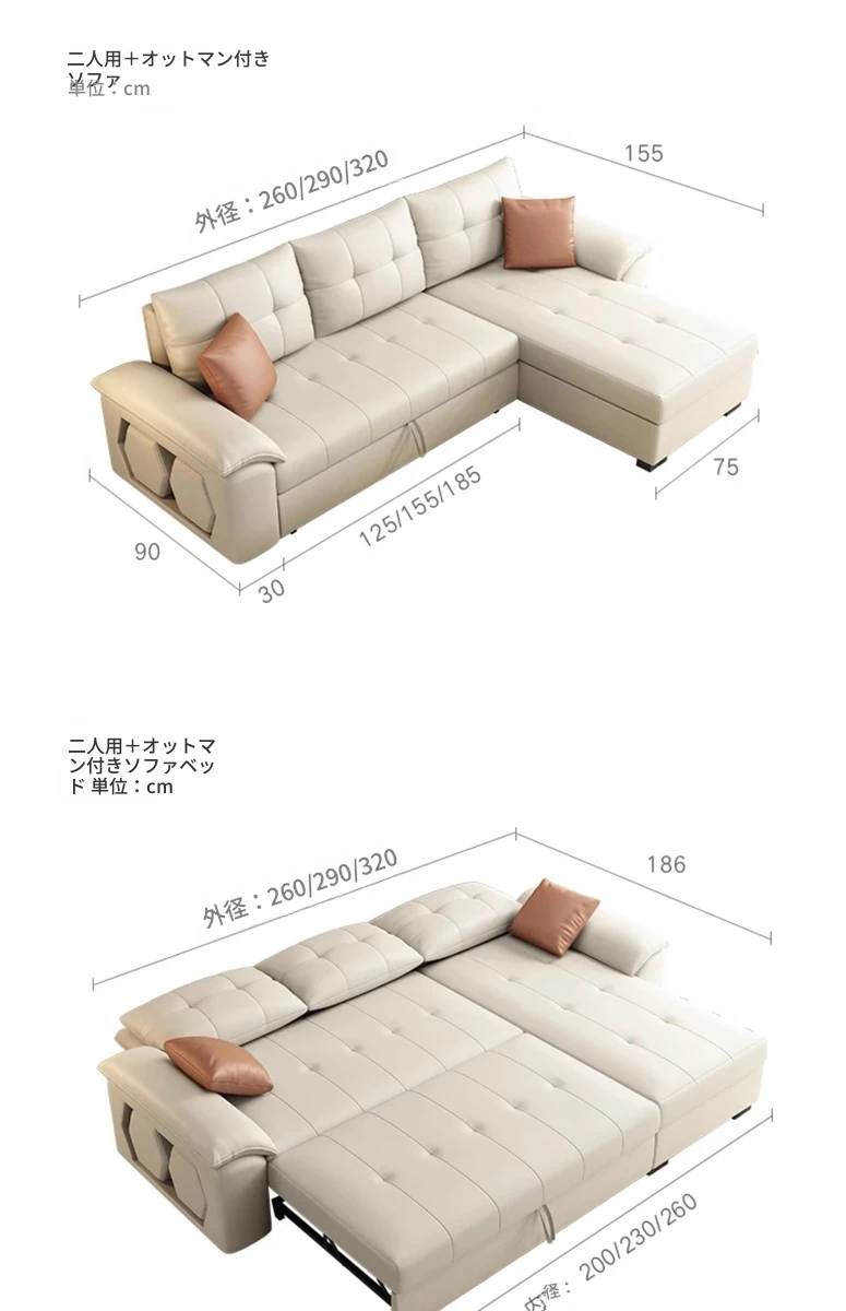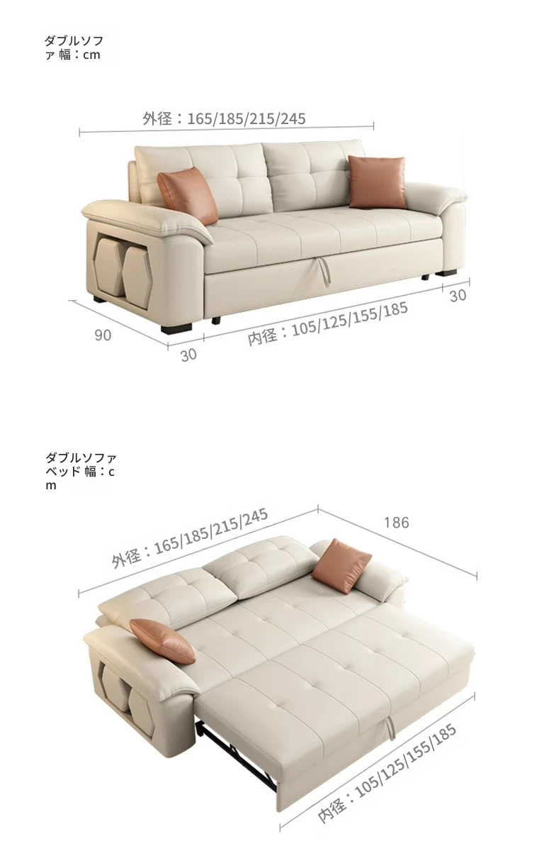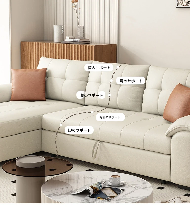 2.15メートル二肘掛け【ラテックスタイプ】皮感テクノロジー布
