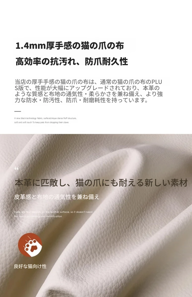 2.45メートル二肘掛け【スポンジタイプ】皮感キャットスクラッチ布