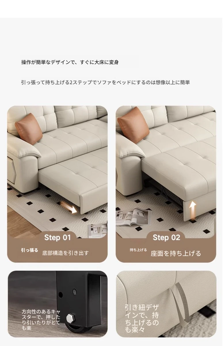 2025新型マルチファンクション折りたたみソファベッド!スタイリッシュなテクノロジー布使用、リビングにぴったりな収納機能付き。シンプルなデザインで使い方自由自在、快適な睡眠空間を実現!