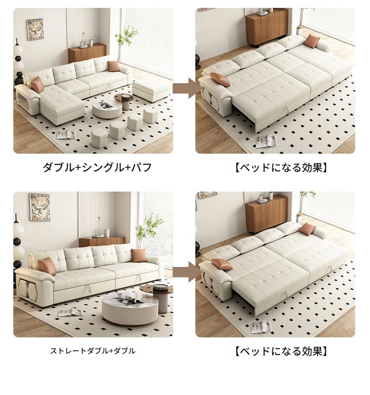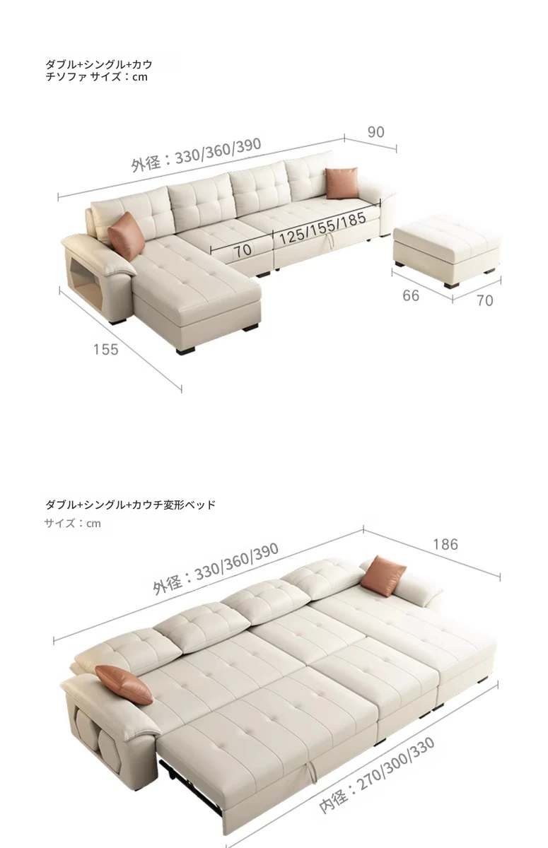 3.90メートル二人+一人+貴婦人+フットスツール【ラテックスタイプ】皮感テクノロジー布