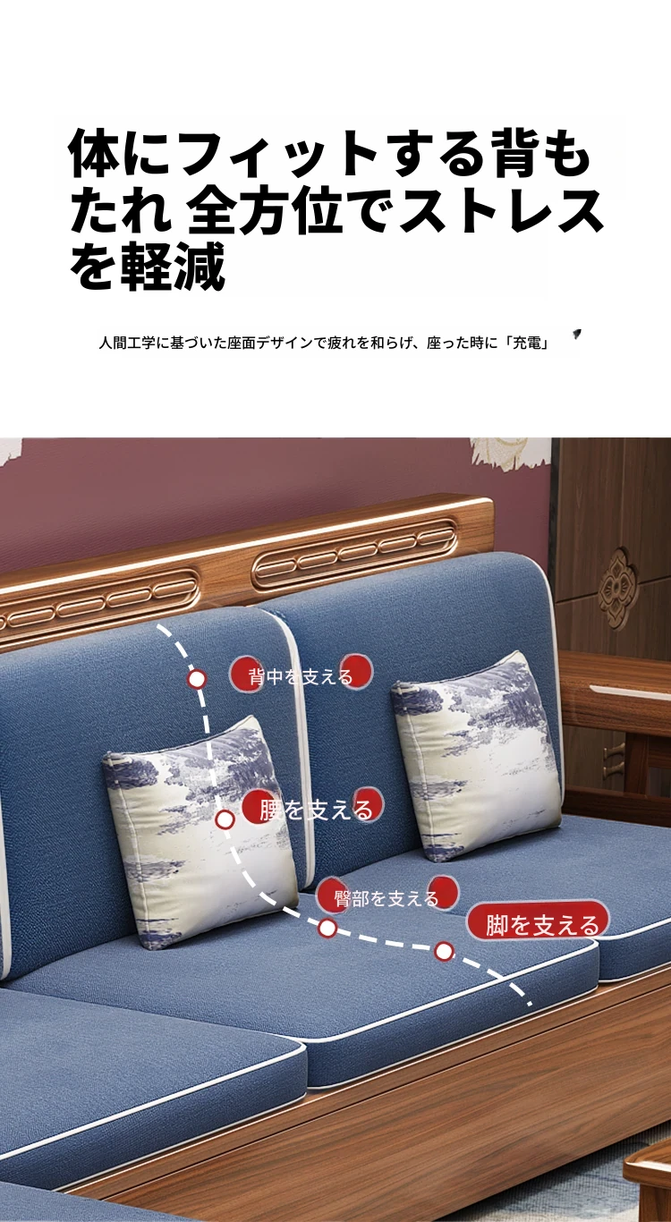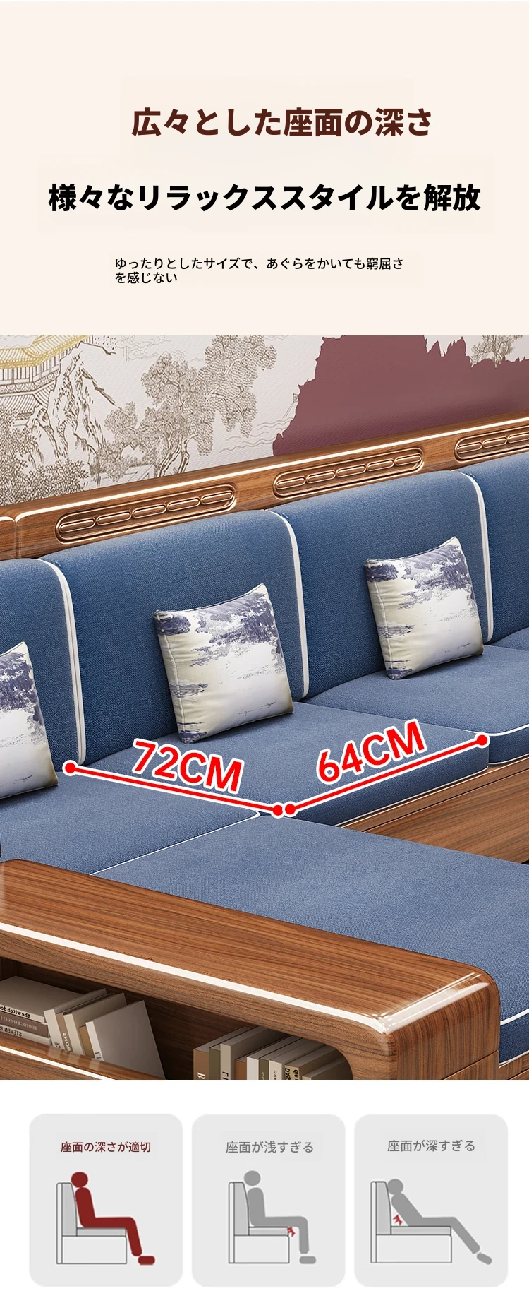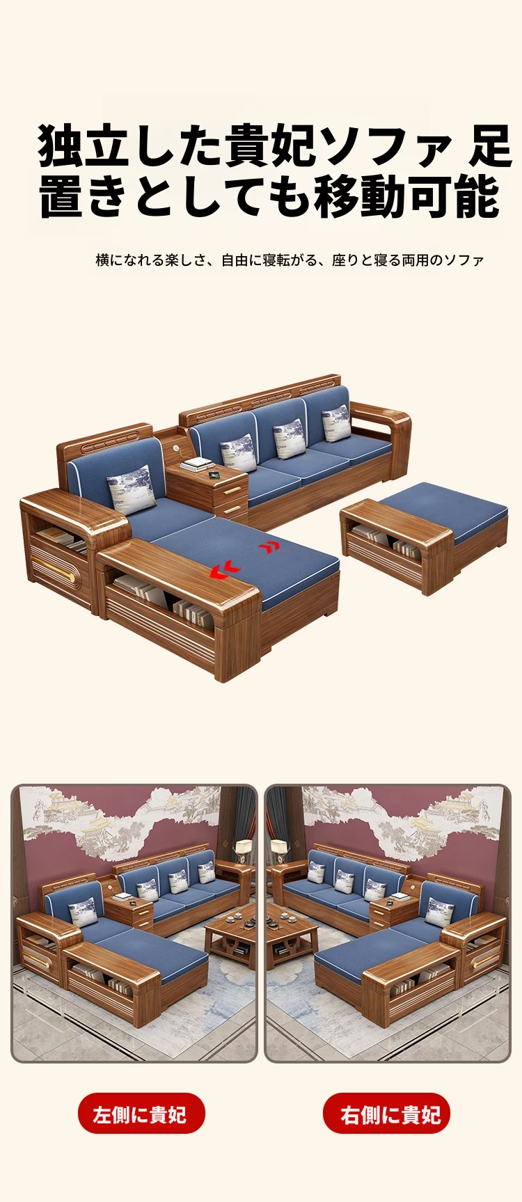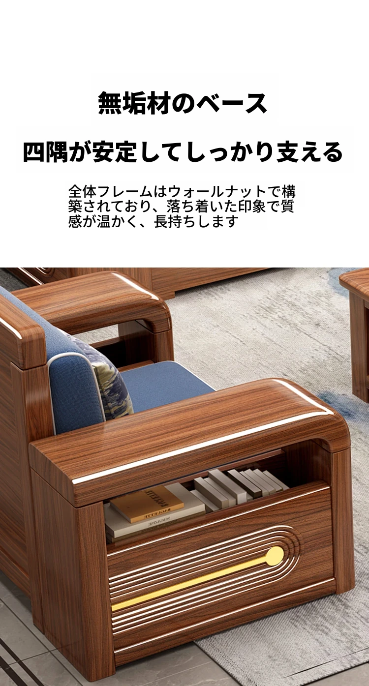 2025年新作!胡桃木中式実木ソファ、冬夏兼用の収納付き小型リビング家具セット。小さなお部屋でもスタイリッシュに!
