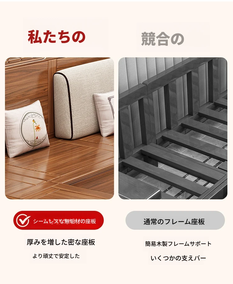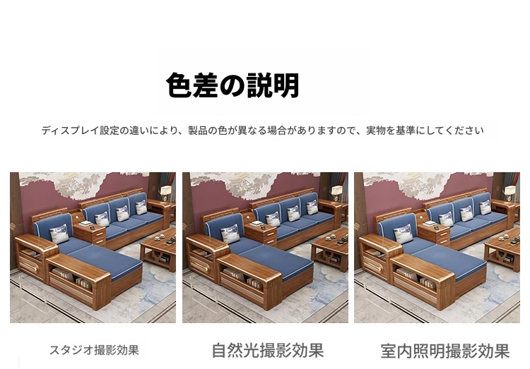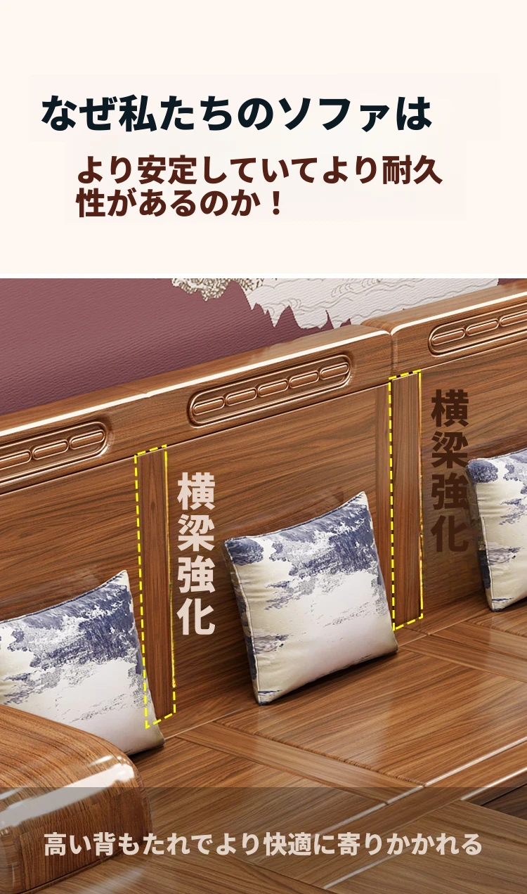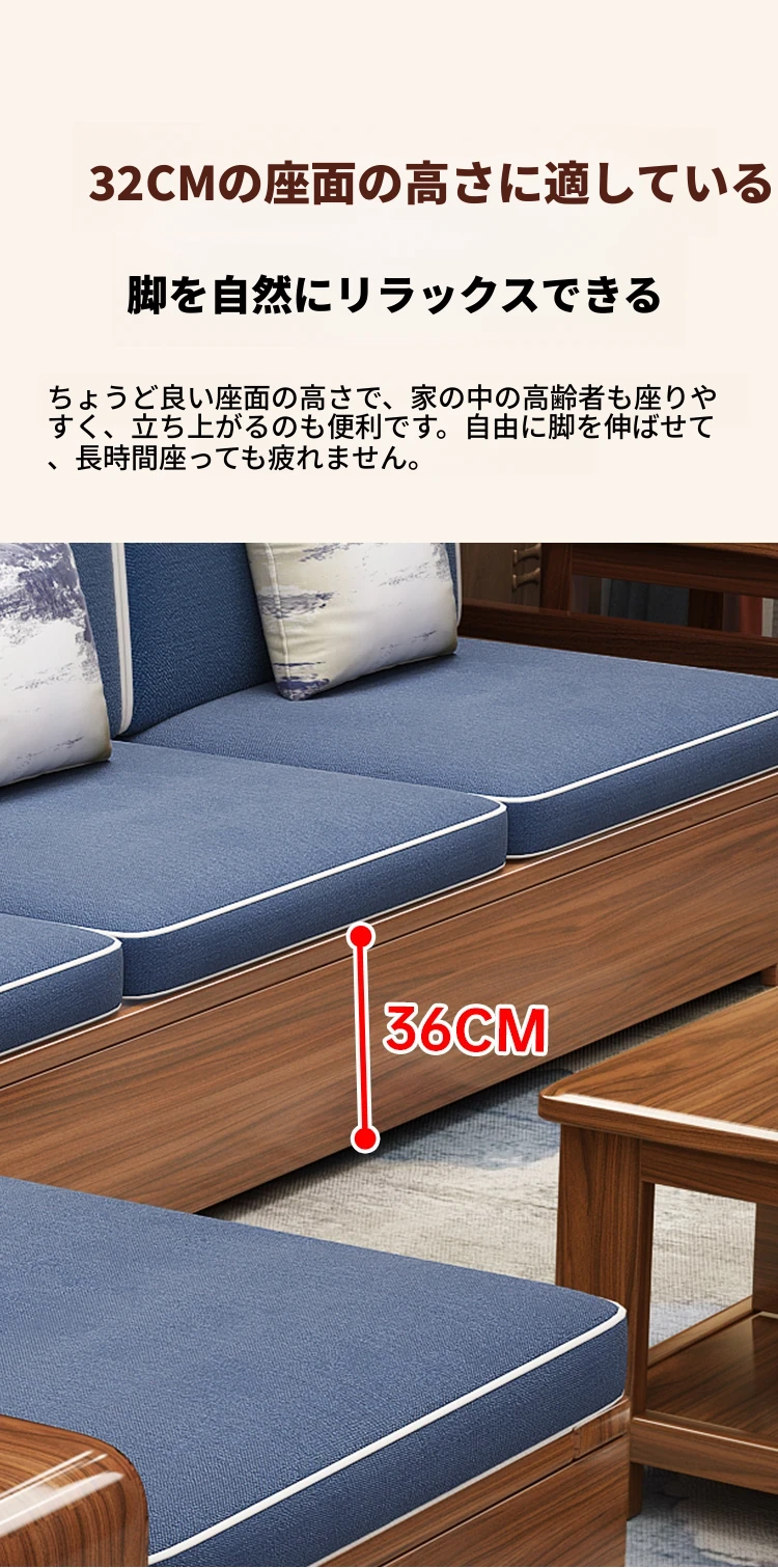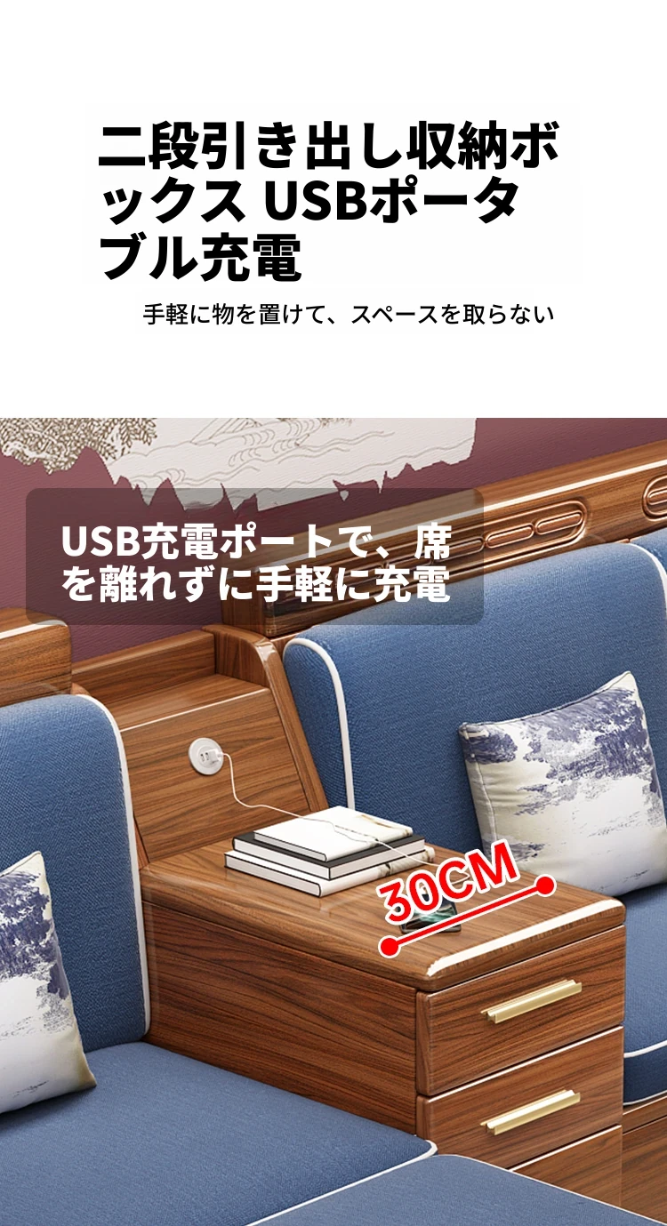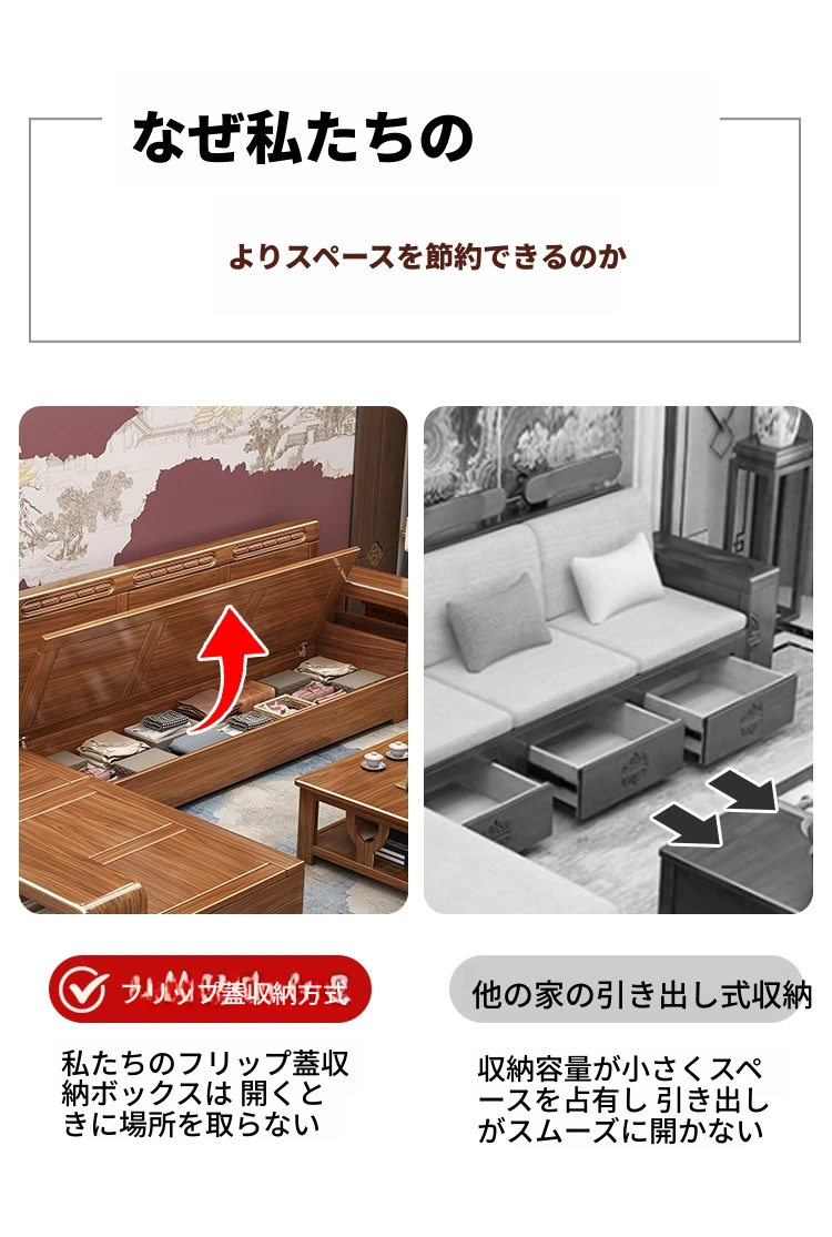 2025年新作!胡桃木中式実木ソファ、冬夏兼用の収納付き小型リビング家具セット。小さなお部屋でもスタイリッシュに!