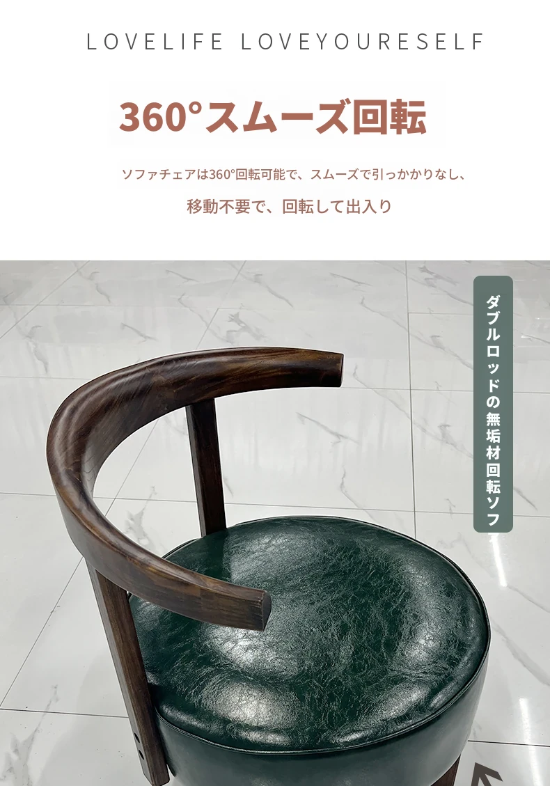 360°回転ソファチェア・ハート型シート|モダンでシンプルなデザイン|リビング、バルコニー、家庭用、ホテルに最適|全実木製で高品質!