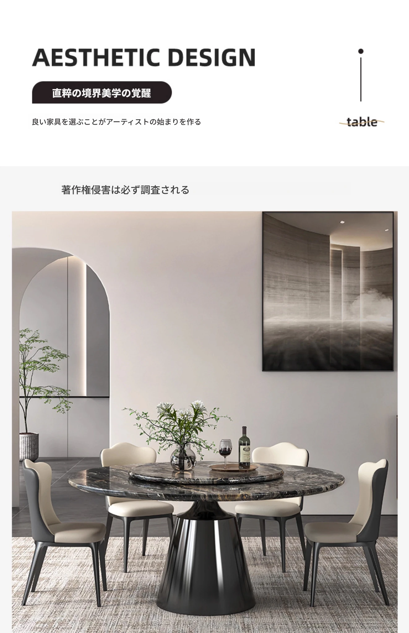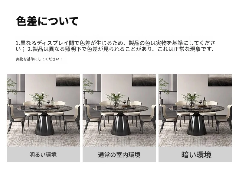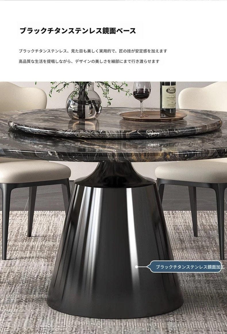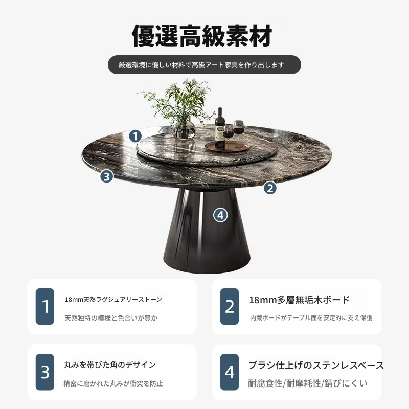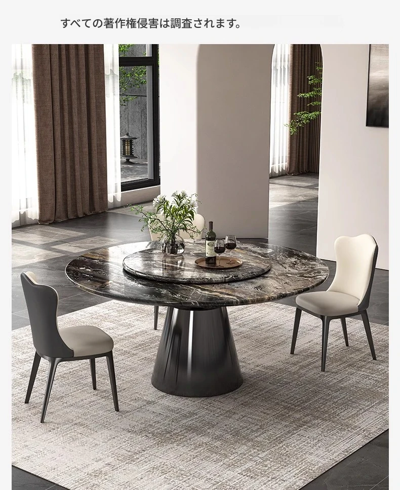 【輸入】ヴェネツィアブラウンラグジュアリー石製ダイニングテーブル+回転盤+本革ダイニングチェア*4