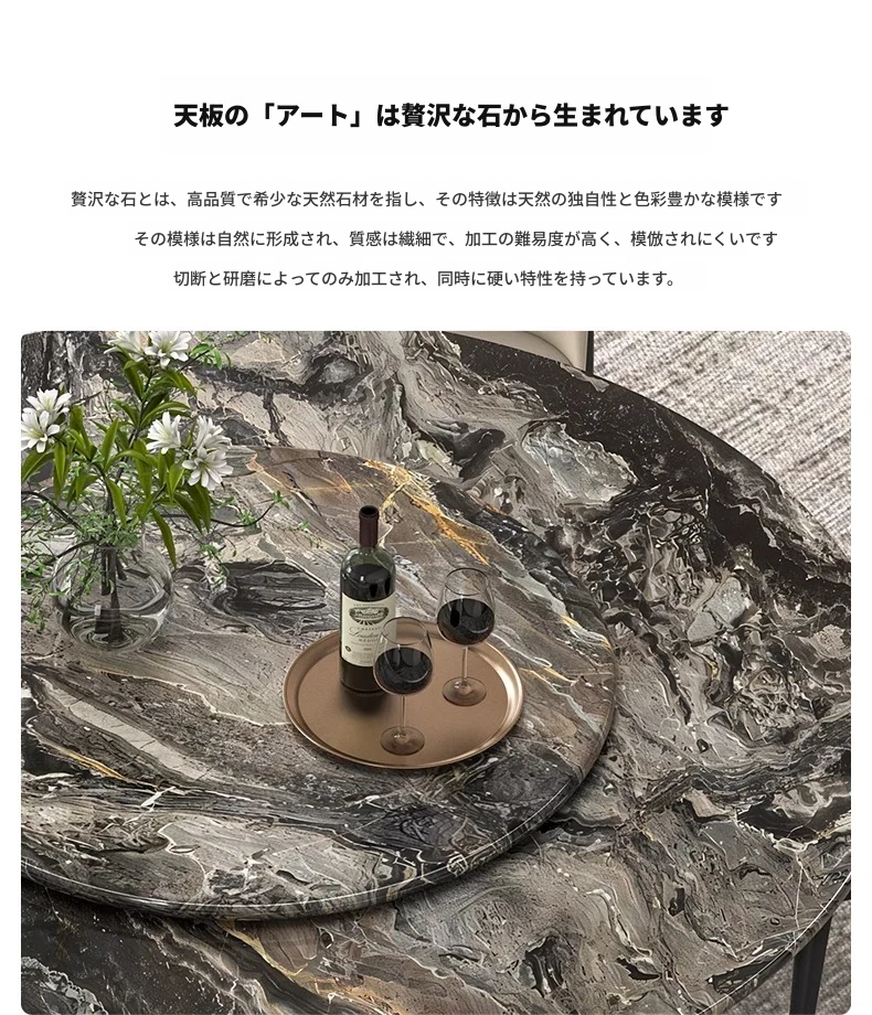 【国産】ヴェネツィアブラウンラグジュアリー石製ダイニングテーブル+回転盤
