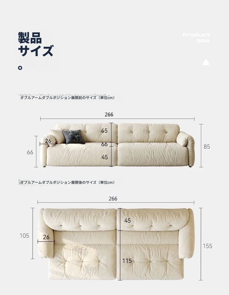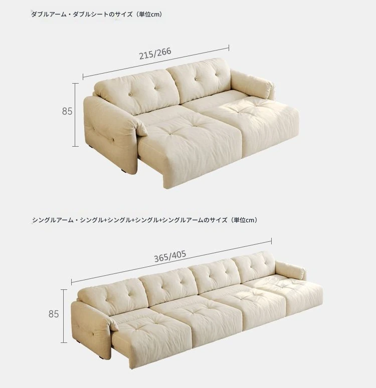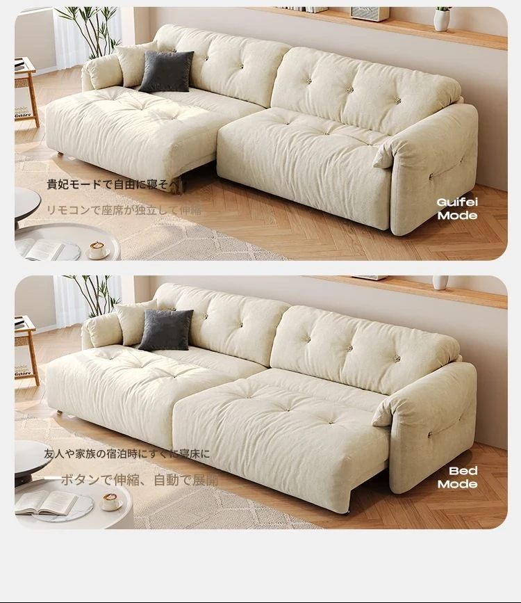 アレクシス・クラウド 電動ソファ 2025年新作!クリーム風の伸縮式布製マルチファンクションソファベッド。リビングに最適な快適さとスタイルを兼ね備えています!