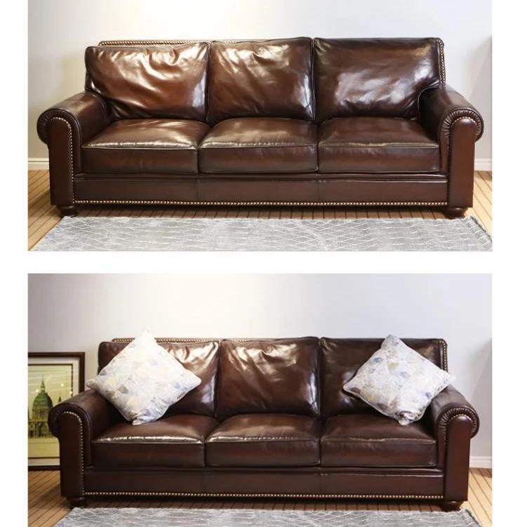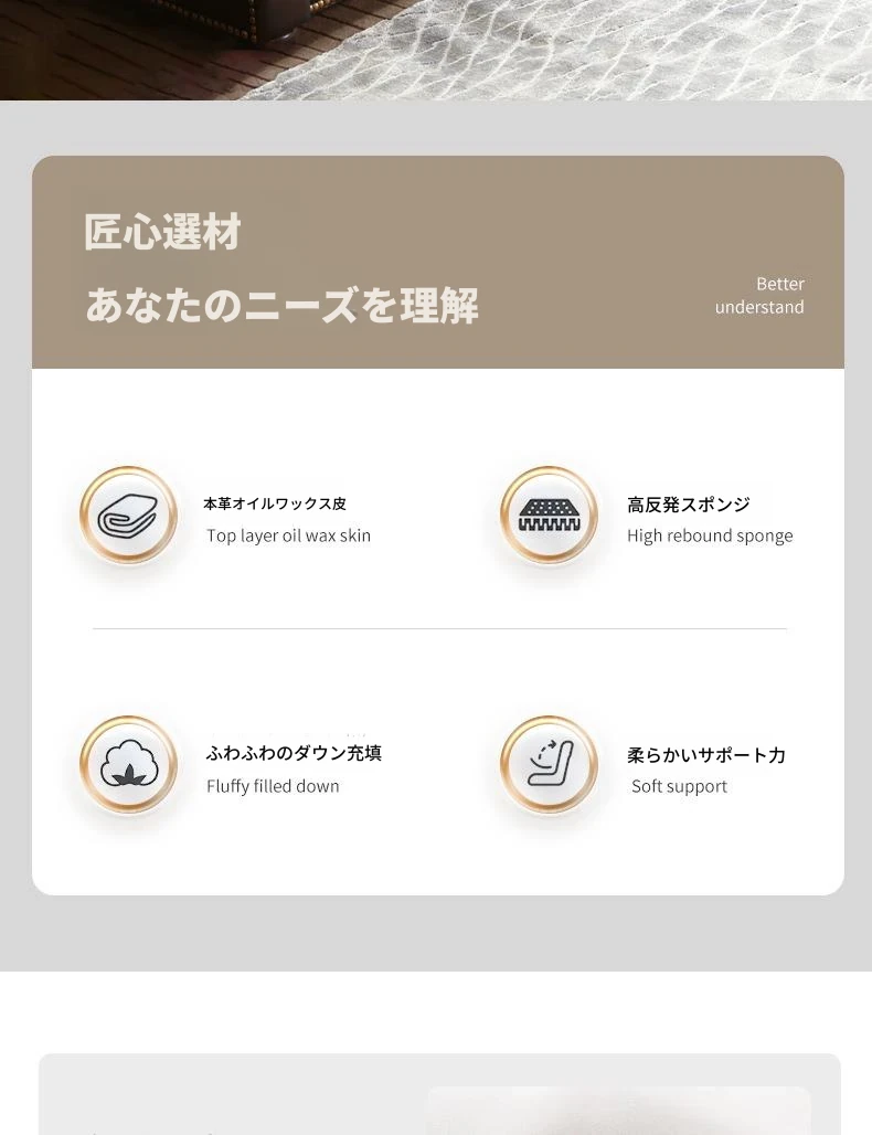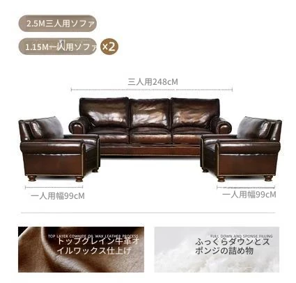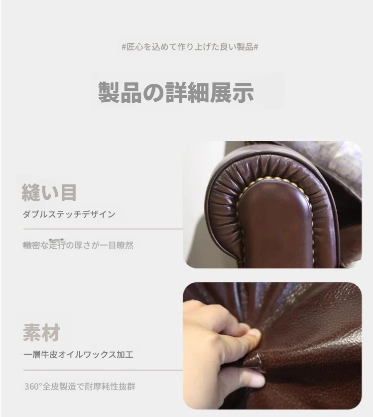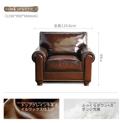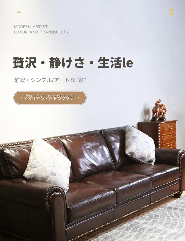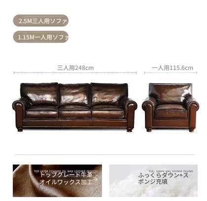 アメリカン・ライトラグジュアリー 小型リビング向け 本革ソファ 欧州風シンプルデザイン 高級トップグレインオイルワックスレザー使用のソファで、快適さとスタイルを両立!