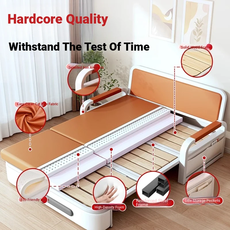 Aojing Multi-Functional Sofa Bed - Compact & Stylish 2-in-1 Design for Small Spaces, Perfect for Balconies & Living Rooms, Solid Wood Construction for Single Use