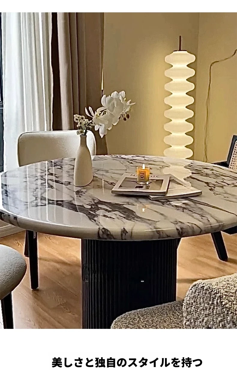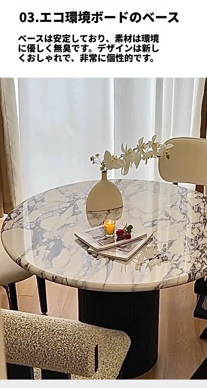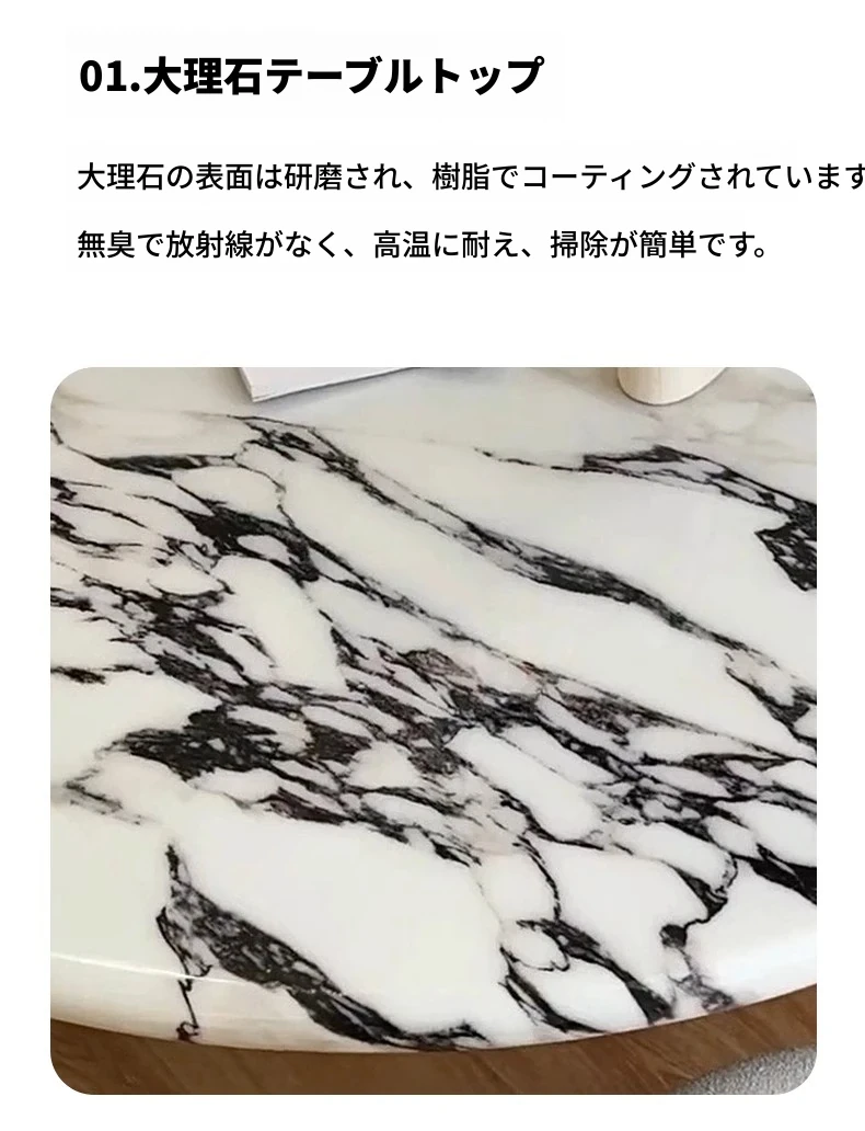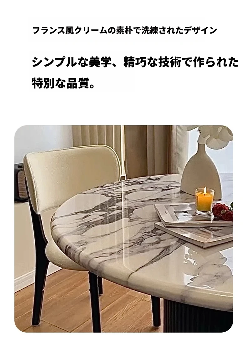 ベイジュ バグリ 家庭用モダンシンプルラグジュアリー 木製小型テーブル 丸型大理石クリーム風デザイン 食卓にぴったりの上品なアイテム!