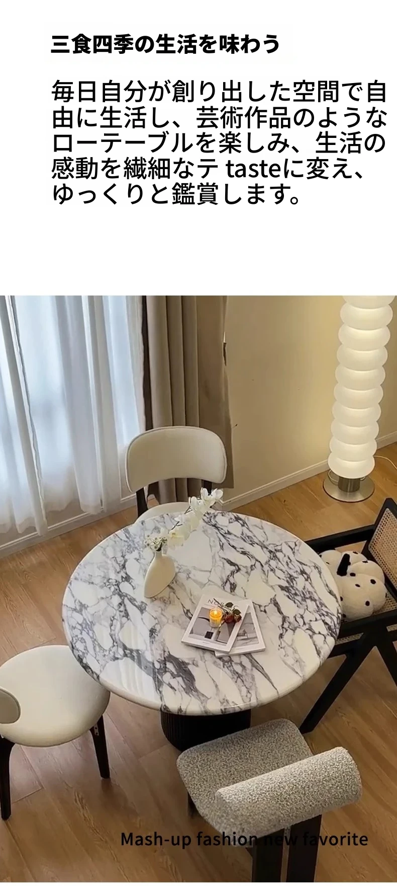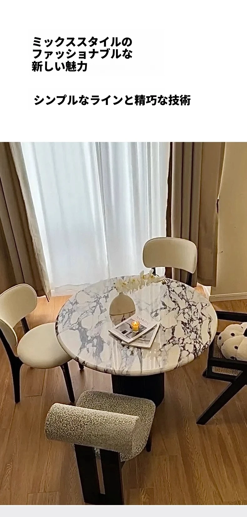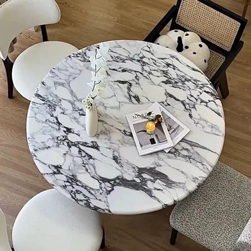 ベイジュ バグリ 家庭用モダンシンプルラグジュアリー 木製小型テーブル 丸型大理石クリーム風デザイン 食卓にぴったりの上品なアイテム!
