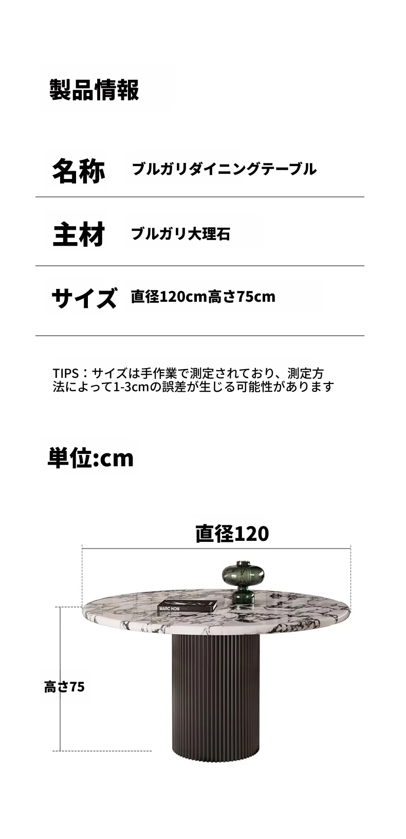 ブルガリダイニングテーブル(直径120)