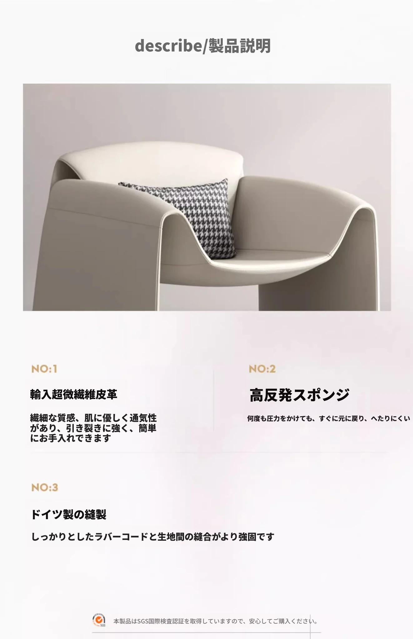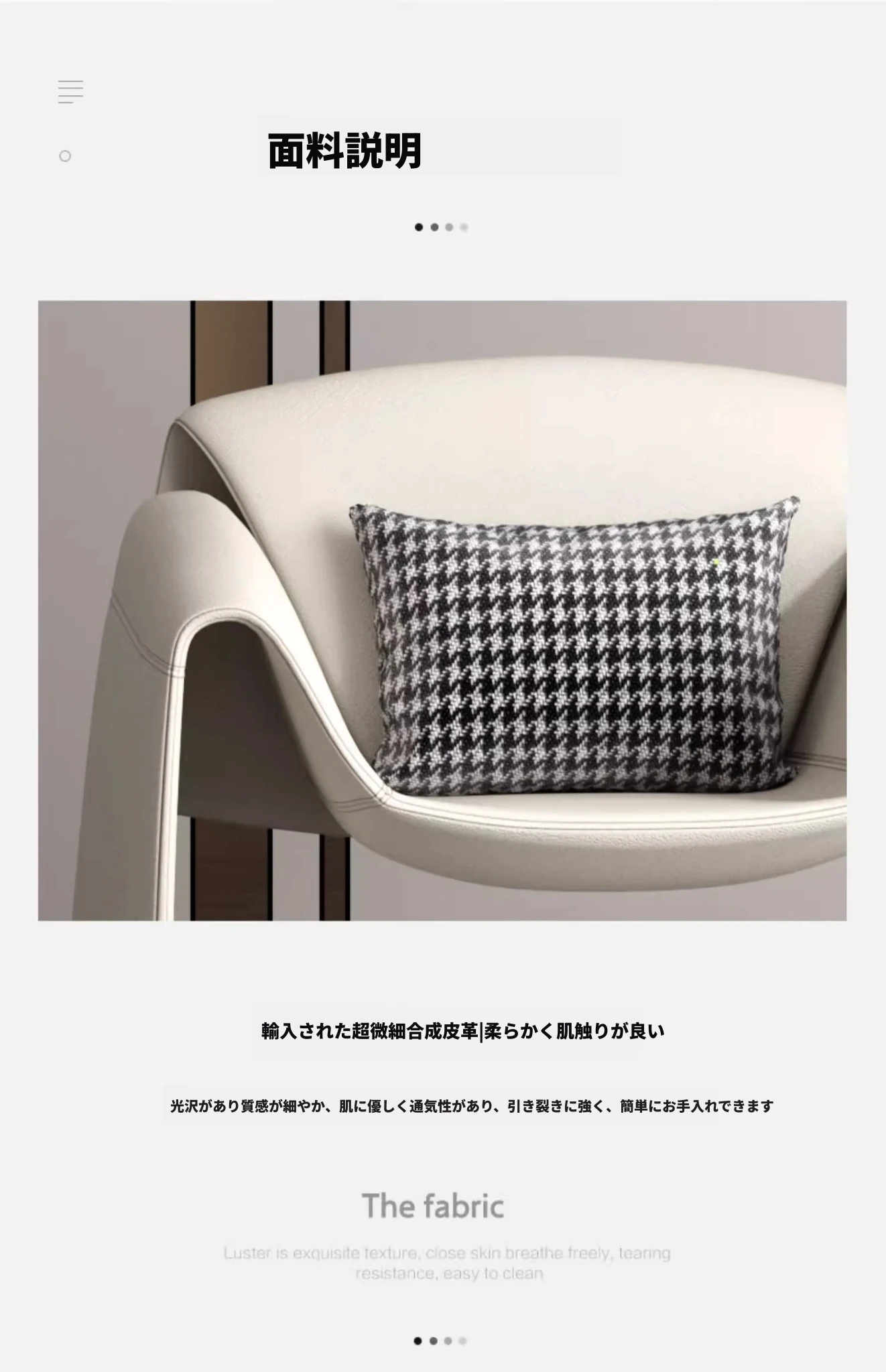 アイボリー(超ファイバー皮) 腰枕付き アイボリー(超ファイバー皮) 腰枕付き