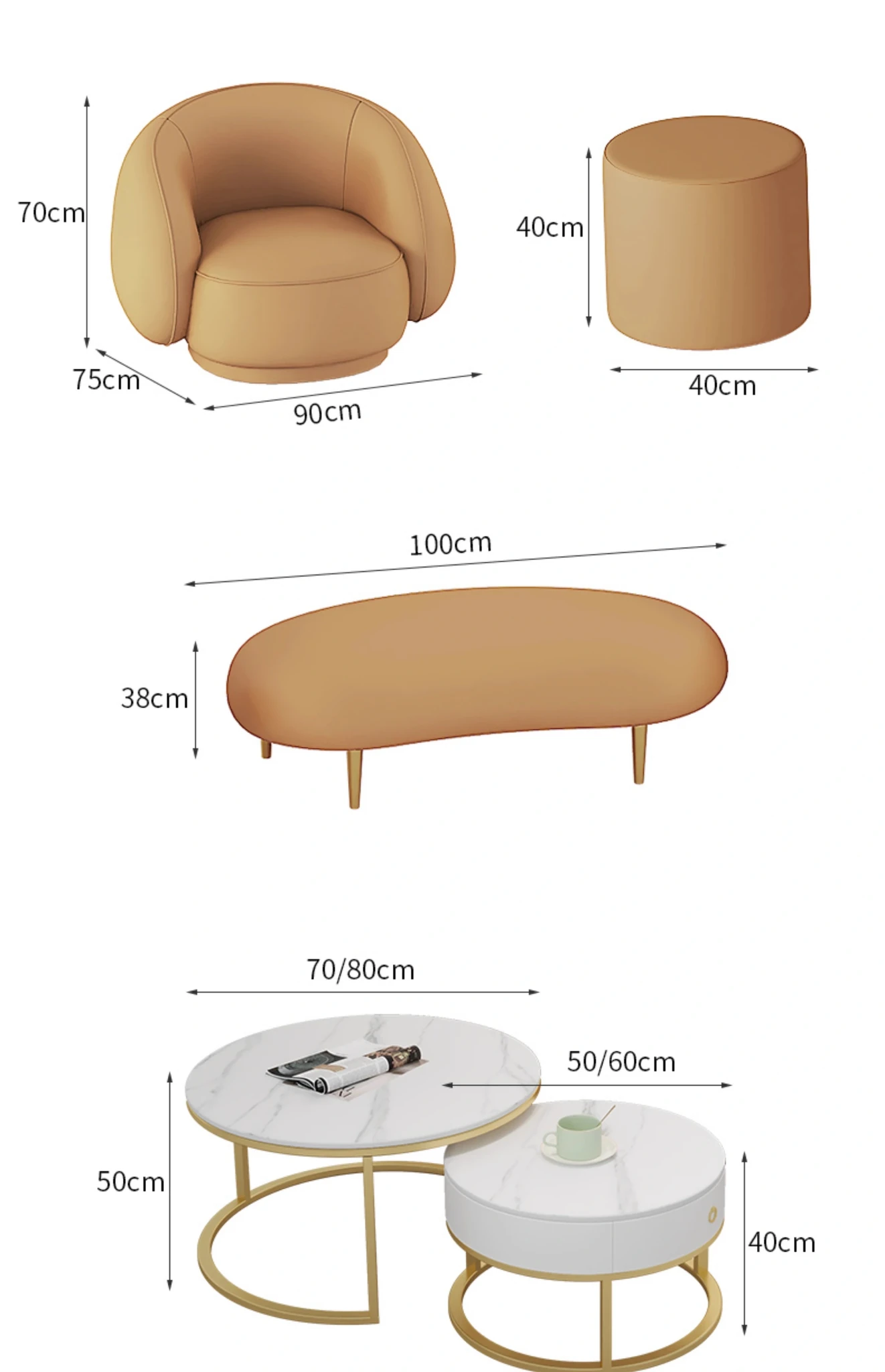 三人用+アーチ型スツール+2つの円形スツール+コーヒーテーブル 三人用+アーチ型スツール+2つの円形スツール+コーヒーテーブル