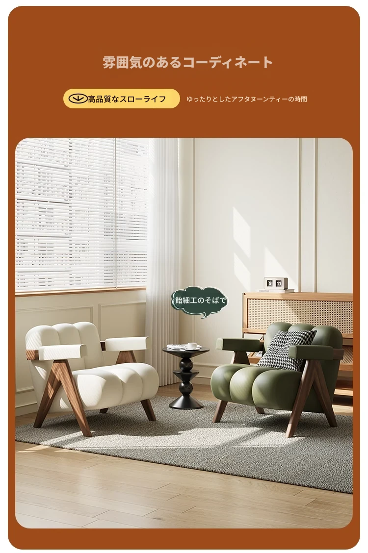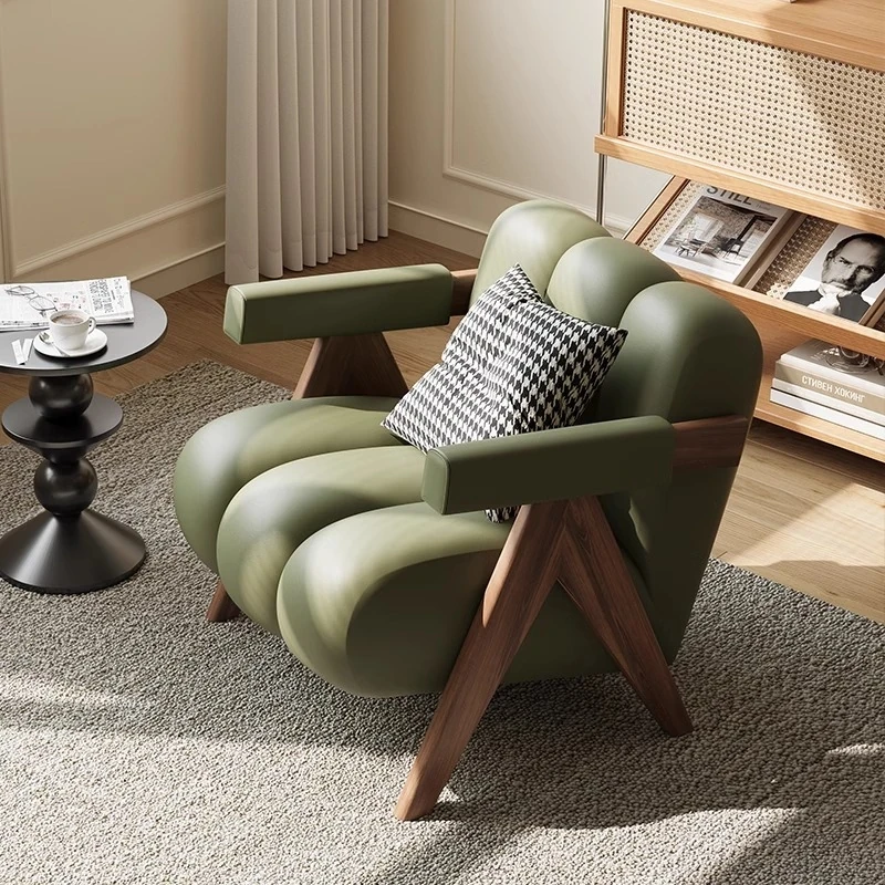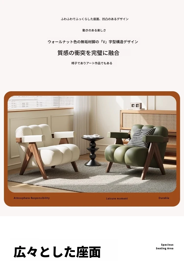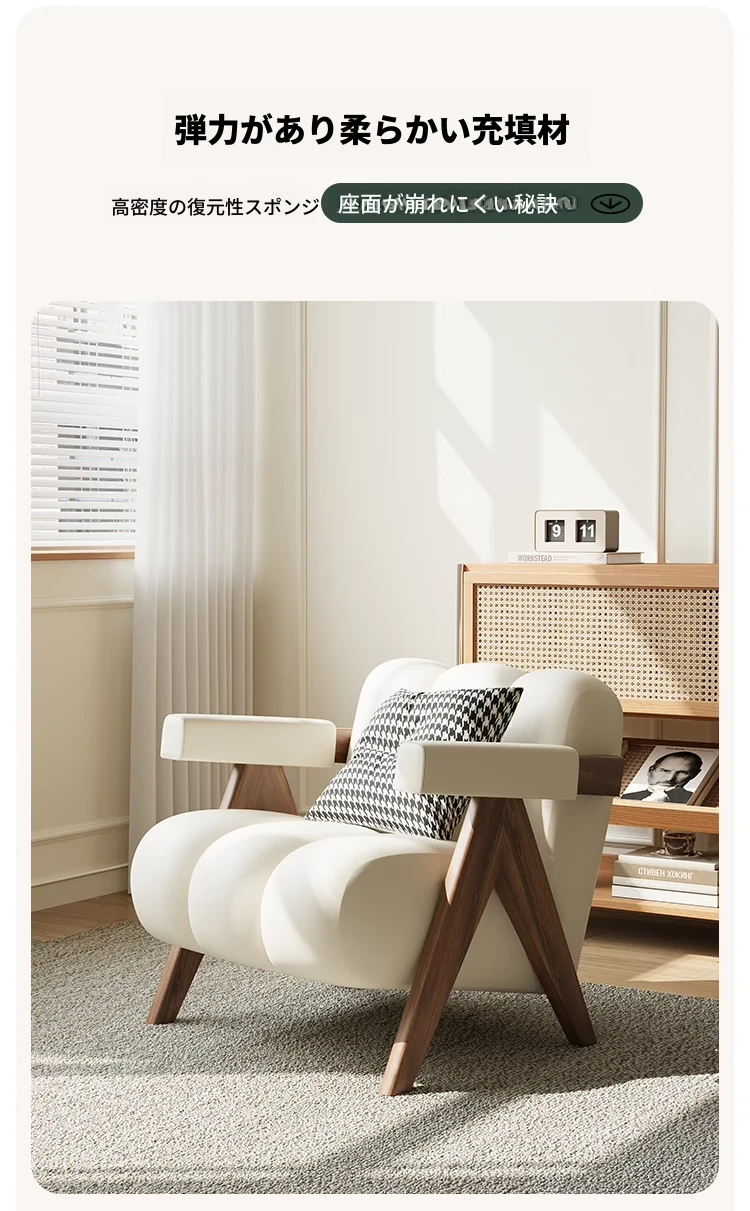バイシークリーム風リビングルーム用一人用ソファチェア - ラグジュアリー感溢れるシンプルデザイン、バルコニーやリラックススペースに最適な高級感あふれる一人掛け椅子。