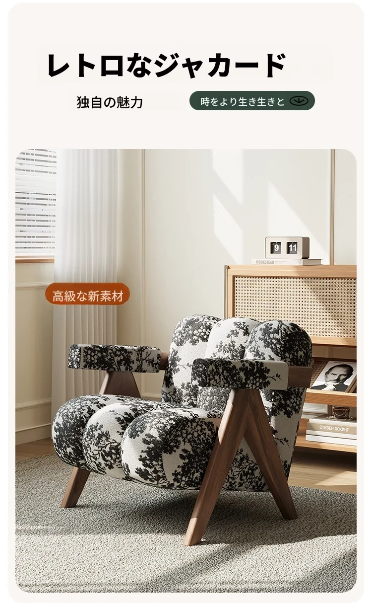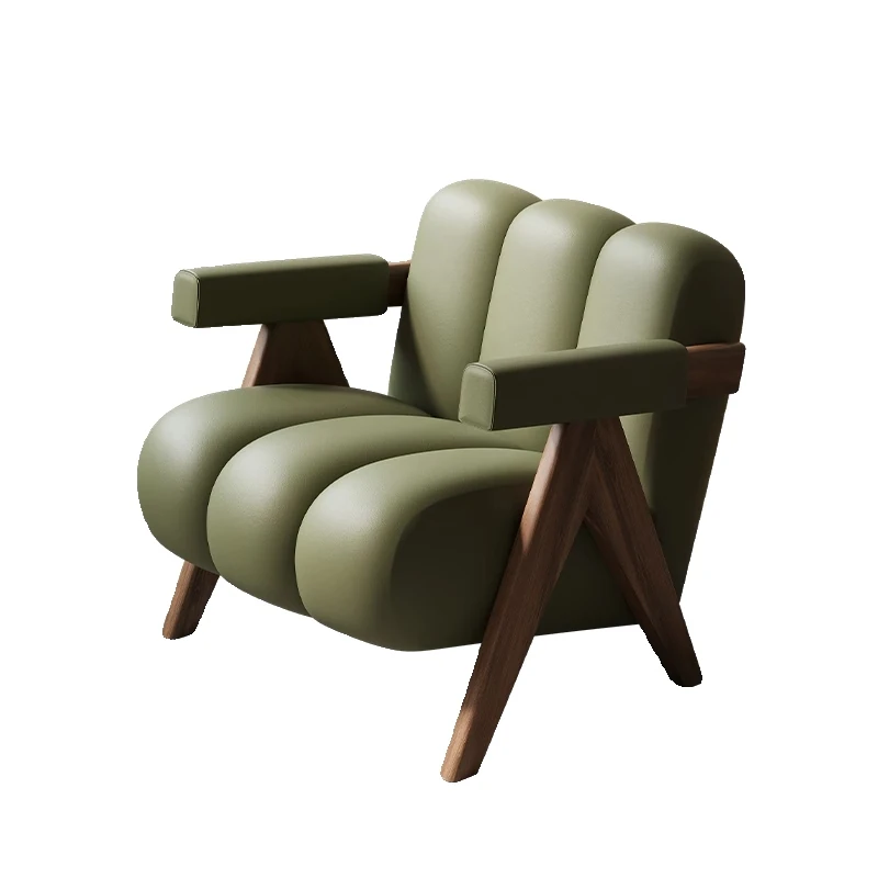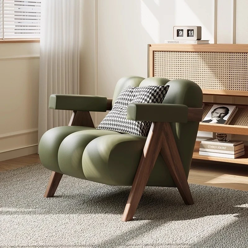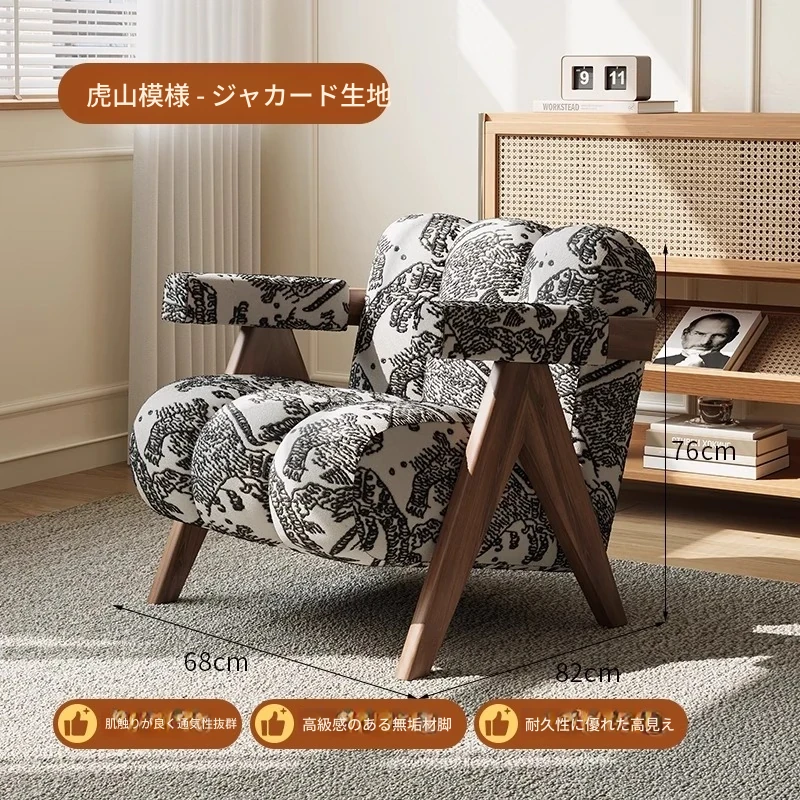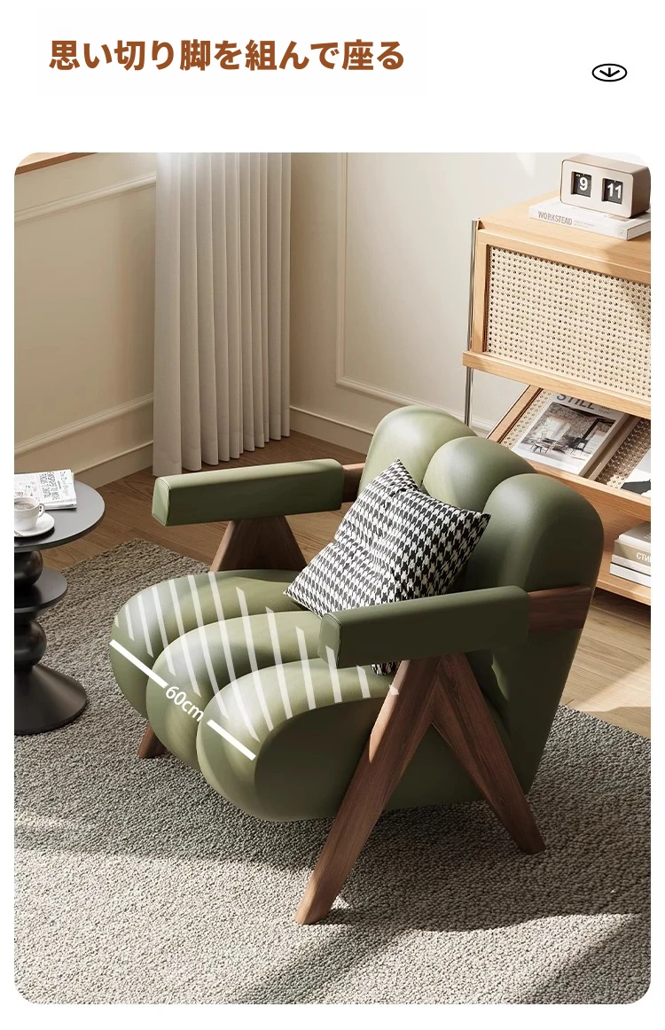 バイシークリーム風リビングルーム用一人用ソファチェア - ラグジュアリー感溢れるシンプルデザイン、バルコニーやリラックススペースに最適な高級感あふれる一人掛け椅子。