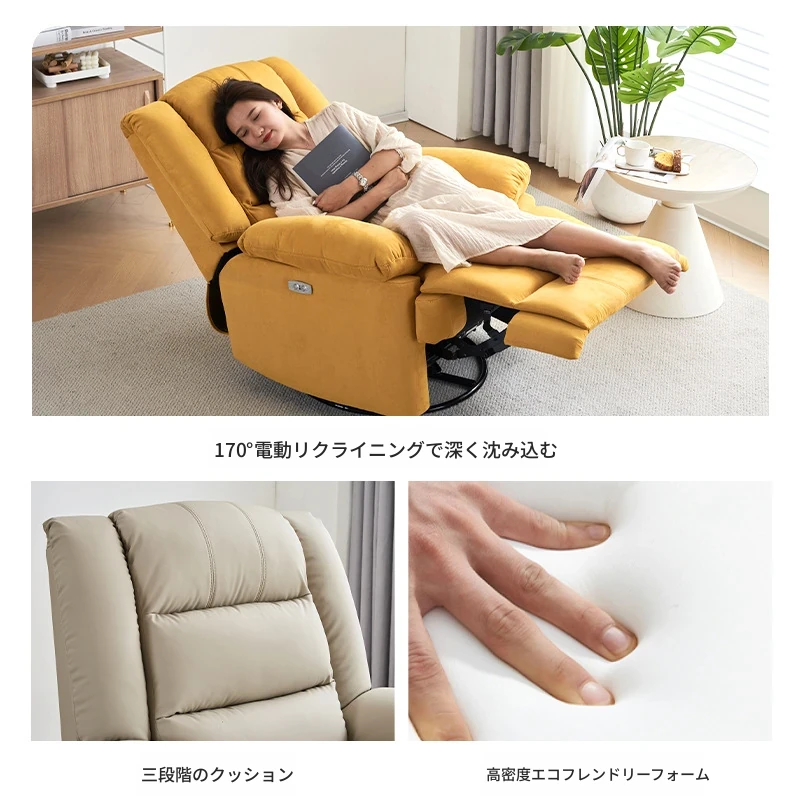 電動リクライニング+スウィング+270度回転+USB+マッサージ