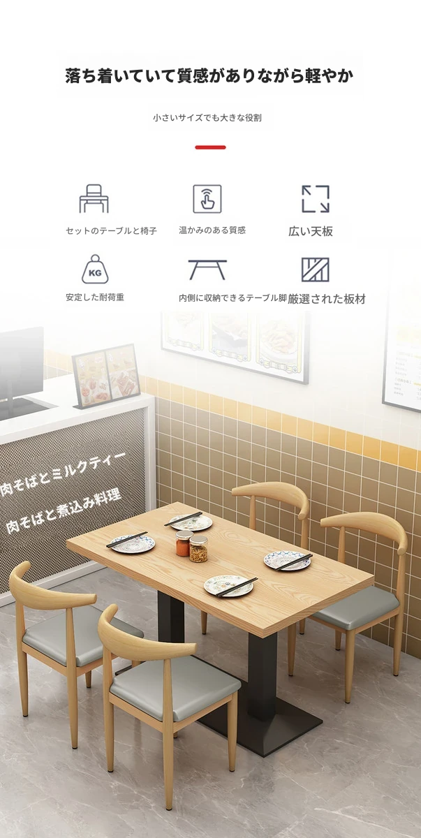 商業用 飲食店向けテーブル&チェアセット|タピオカ・ハンバーガー・ファーストフード・鶏の唐揚げ・焼肉・スイーツ店に最適!おしゃれで機能的なデザインで、お客様を引き寄せる魅力満点。