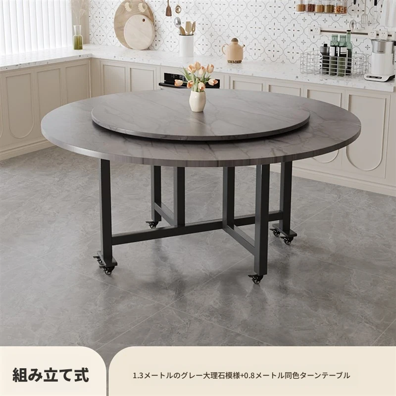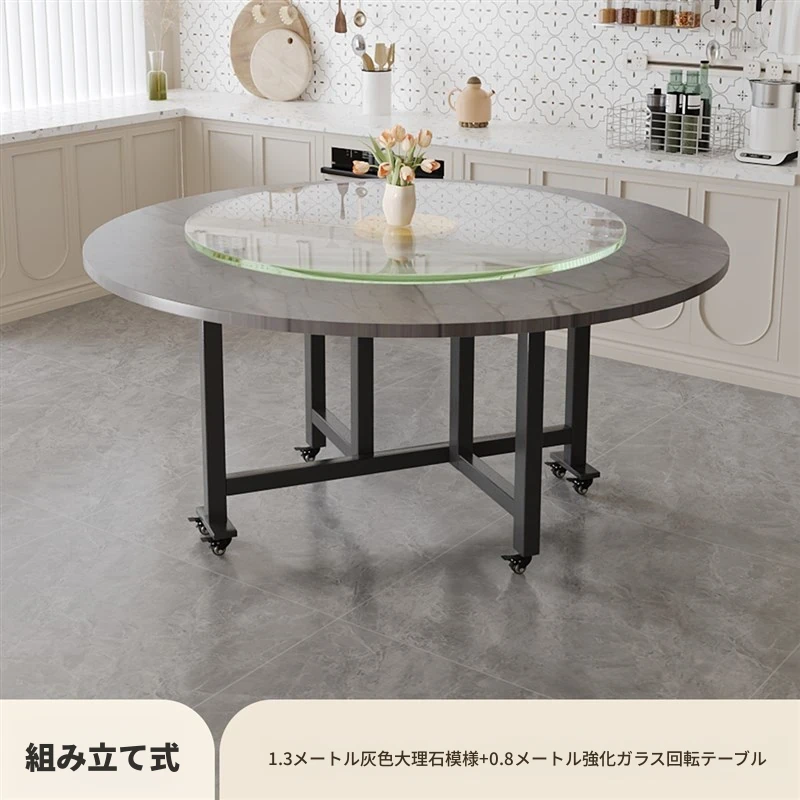 1.3メートル灰理石模様+0.8メートルガラス回転盤 組み立て式