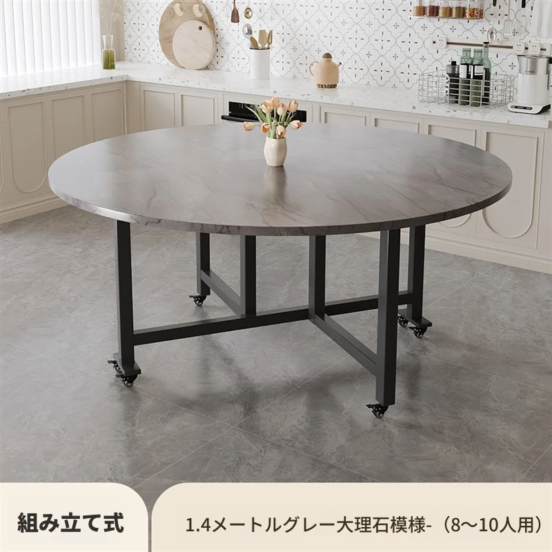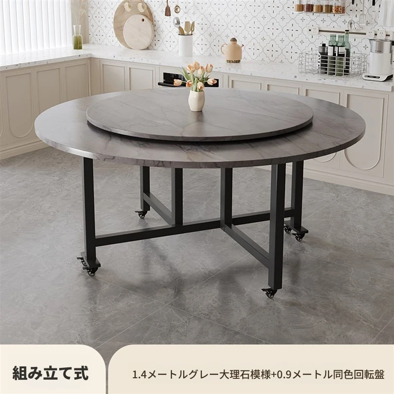 1.4メートル灰理石模様+0.9メートルガラス回転盤 組み立て式