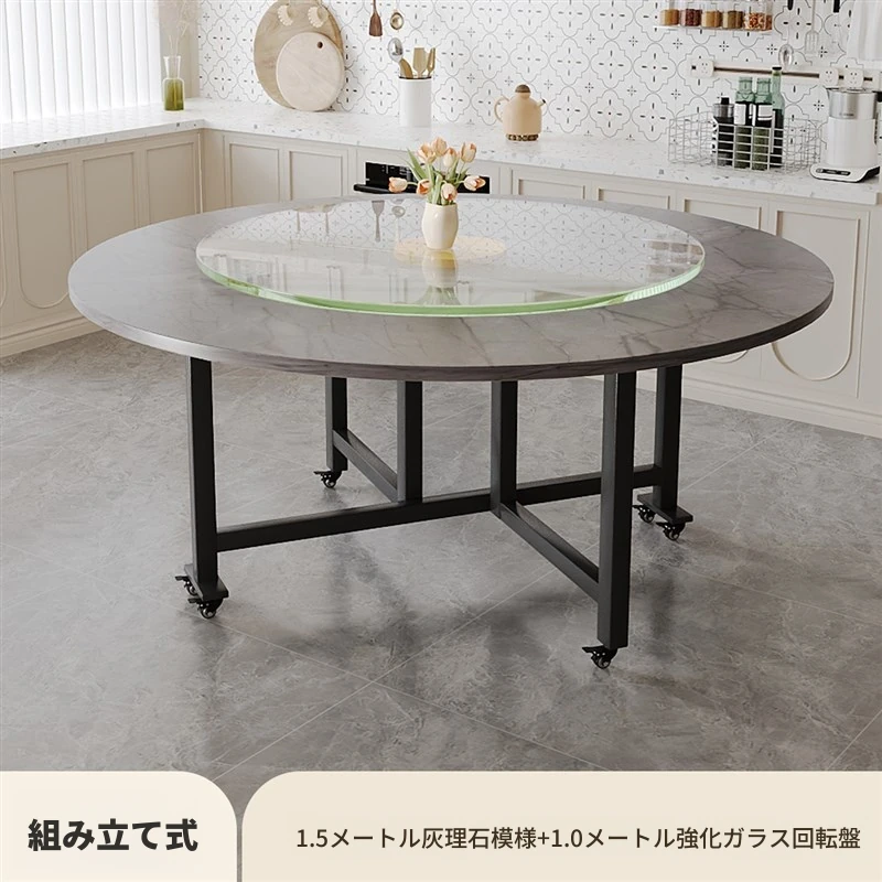 1.5メートル灰理石模様+1メートルガラス回転盤 組み立て式
