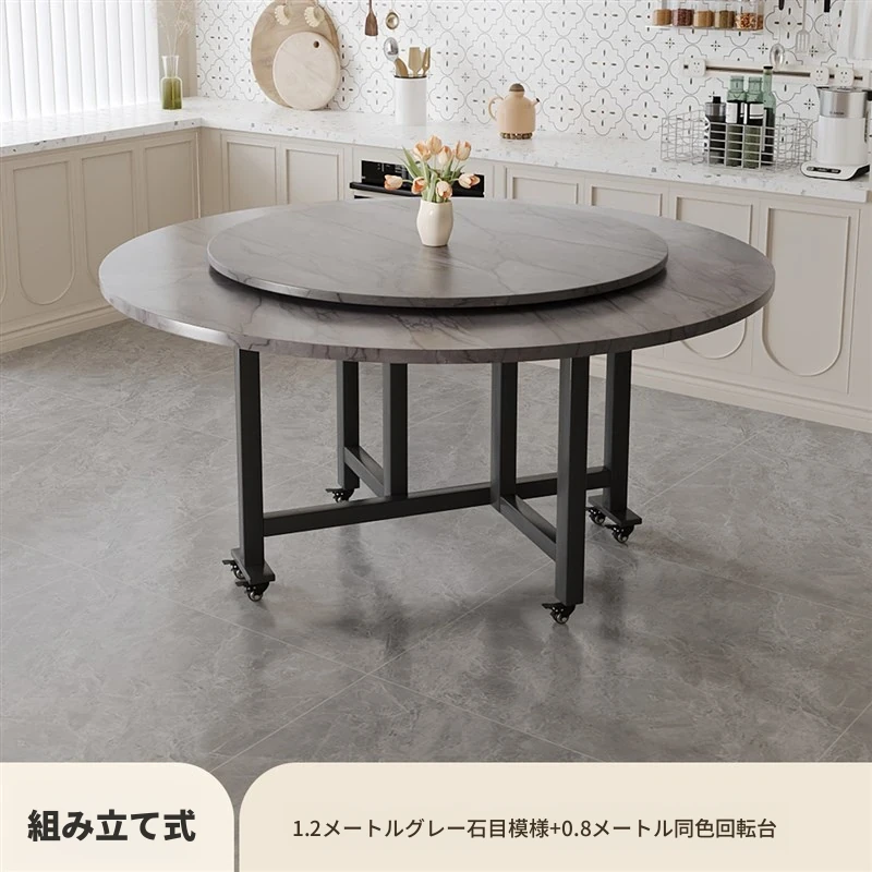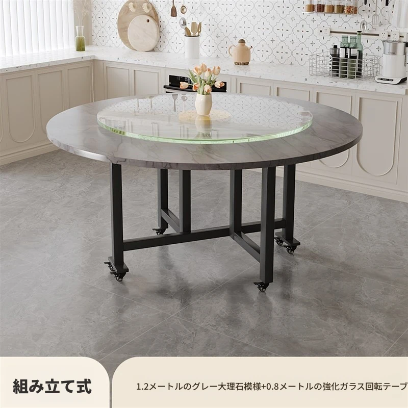 1.2メートル灰理石模様+0.8メートルガラス回転盤 組み立て式