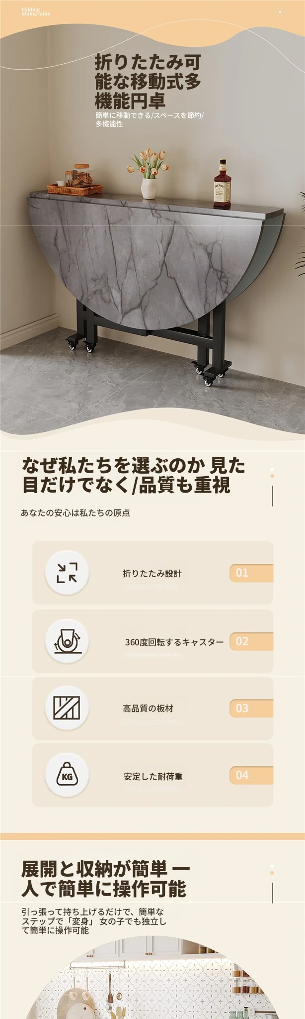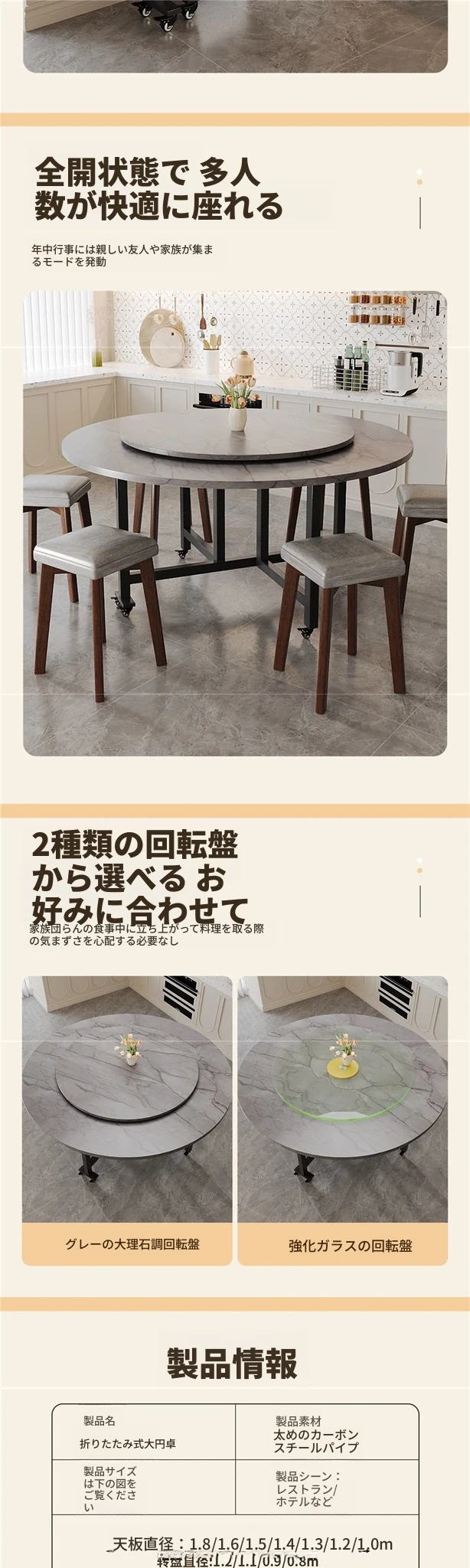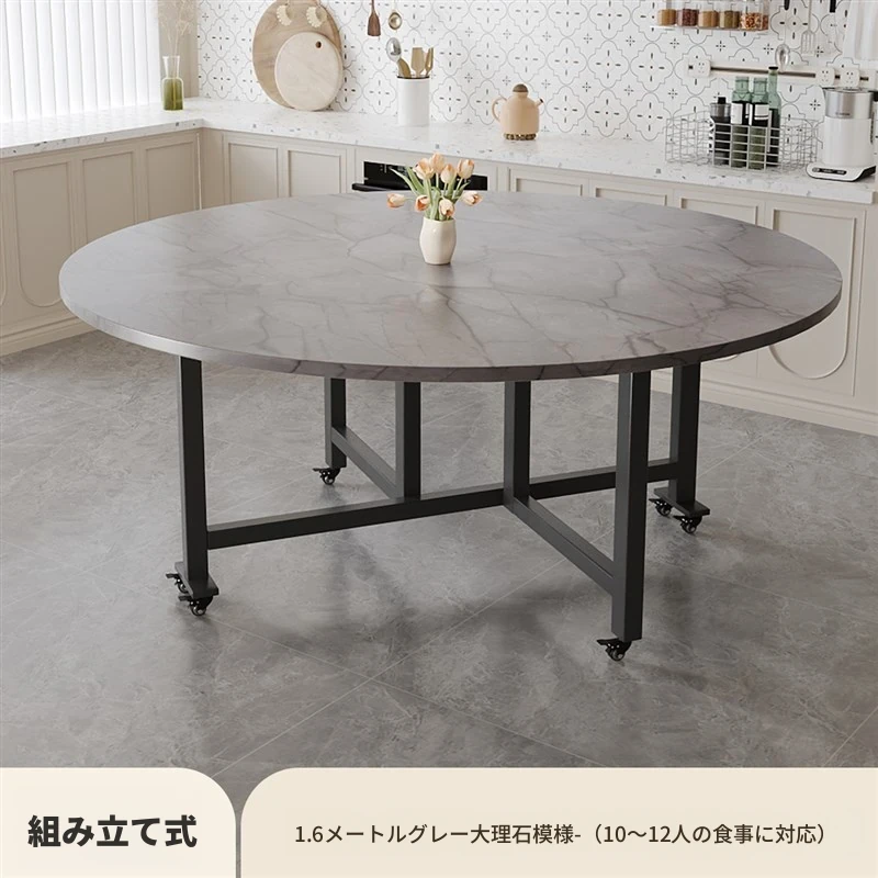 折りたたみ式ダイニングテーブル - 家庭用10人用の大きな円形テーブル!小さなスペースにもぴったりの簡単設置、移動も楽々!多機能折りたたみ円卓で、食事やパーティーに最適です。