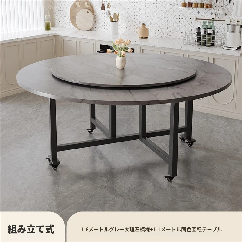 1.6メートル灰理石模様+1.1メートルガラス回転盤 組み立て式