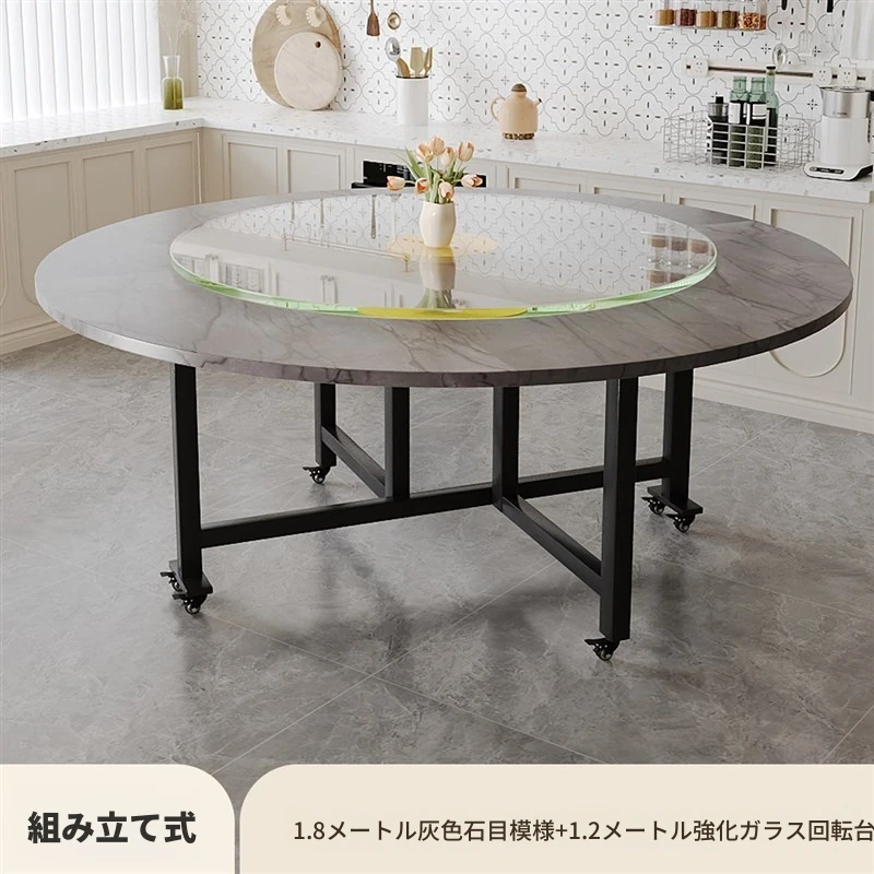 1.8メートル灰理石模様+1.2メートルガラス回転盤 組み立て式