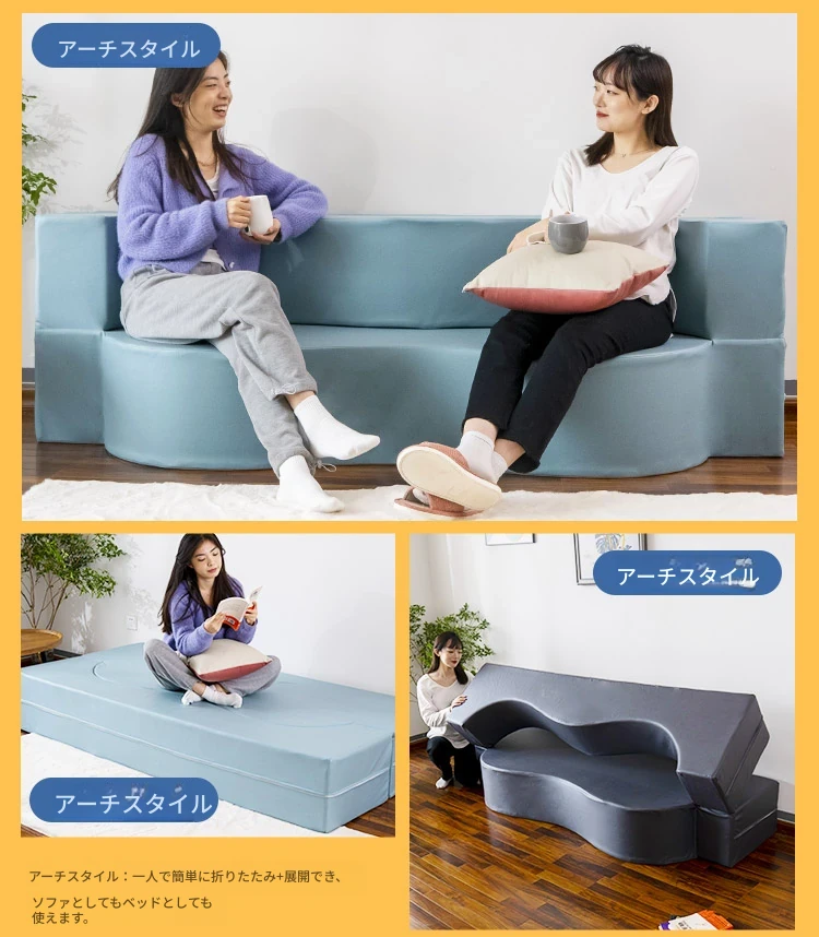 折りたたみ二用途ソファベッド - 小型住宅向けのシンプルで多機能なクリエイティブソファ。最新のテクノロジー布とリネン素材を使用した、軽やかで上質なリビングルームにぴったりの新作!
