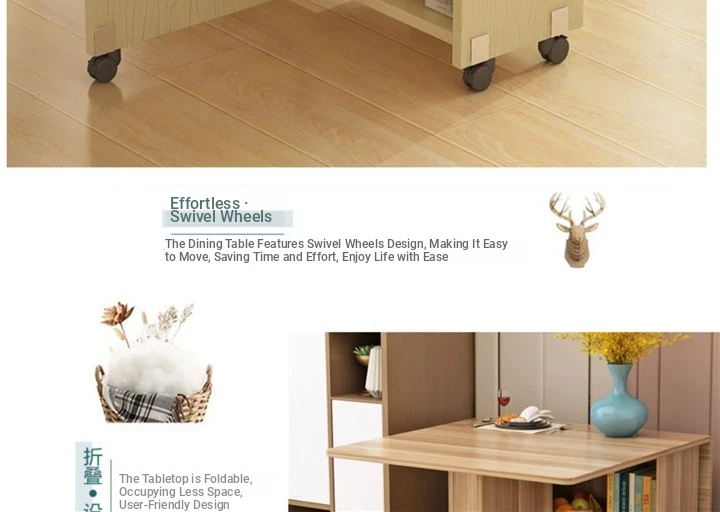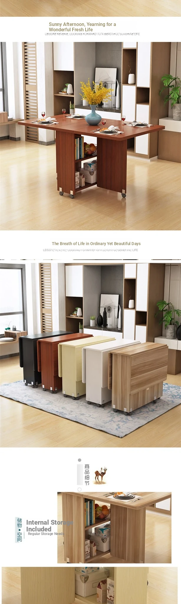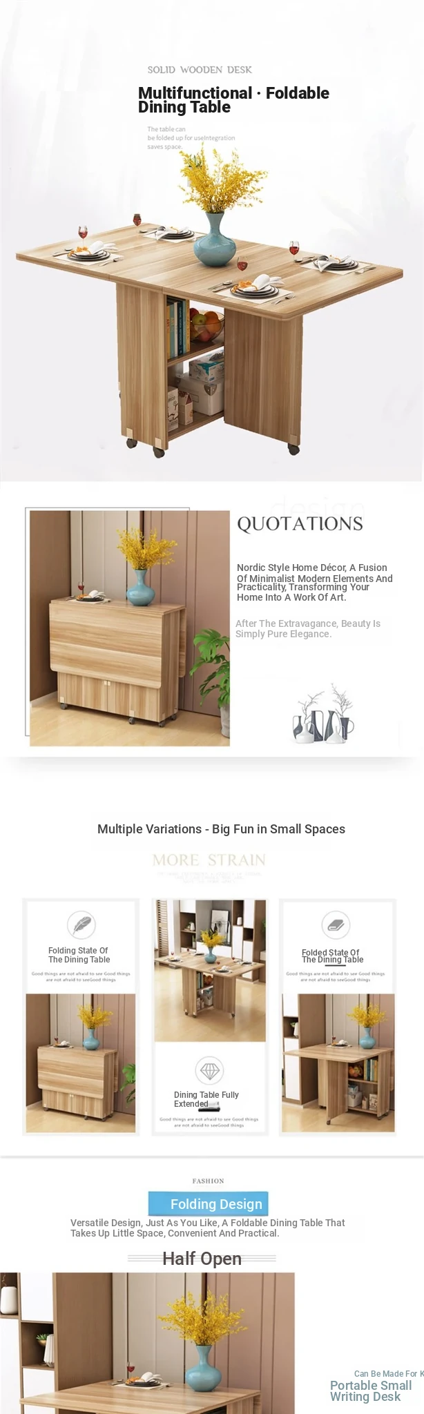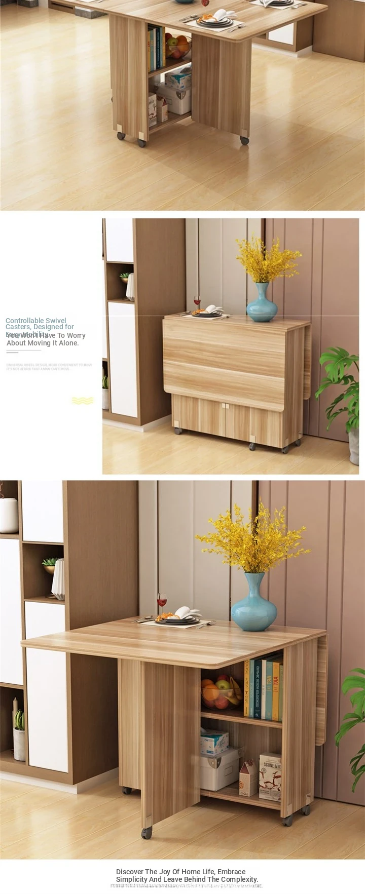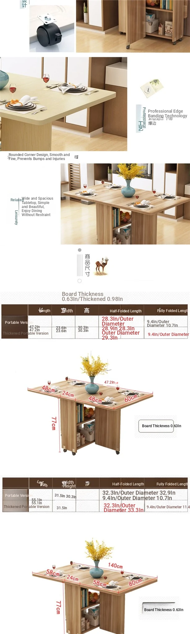 Compact Round Folding Dining Table for Small Spaces - Stylish and Portable with Wheels, Perfect for Home Use - Multi-functional Rectangular Dining Table for Meals and Gatherings