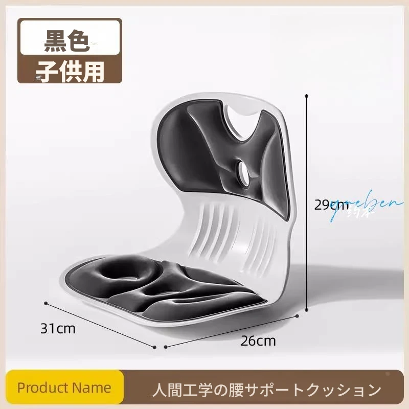 汚れに強いブラック-こども標準サイズ★【授乳・オフィス・学習用腰サポートクッション】