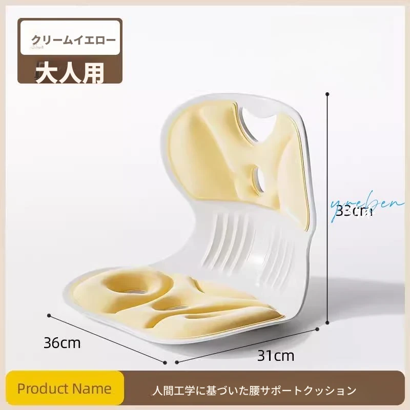 クリームイエロー-大サイズ【高耐久・通気性素材】★【授乳・オフィス・学習用腰サポートクッション】