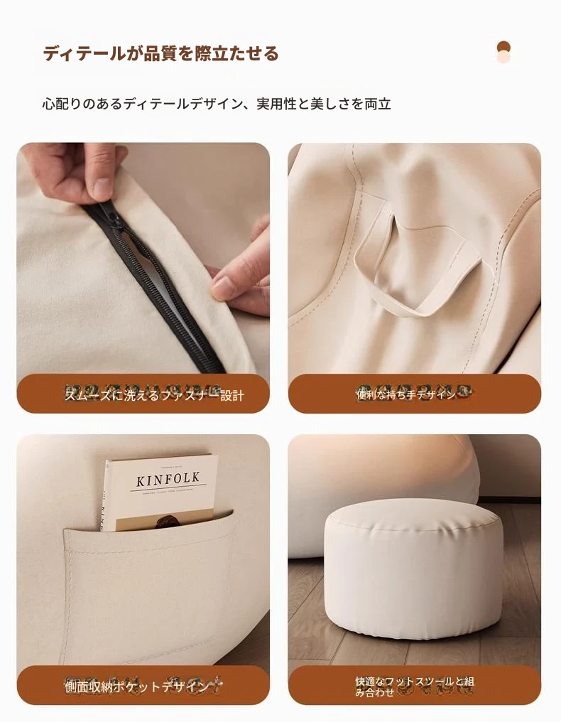 【135*155cm-フラッグシップタイプ】クリームホワイト(クッション+フットレスト)