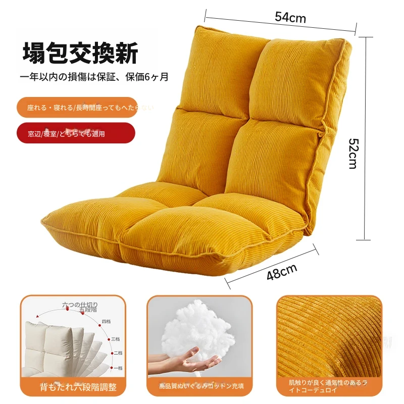 【ラテックスタイプ】ジンジャーイエローコーデュロイ丨|六段調整可能
