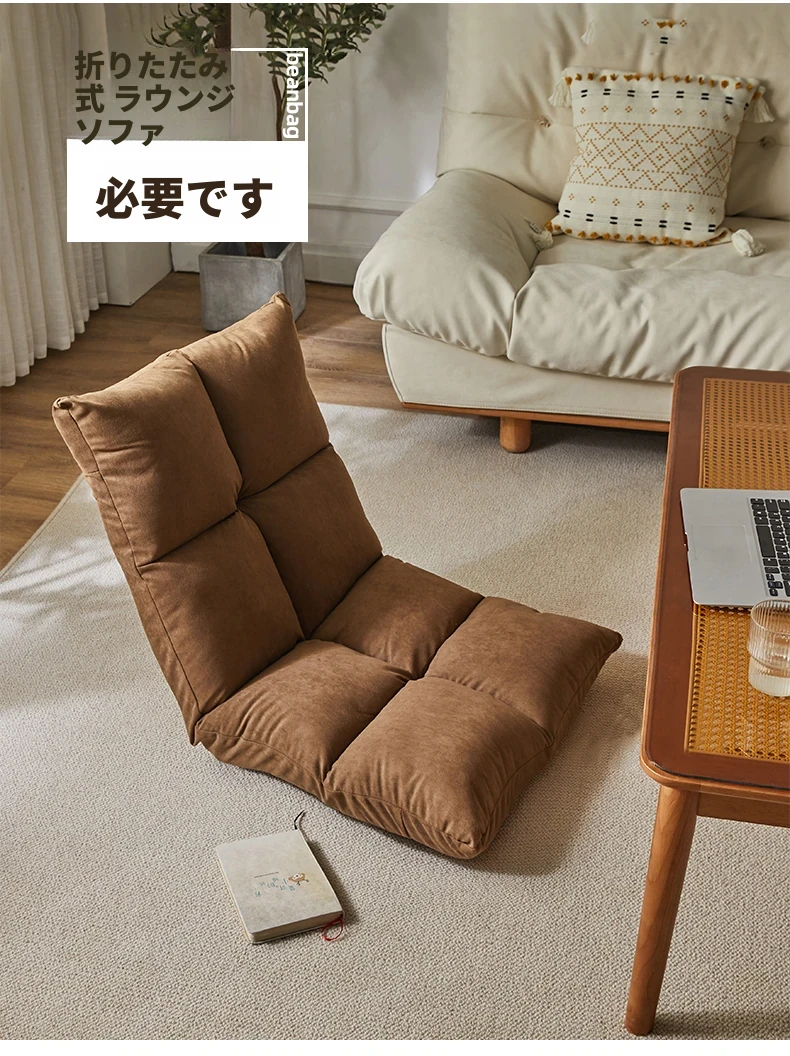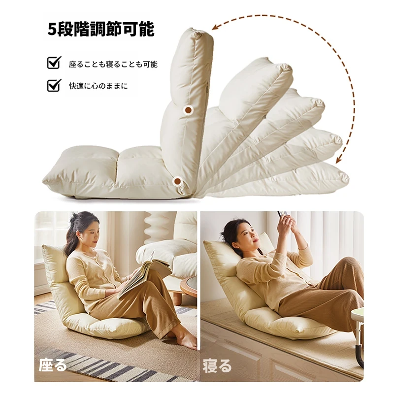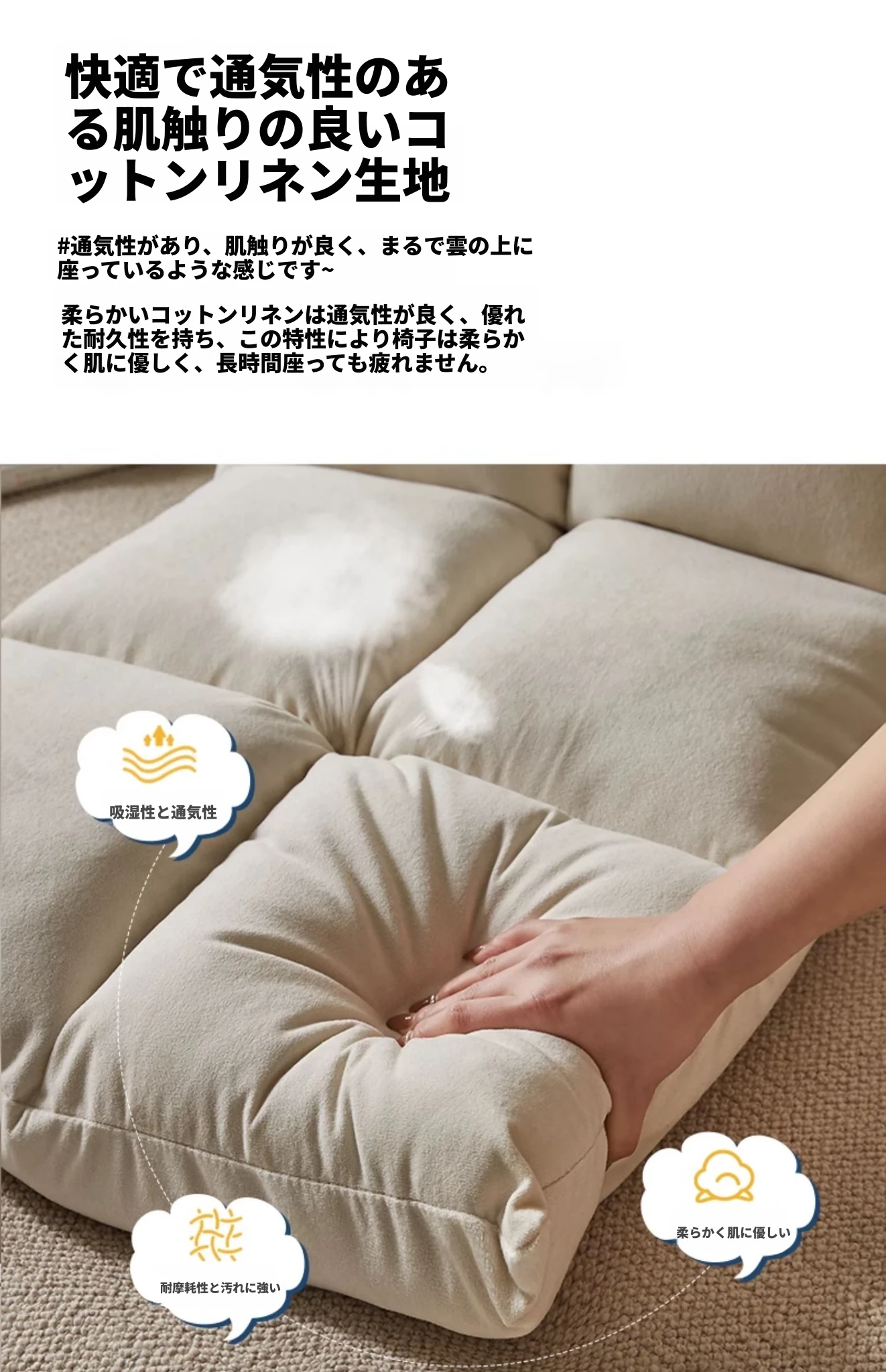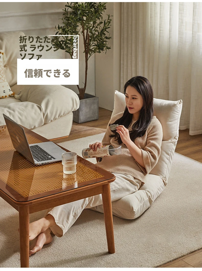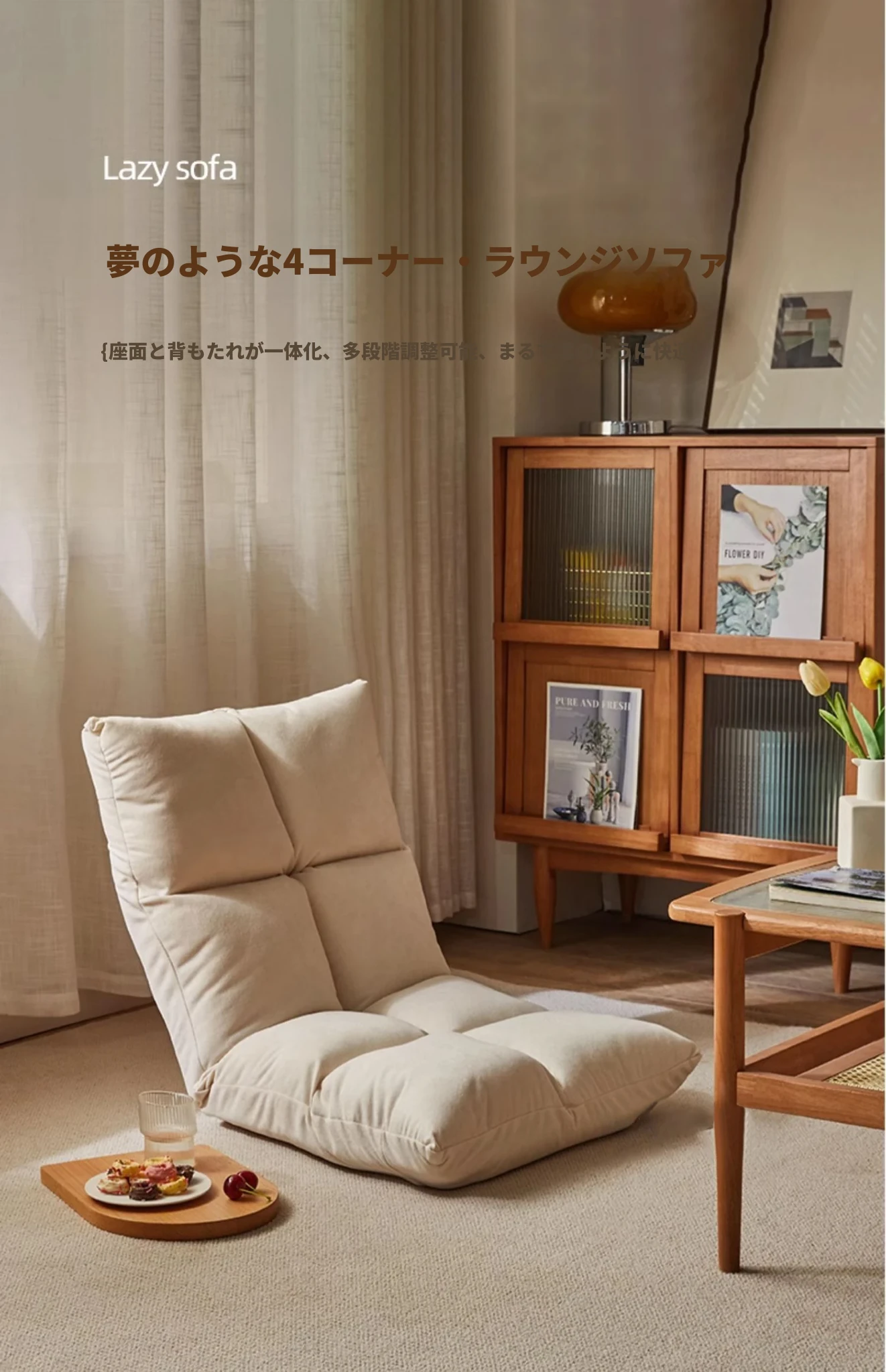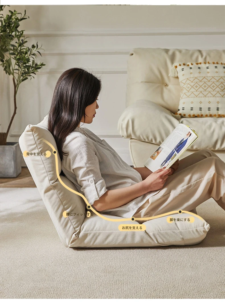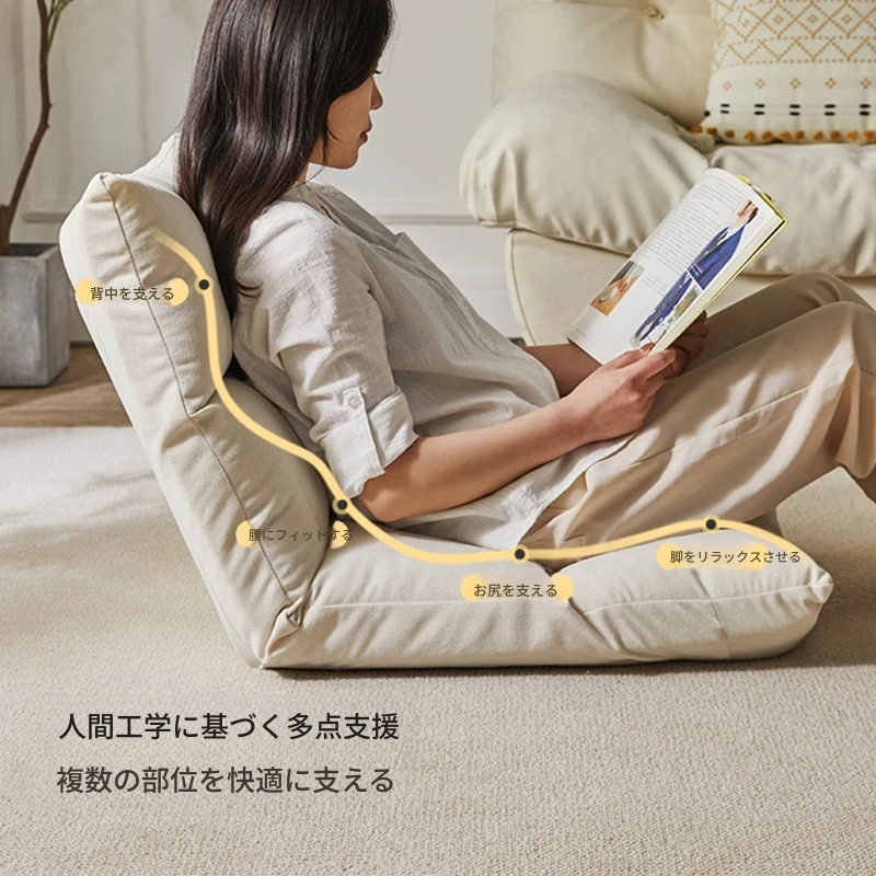 家小幸のリラックスソファー、調整可能なクッション付き!折りたたみ式の一人用カウチ、畳でも使える!寝転んでもお昼寝でも、リビングでくつろぎのひとときを。