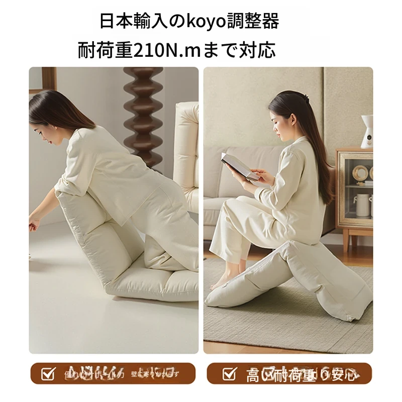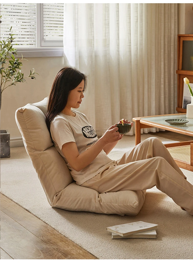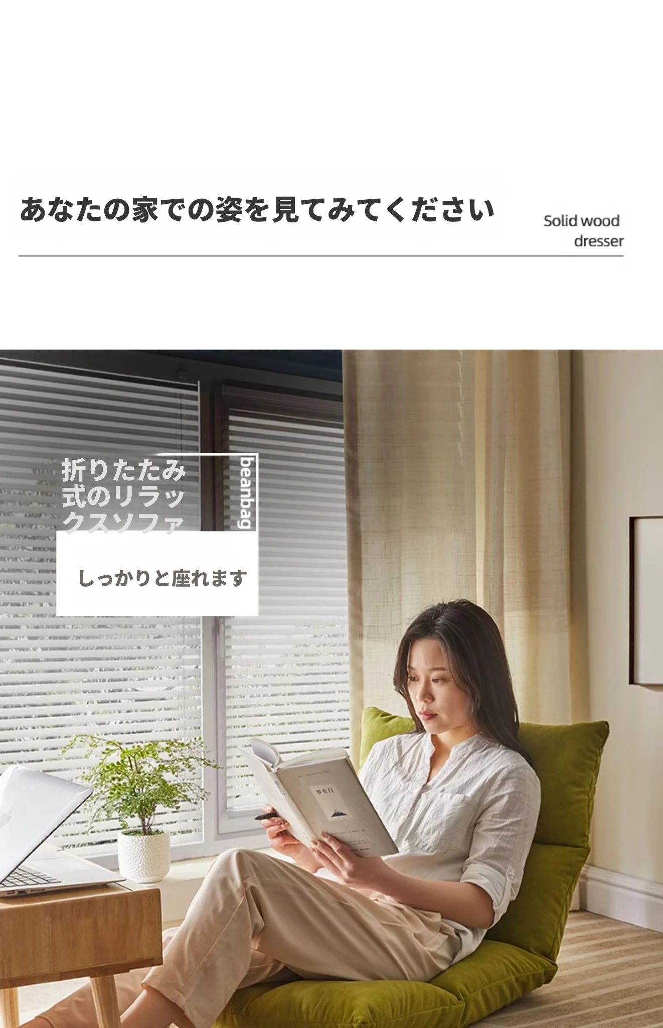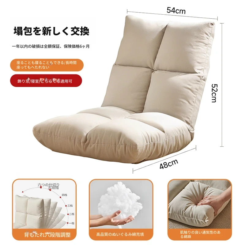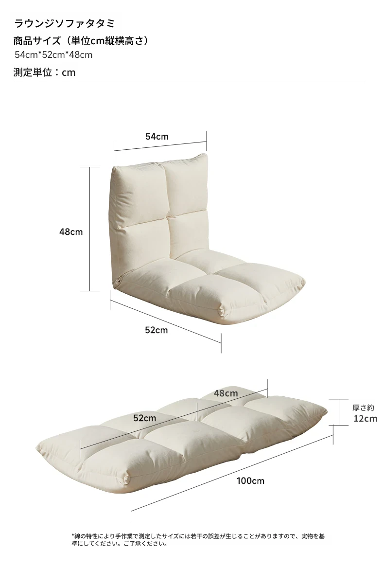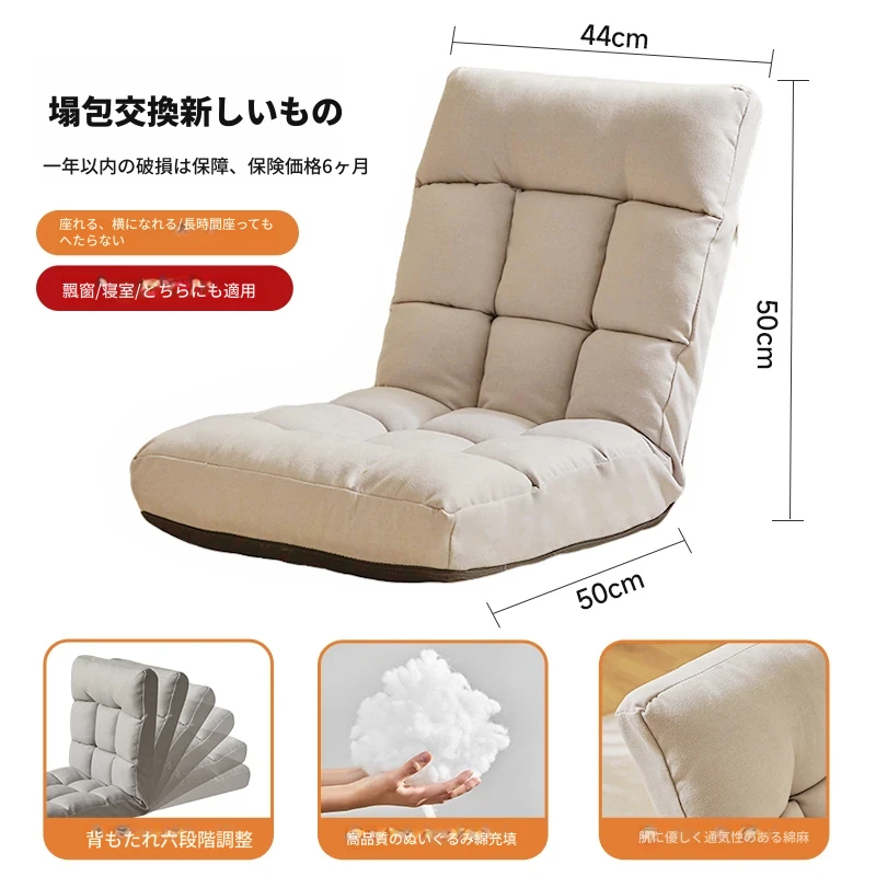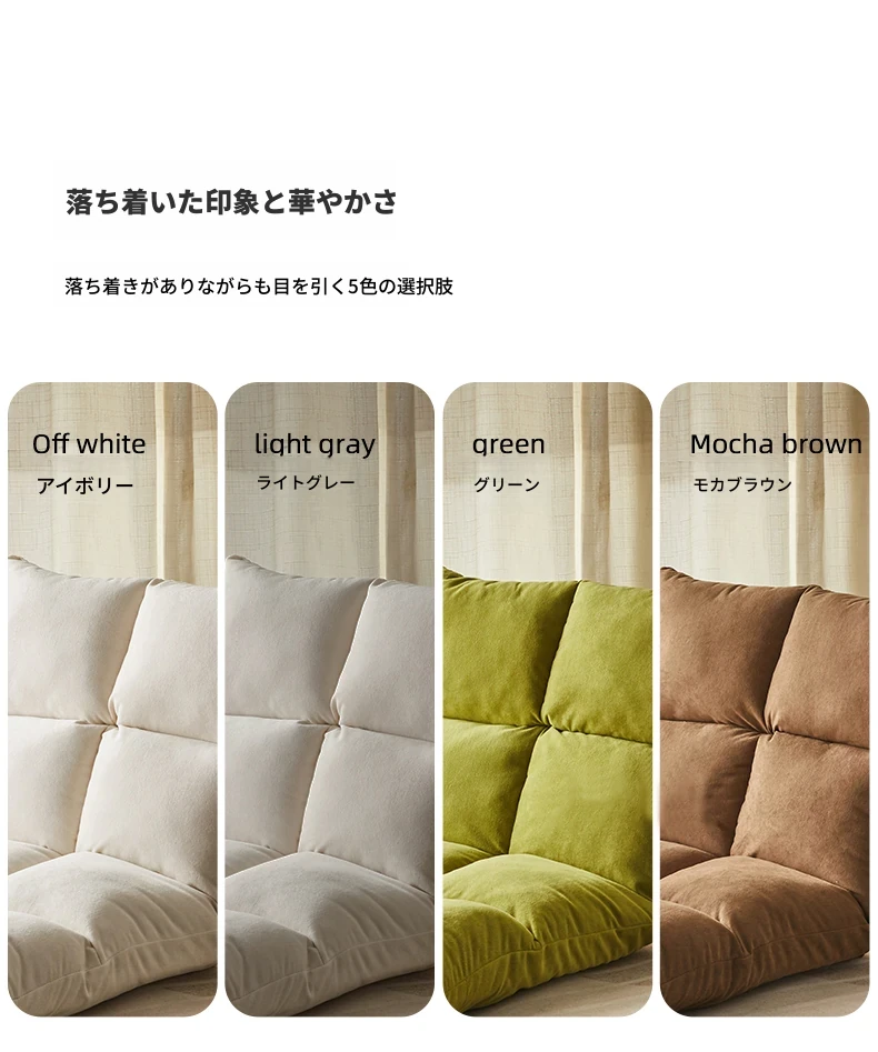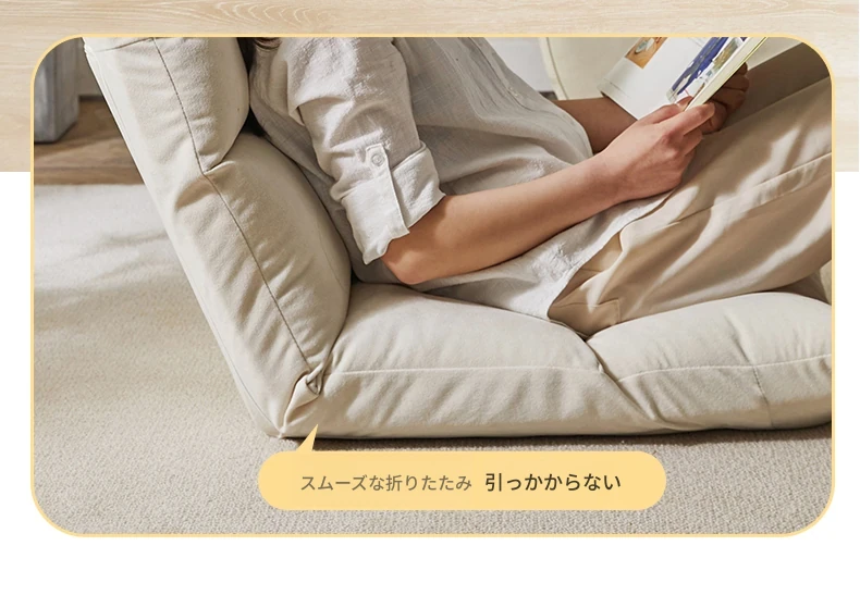 家小幸のリラックスソファー、調整可能なクッション付き!折りたたみ式の一人用カウチ、畳でも使える!寝転んでもお昼寝でも、リビングでくつろぎのひとときを。