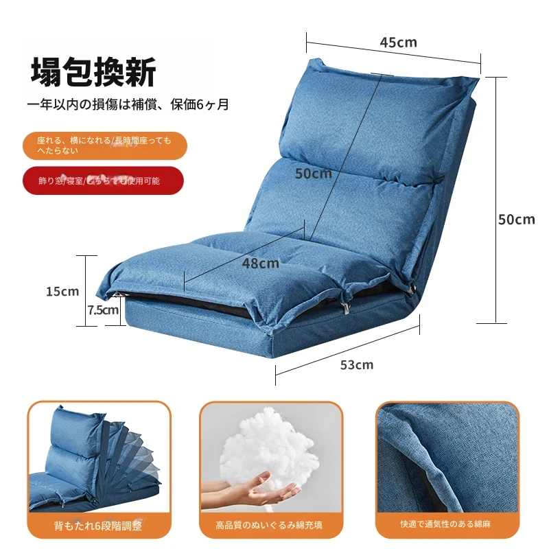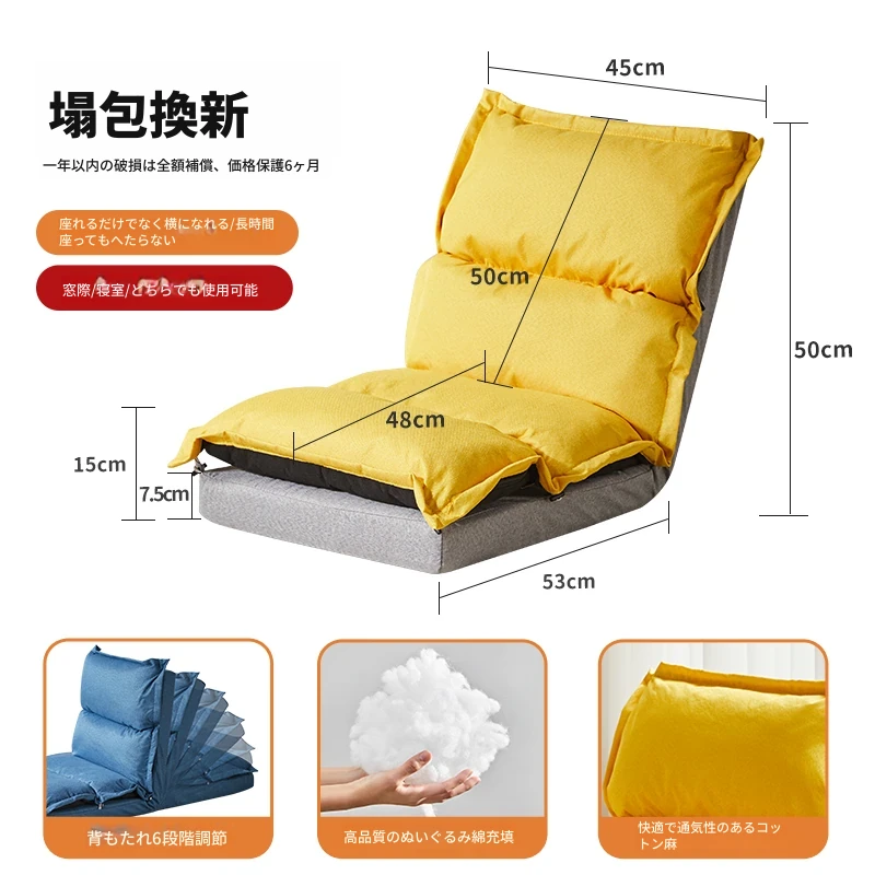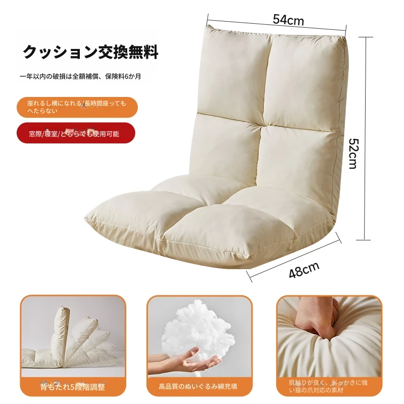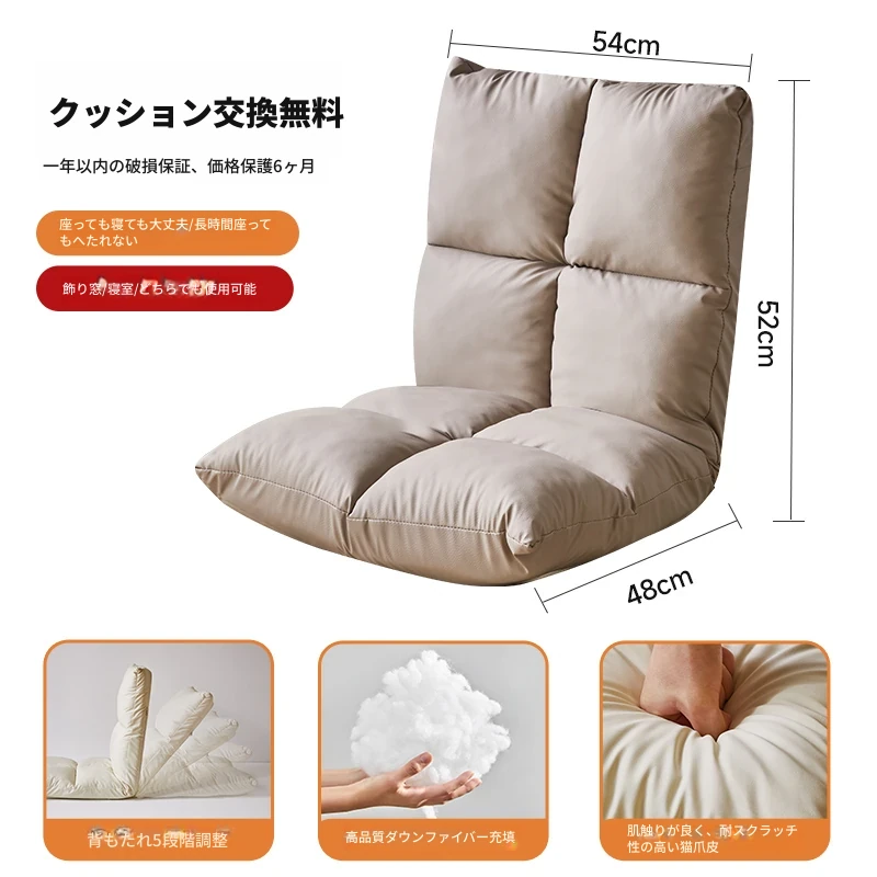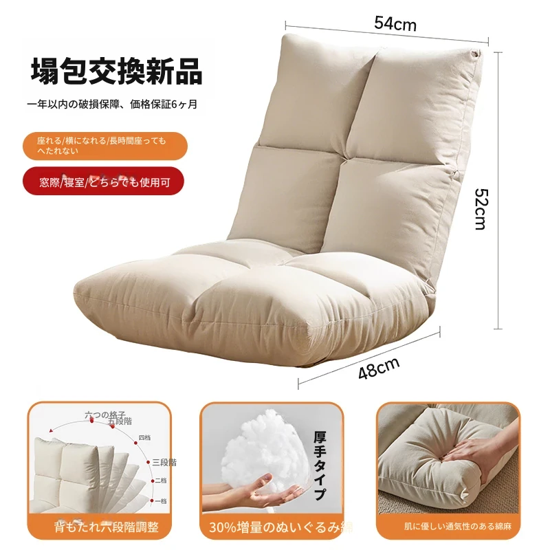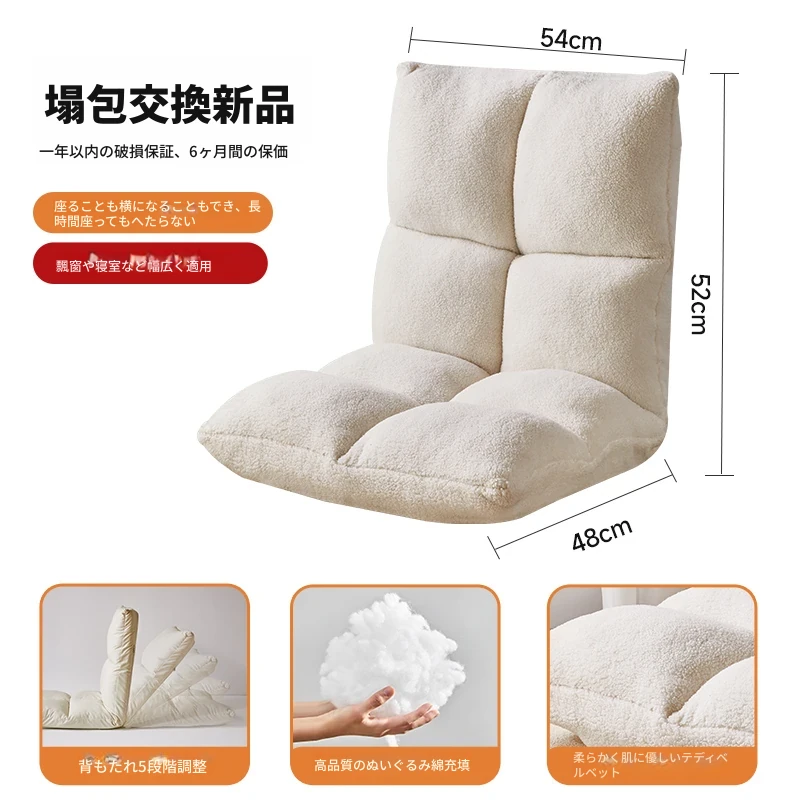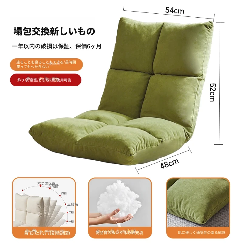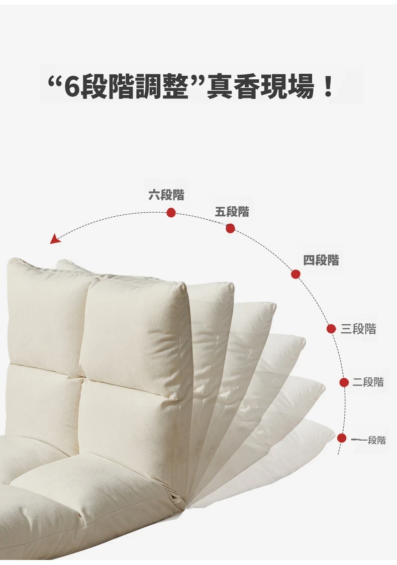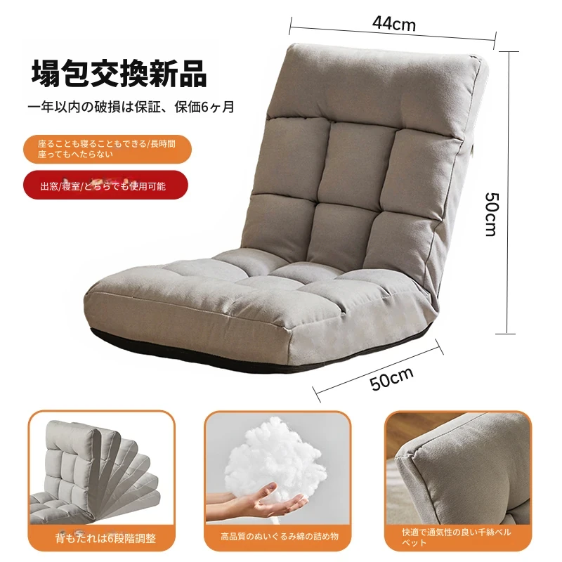 家小幸のリラックスソファー、調整可能なクッション付き!折りたたみ式の一人用カウチ、畳でも使える!寝転んでもお昼寝でも、リビングでくつろぎのひとときを。