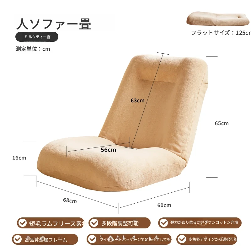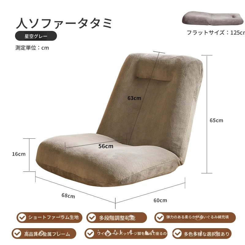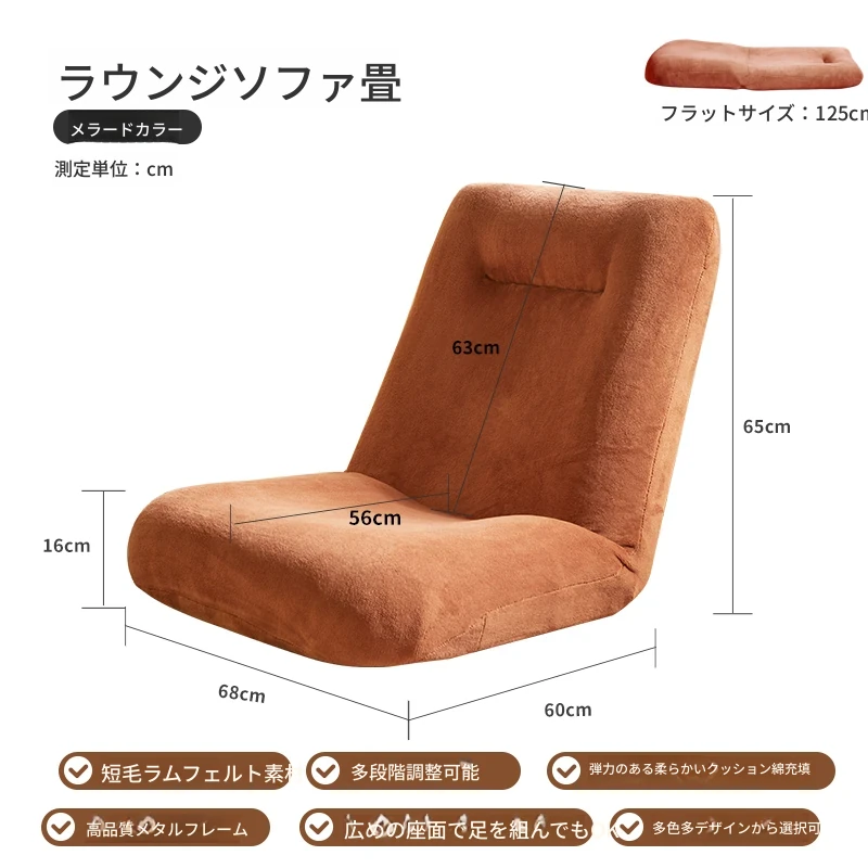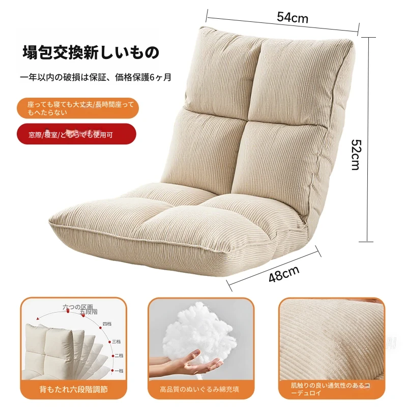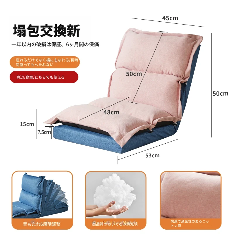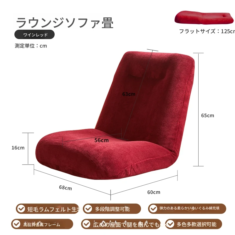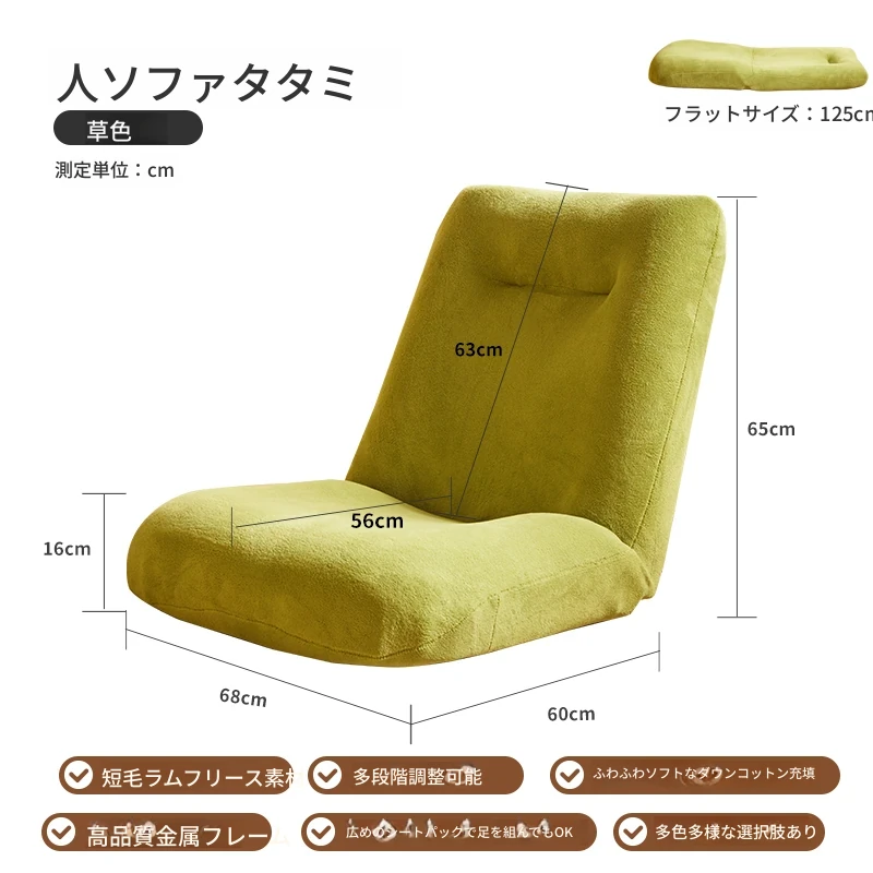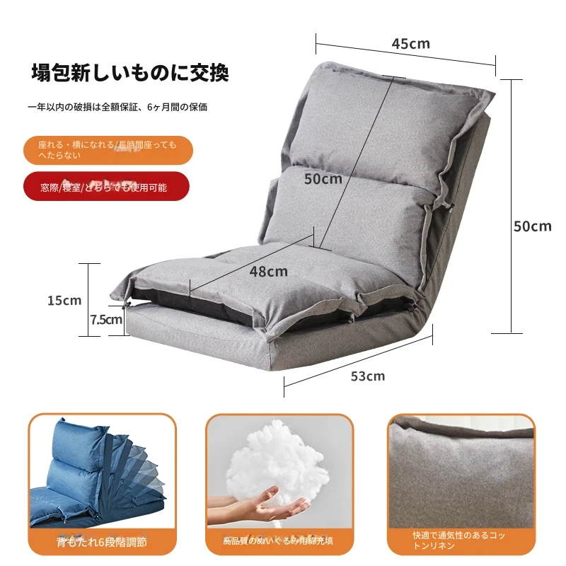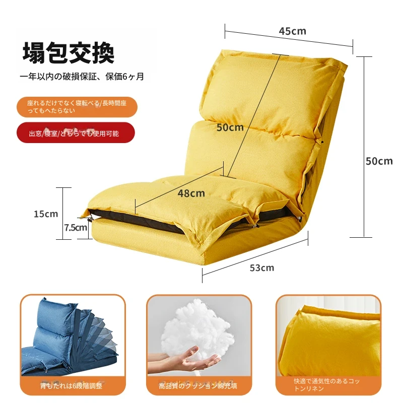 家小幸のリラックスソファー、調整可能なクッション付き!折りたたみ式の一人用カウチ、畳でも使える!寝転んでもお昼寝でも、リビングでくつろぎのひとときを。