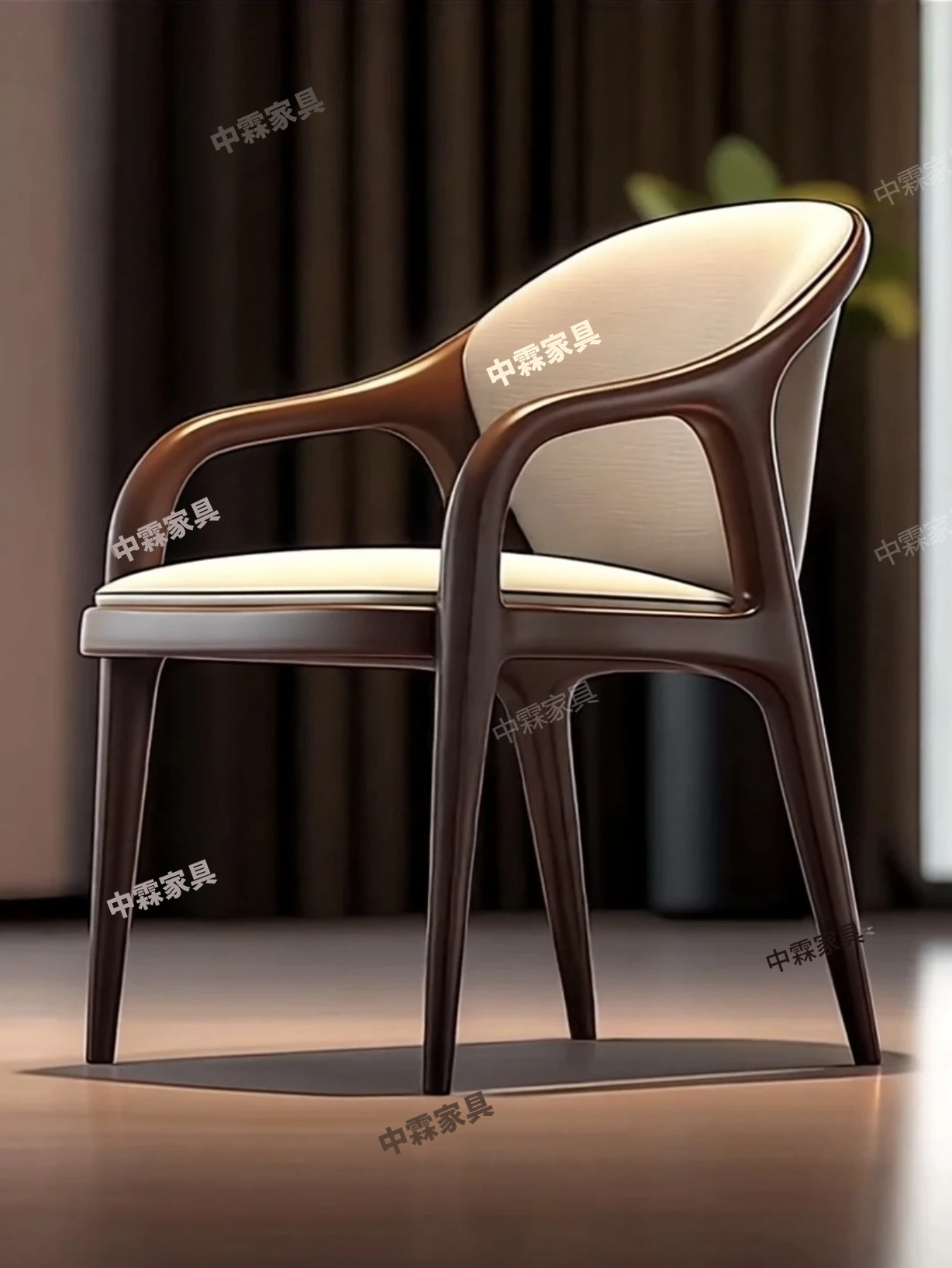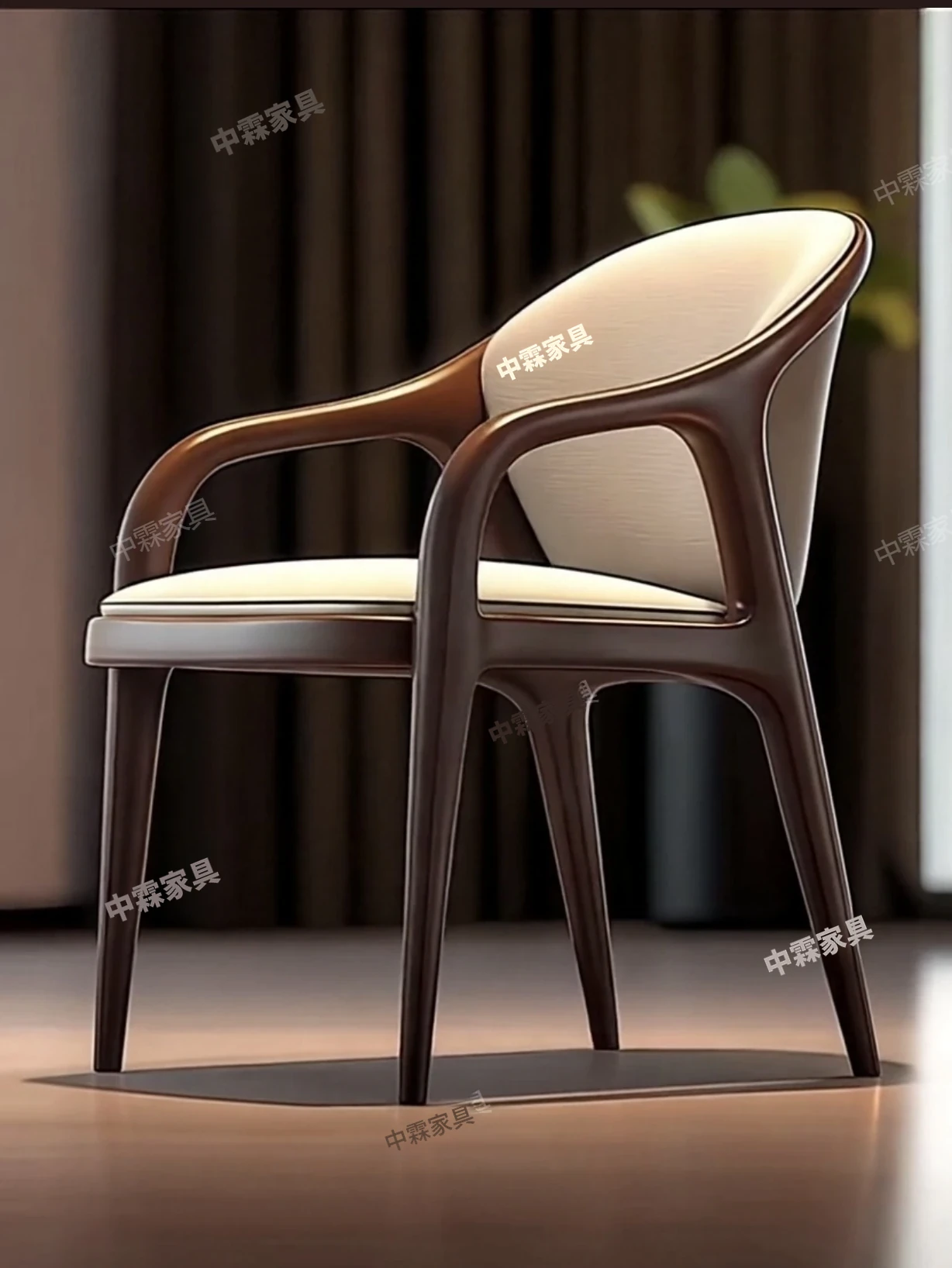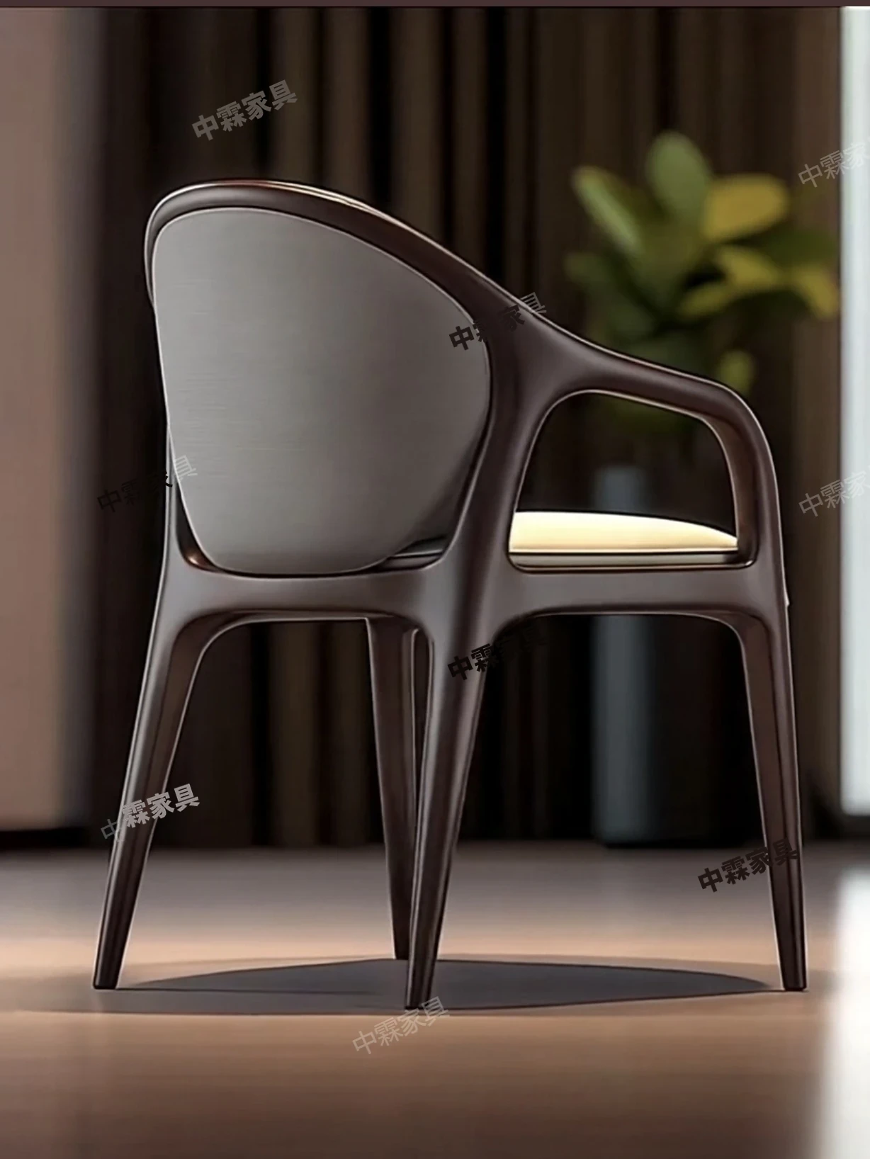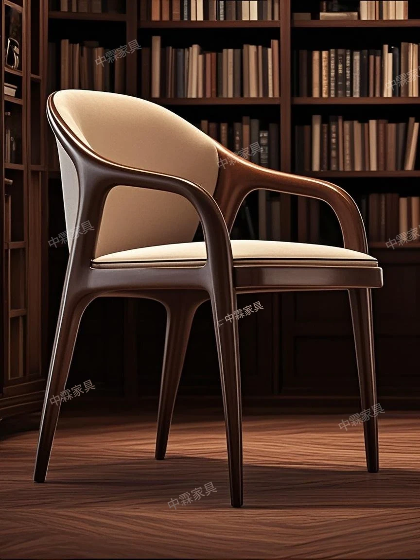 デザイナーズ北米ブラックウォルナット無垢材使用のおしゃれな本革カジュアルチェア。モダンなデザインの背もたれ椅子で、ダイニングや書斎、ティータイムにぴったり。快適さとスタイルを両立した一品です。