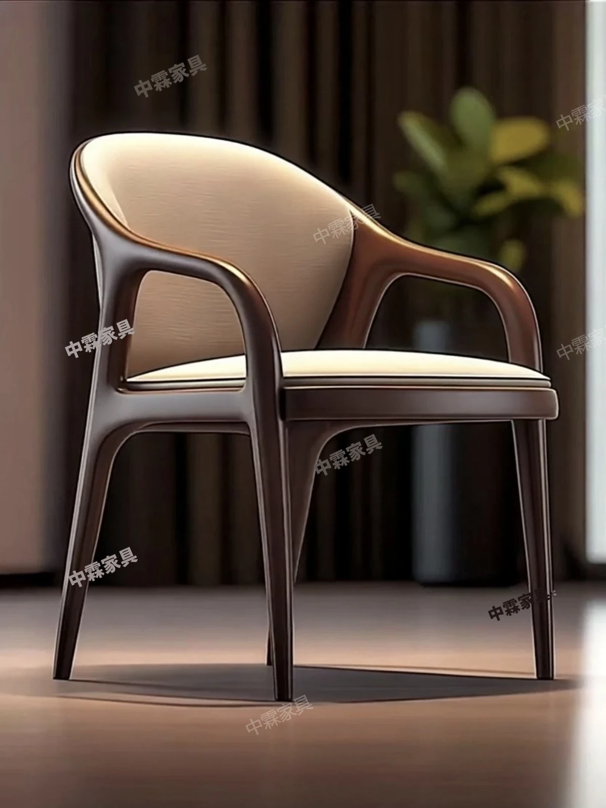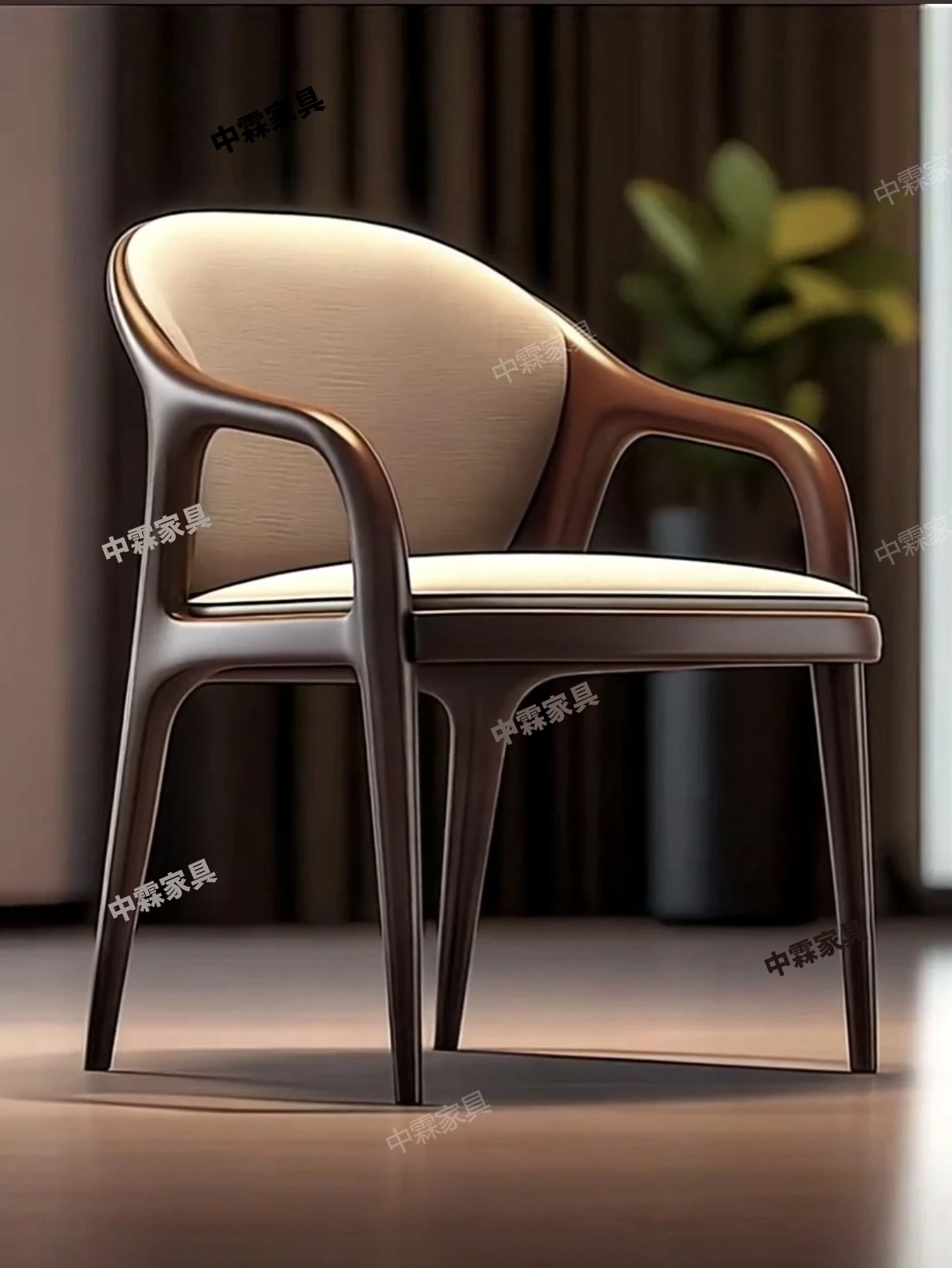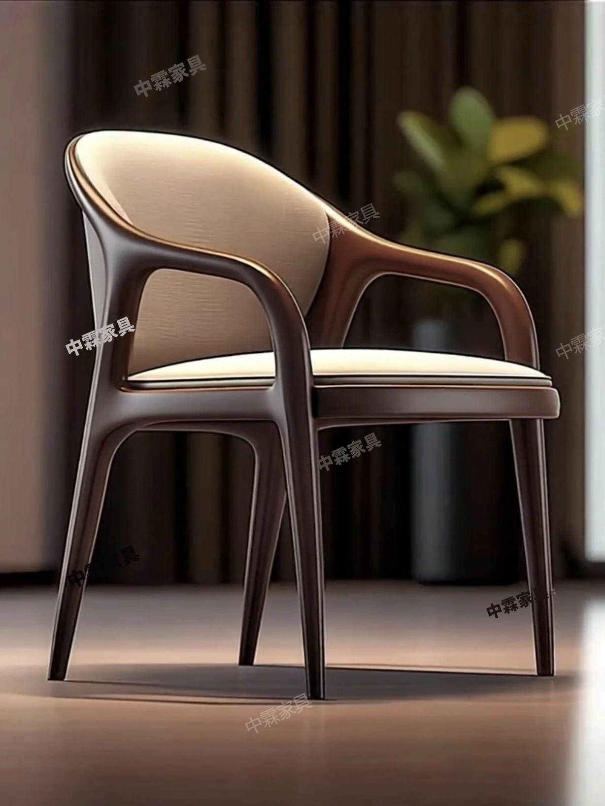 デザイナーズ北米ブラックウォルナット無垢材使用のおしゃれな本革カジュアルチェア。モダンなデザインの背もたれ椅子で、ダイニングや書斎、ティータイムにぴったり。快適さとスタイルを両立した一品です。