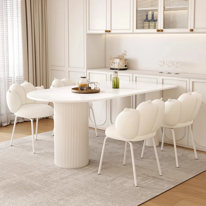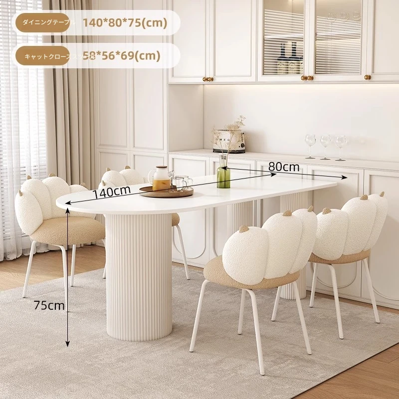 純白のストーンテーブル140cm+アイボリーキャットクロー椅子*4【回転不可】 アイボリーテーブル脚 純白のストーンテーブル140cm+アイボリーキャットクロー椅子*4【回転不可】 アイボリーテーブル脚