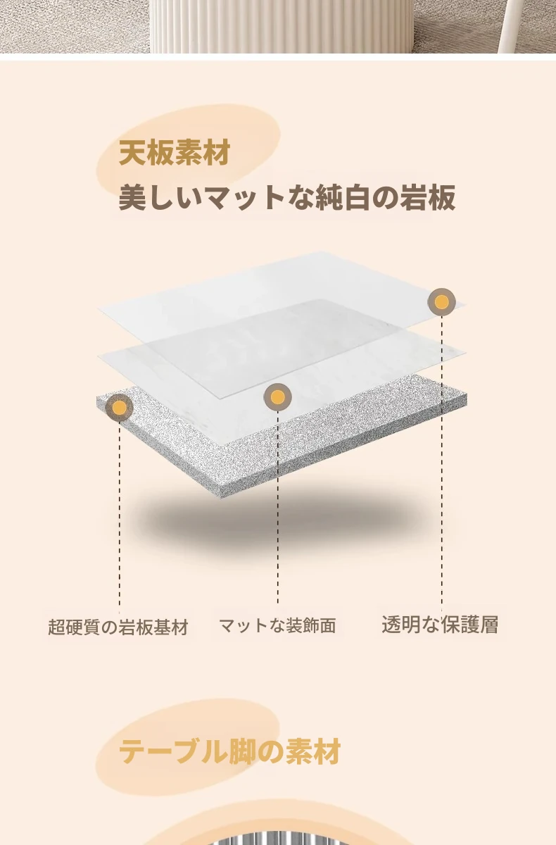 純白のストーンテーブル120cm アイボリーテーブル脚 純白のストーンテーブル120cm アイボリーテーブル脚